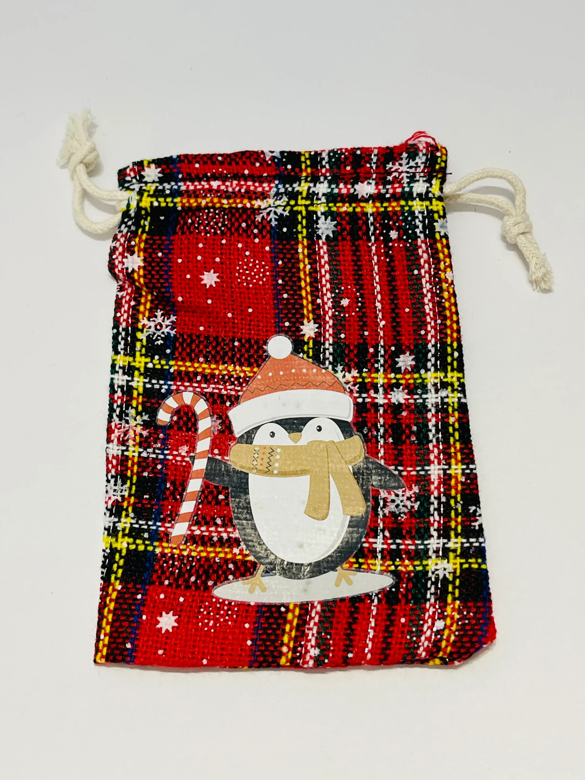 5 sacs cadeaux en toile de jute Pingouin Noël