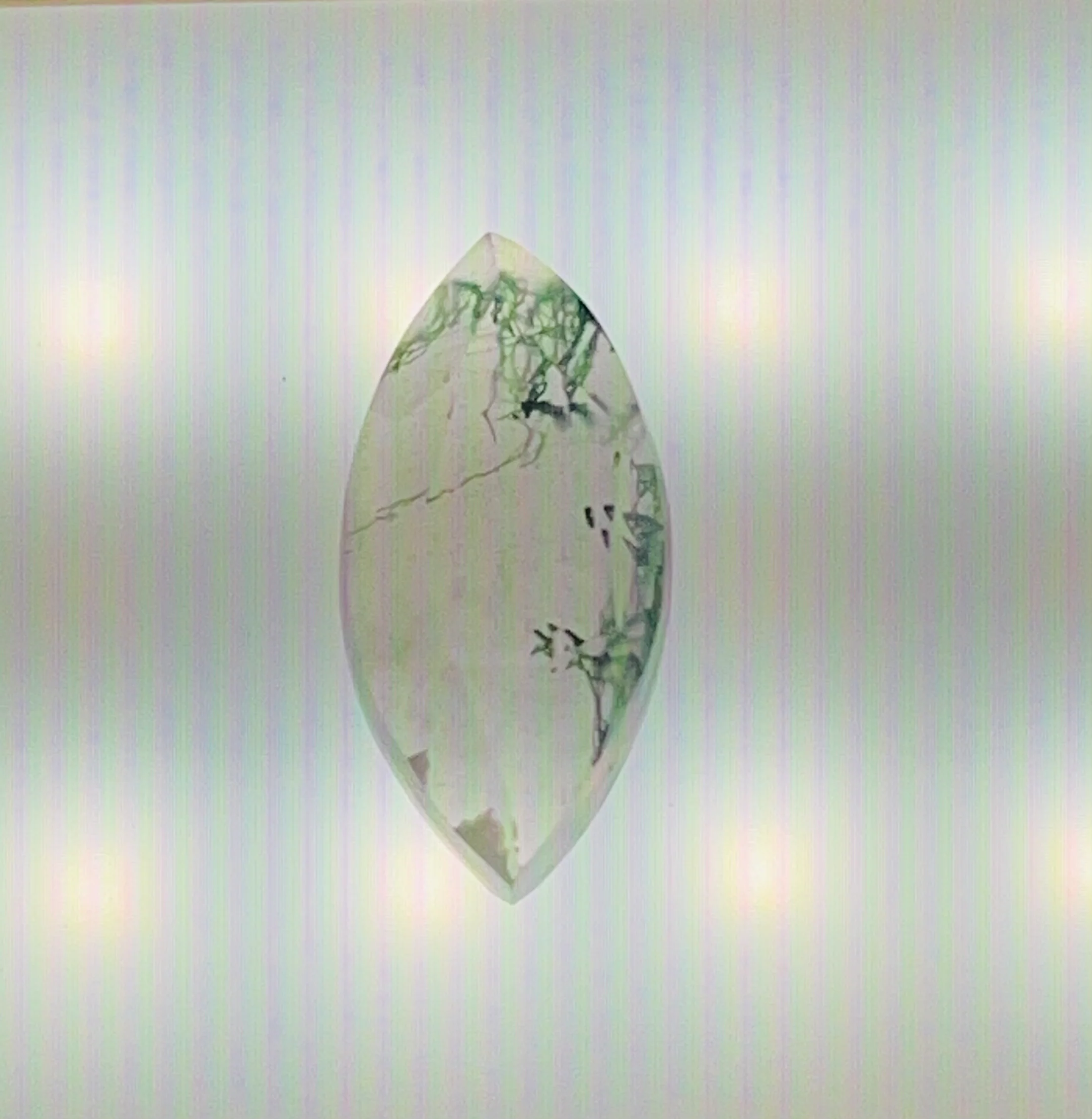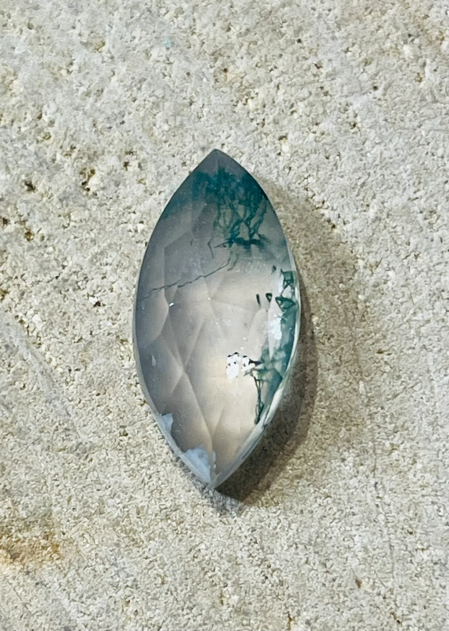 Il s’agit d’une Agate mousse facettée.1,9 x 1 cm.