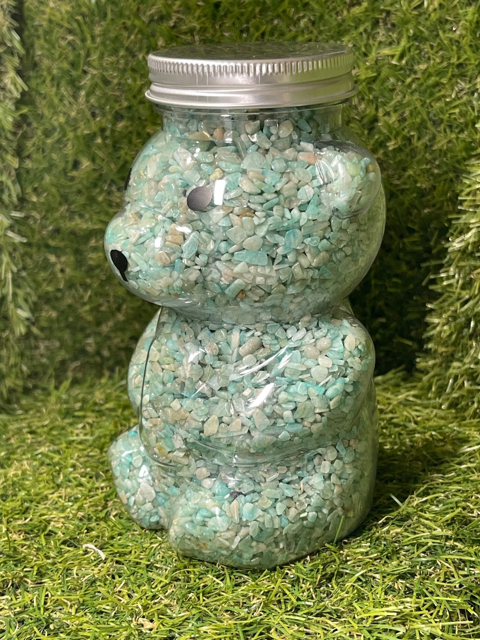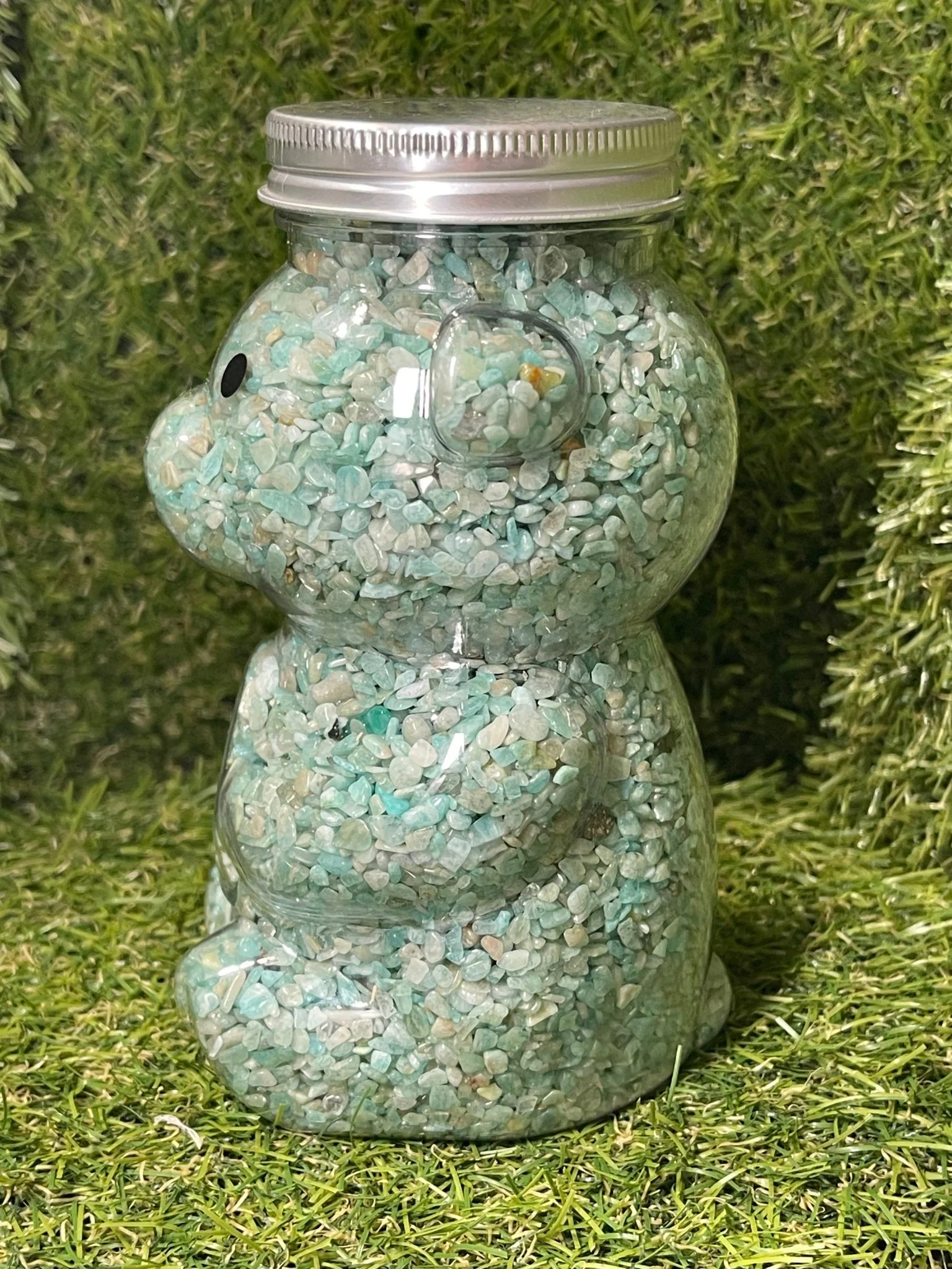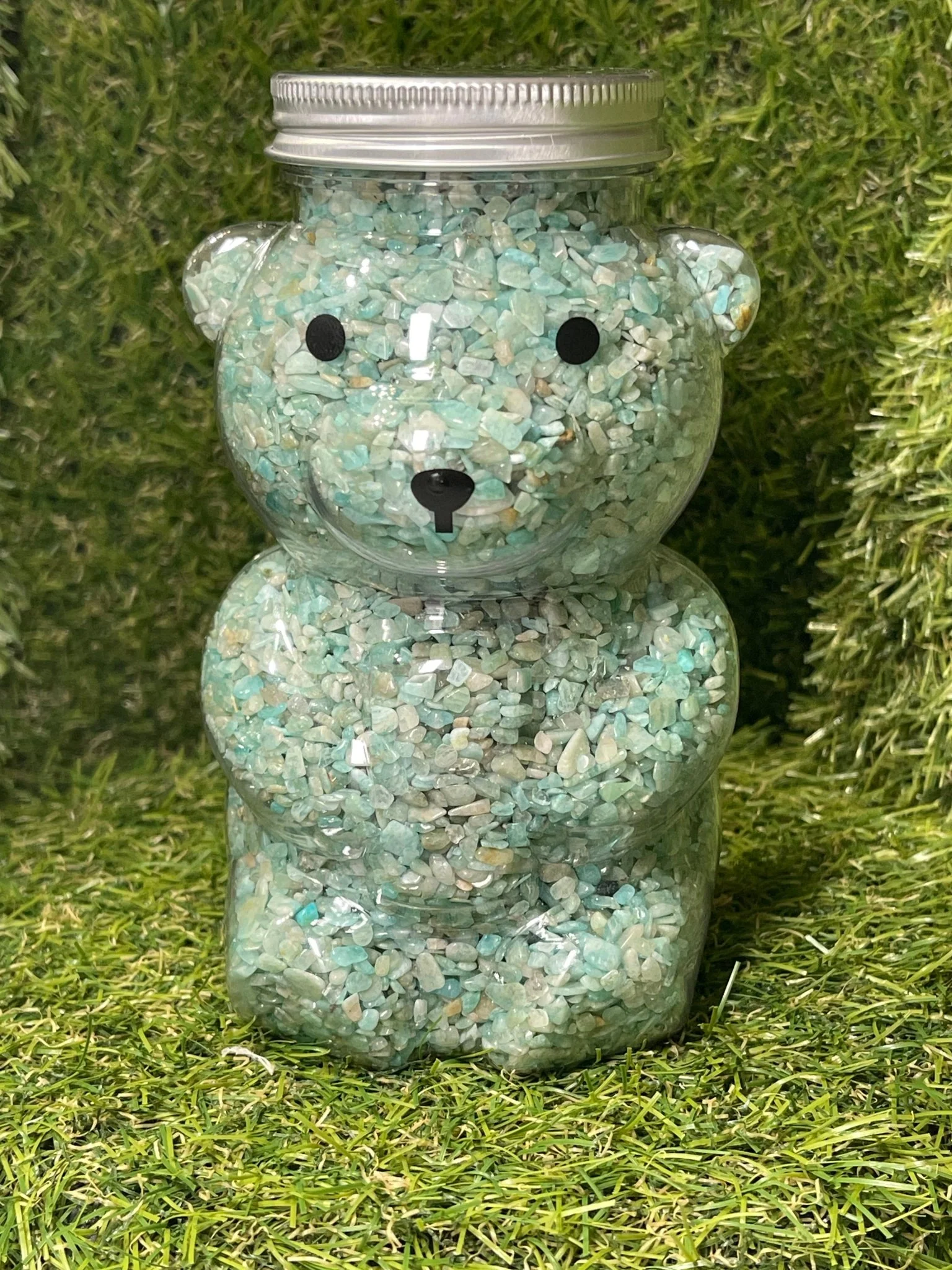 Ama l’Ourson rempli de pépites en pierre naturelle Amazonite