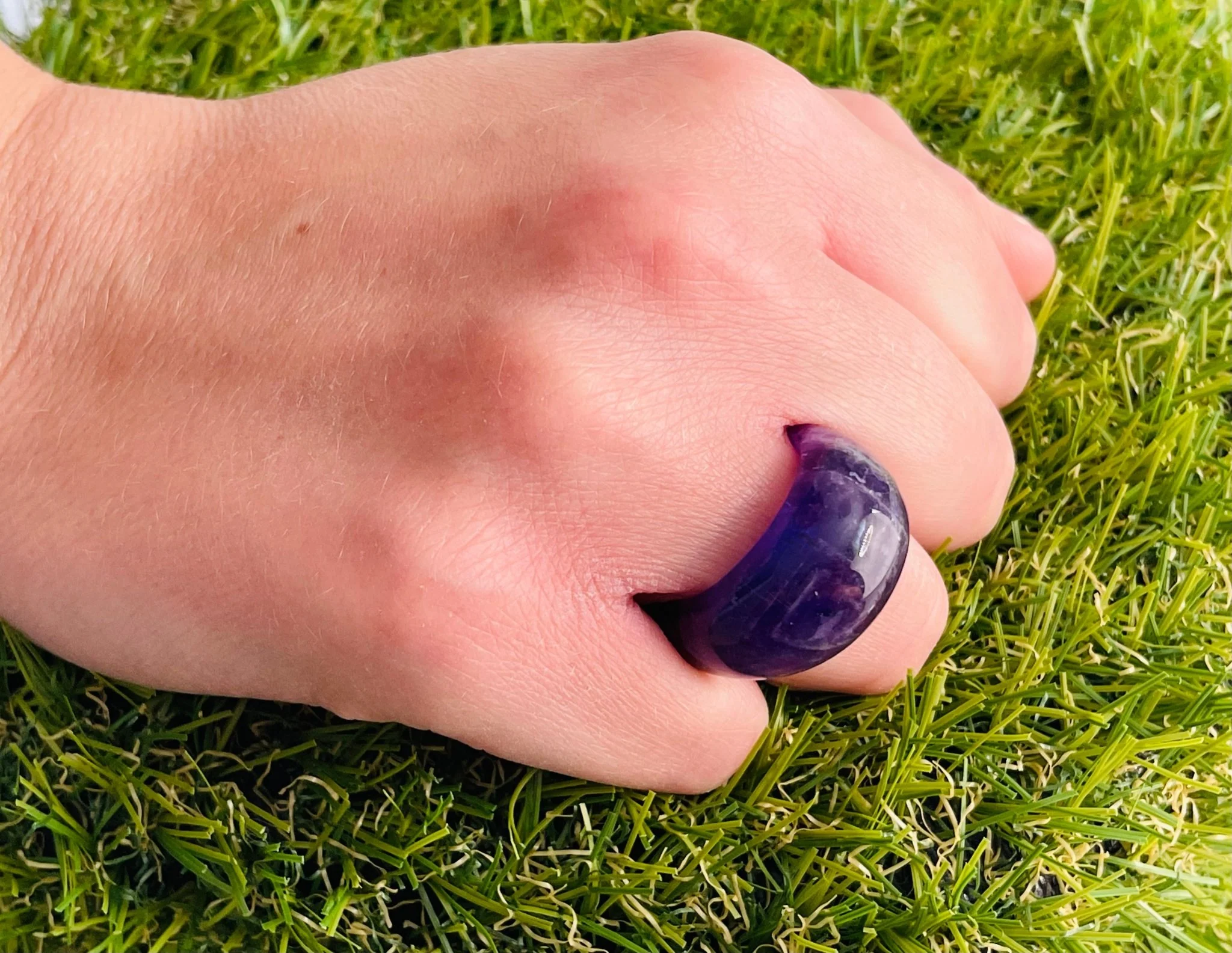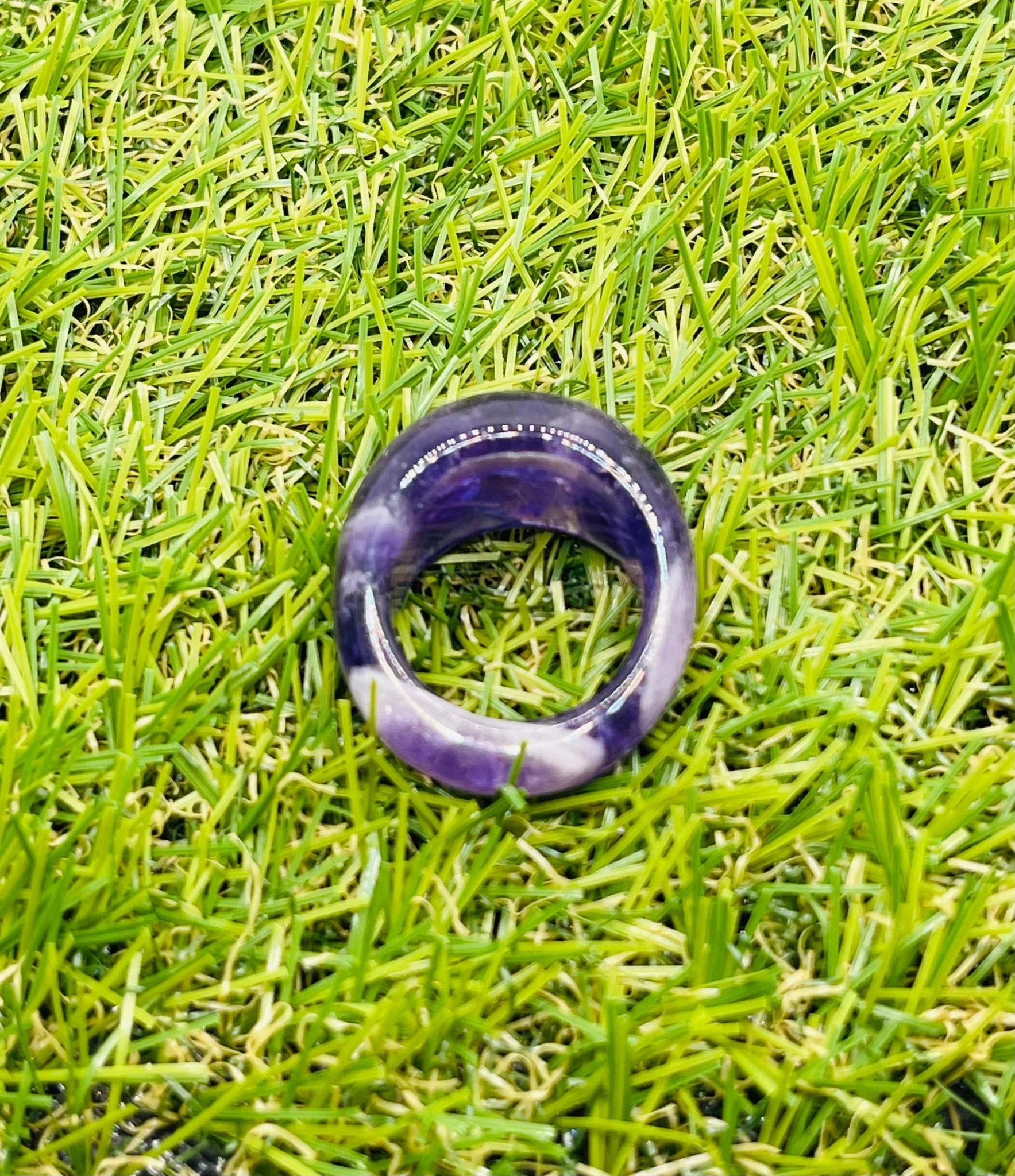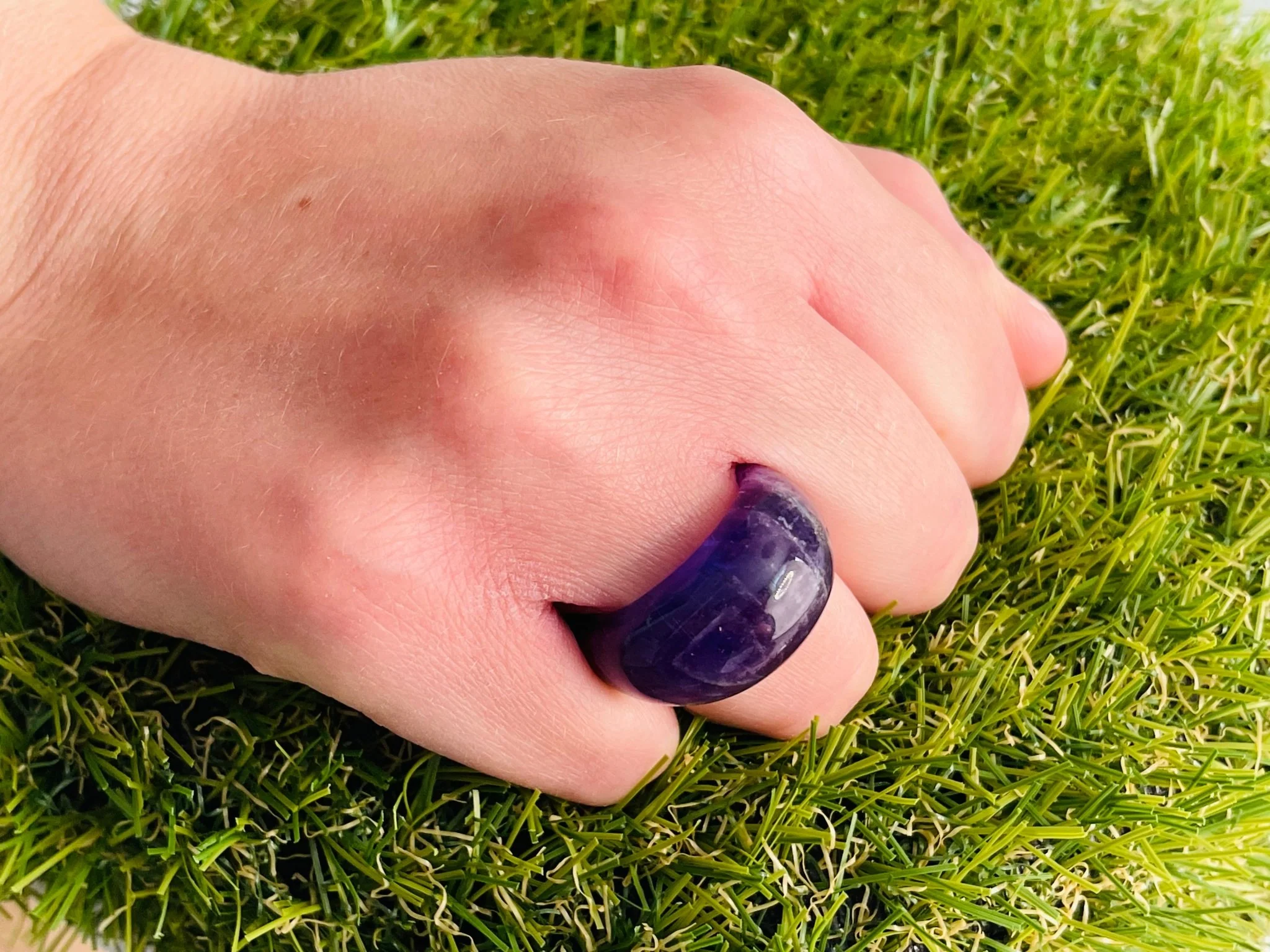 Il s’agit d’une bague en Améthyste. Chaque bague est unique. Vertus : c’est la pierre de la sagesse et de l’humilité. Elle favorise l’élévation spirituelle, la concentration et la méditation. C’est la pierre qui stimule l’imagination, la créativité, la clarté de l’esprit, la sérénité. L’améthyste pierre naturelle apaiserait les angoisses et les colères.