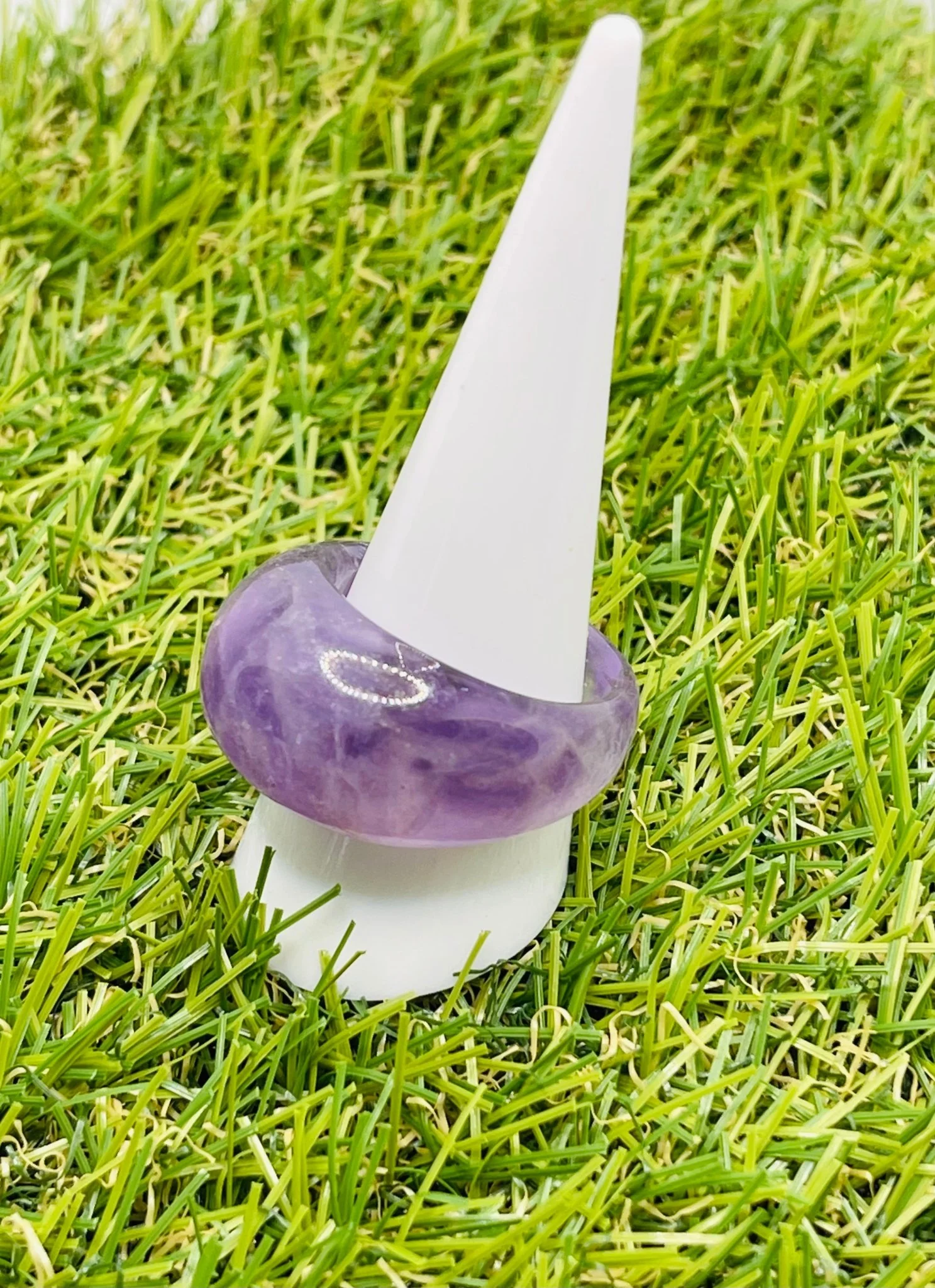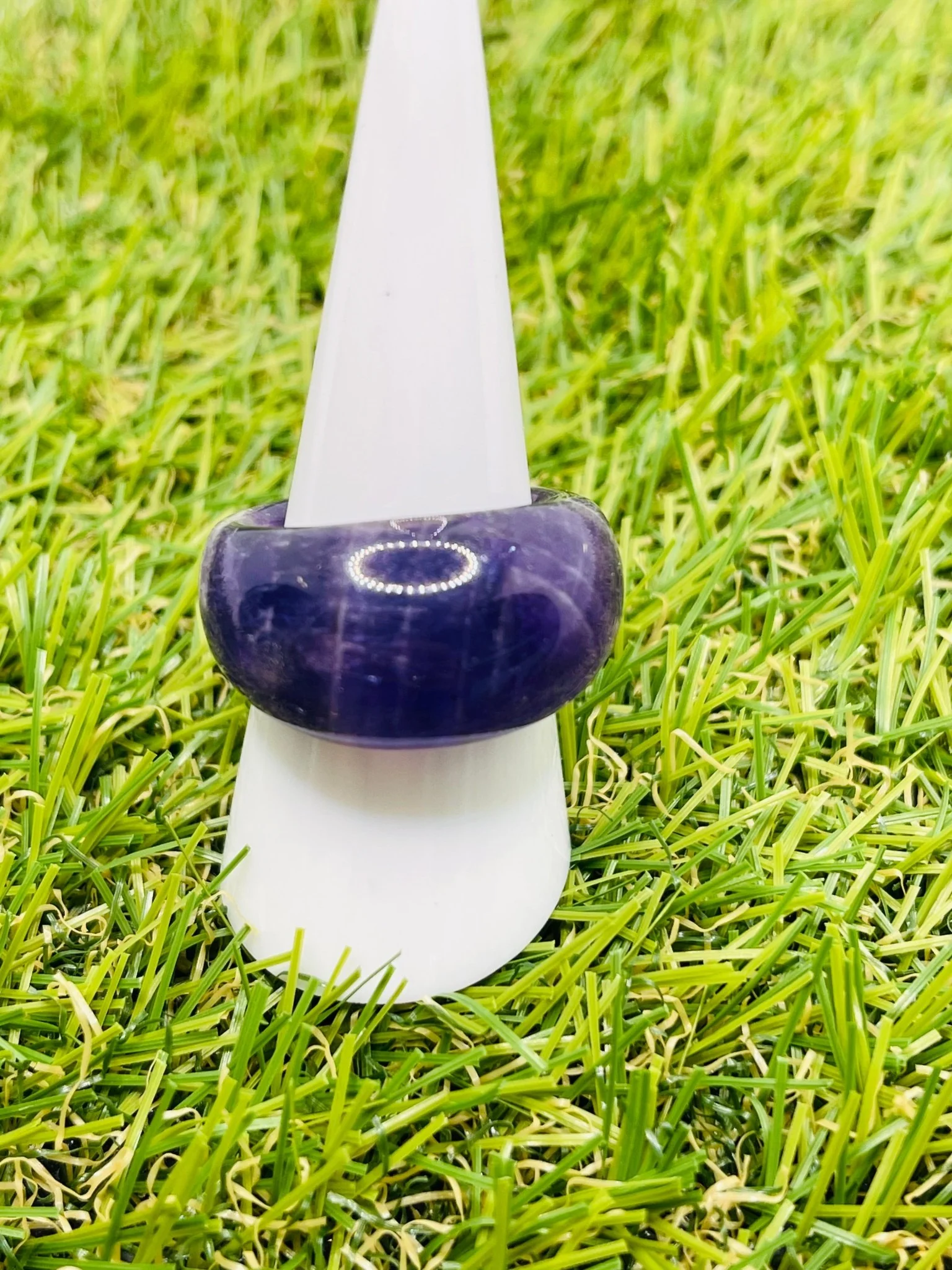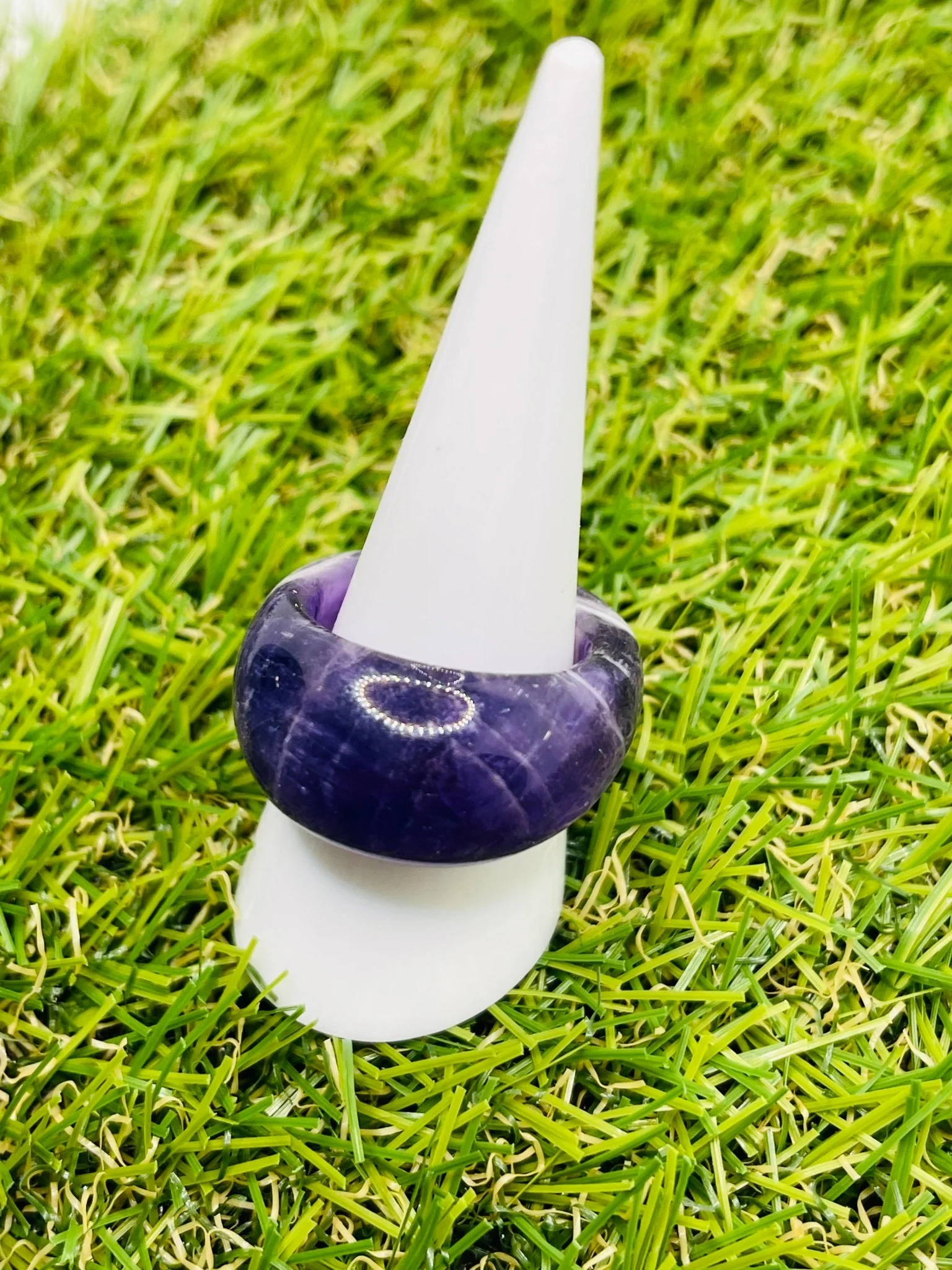 Il s’agit d’une bague en Améthyste. Chaque bague est unique. Vertus : c’est la pierre de la sagesse et de l’humilité. Elle favorise l’élévation spirituelle, la concentration et la méditation. C’est la pierre qui stimule l’imagination, la créativité, la clarté de l’esprit, la sérénité. L’améthyste pierre naturelle apaiserait les angoisses et les colères.