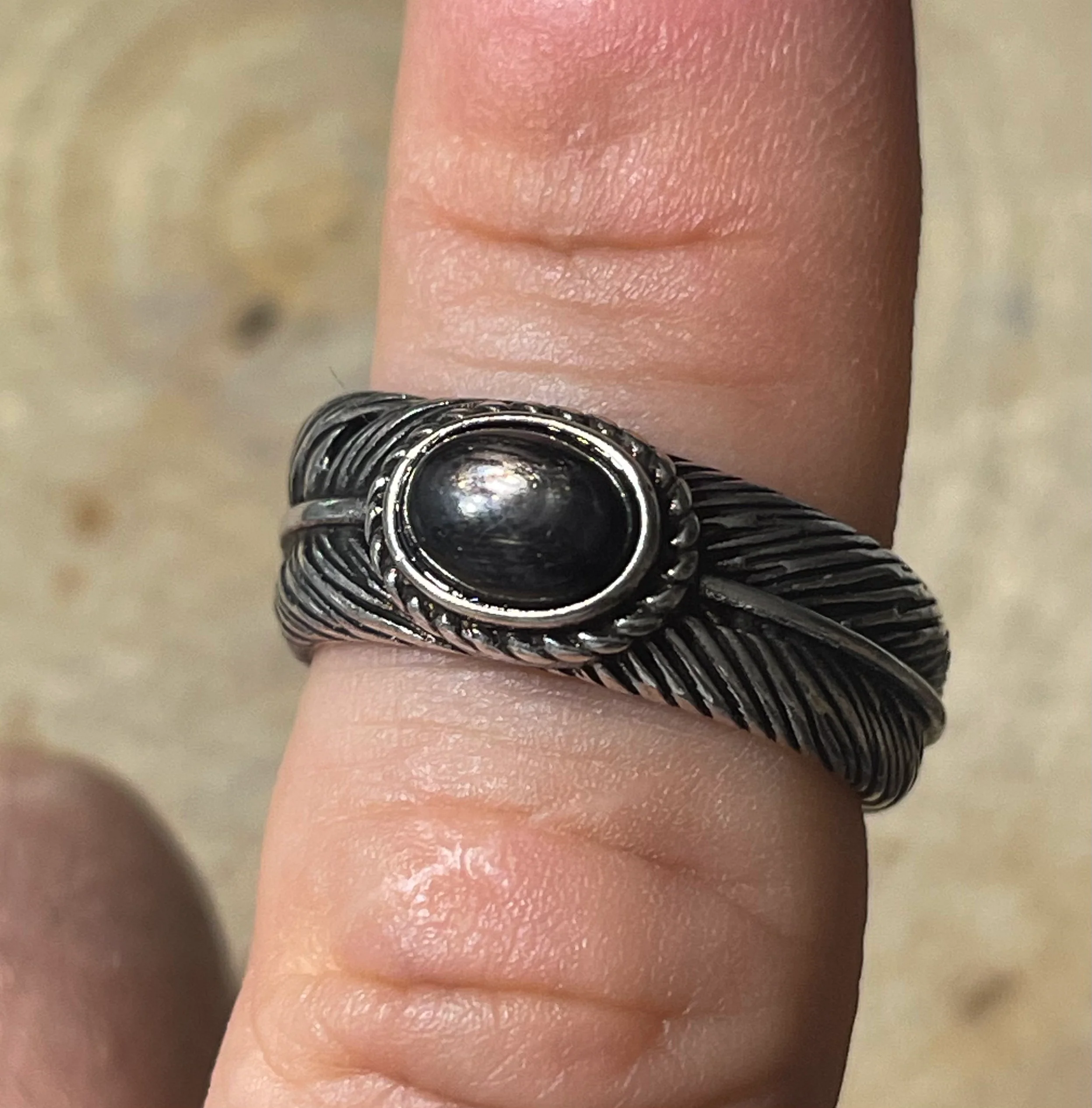 Bague en Hyperstene en forme de plume, Taille réglable