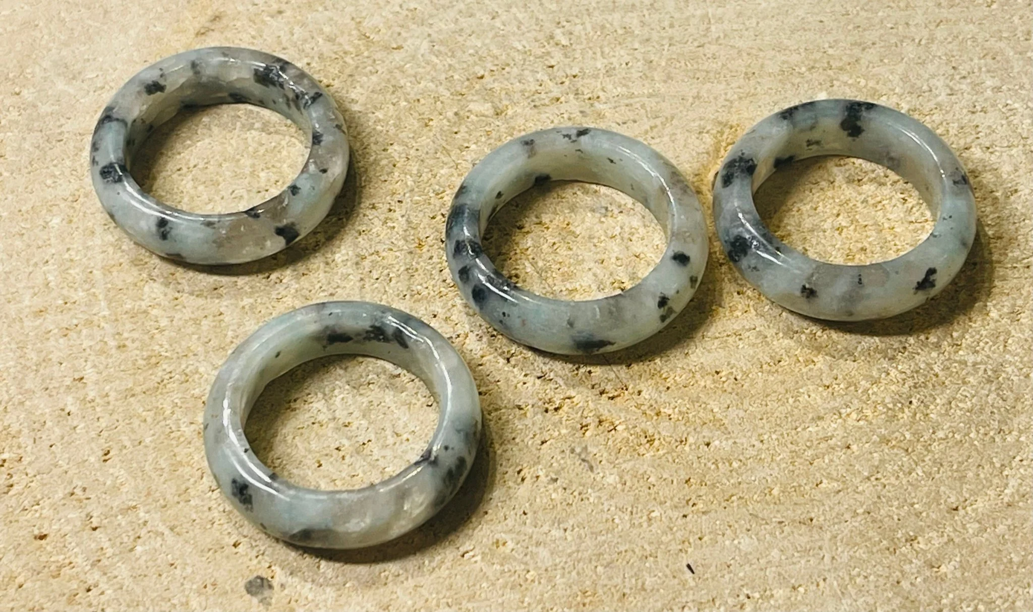 Il s’agit de bague entièrement faite en Jaspe Kiwi ou sésame.