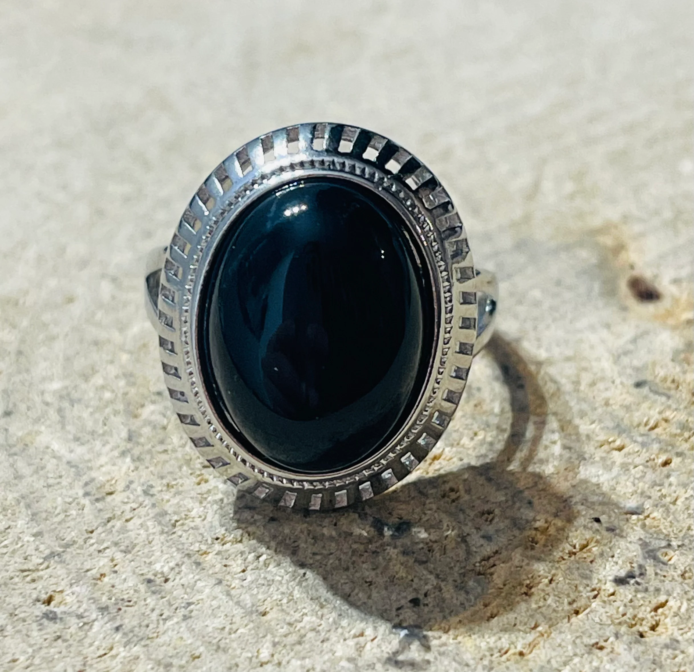 Il s’agit d’une bague sertie d’un cabochon Onyx.
