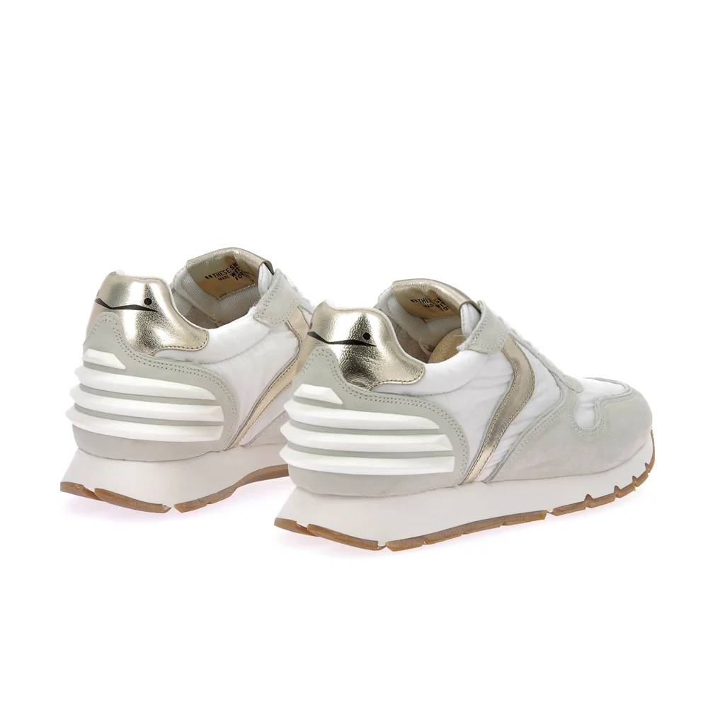 Tige : Suede et nylon Semelle extérieure : Running en gomme Semelle intérieure : Cuir Doublure : Cuir Couleur : Cream-white-gold Conseil chaussant : Prenez votre taille Particularité : Artisanale Pays de Fabrication : Italie Ref interne : M01 Marque : Voile blanche Référence : 2e01