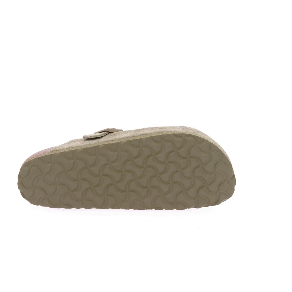 Tige : Croute velour Semelle extérieure : Liege et cuir recouvert patin gomme Semelle intérieure : Croute de cuir Doublure : Cuir Couleur : Faded kaki Conseil chaussant : Prenez votre taille Particularité : Artisanale Pays de Fabrication : Allemagne Ref interne : M11 Marque : Birkenstock Référence : 1025844w