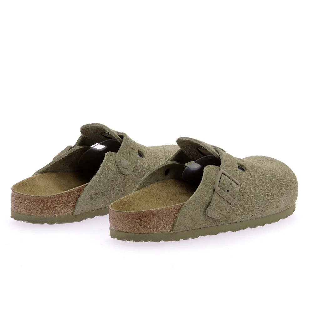Tige : Croute velour Semelle extérieure : Liege et cuir recouvert patin gomme Semelle intérieure : Croute de cuir Doublure : Cuir Couleur : Faded kaki Conseil chaussant : Prenez votre taille Particularité : Artisanale Pays de Fabrication : Allemagne Ref interne : M12 Marque : Birkenstock Référence : 1025844m