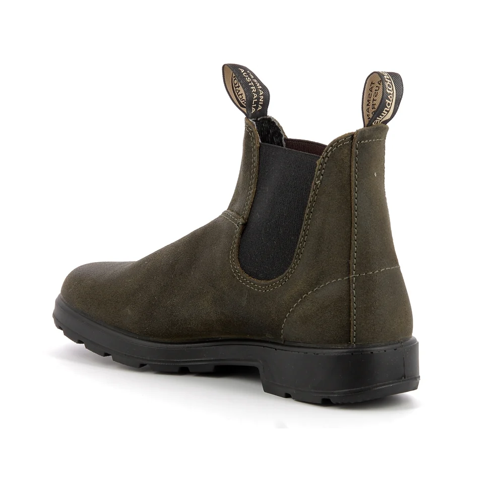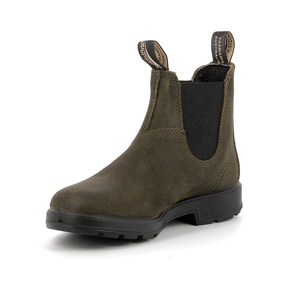 Tige : Daim huilé Semelle extérieure : Gomme anti-dérapant Semelle intérieure : Coton amovible Doublure : Cuir Couleur : Dark olive Conseil chaussant : Prenez votre taille Particularité : Saisonnier Ref interne : D07 Talon : Gomme 2 cm Marque : Blundstone Référence : 1615m