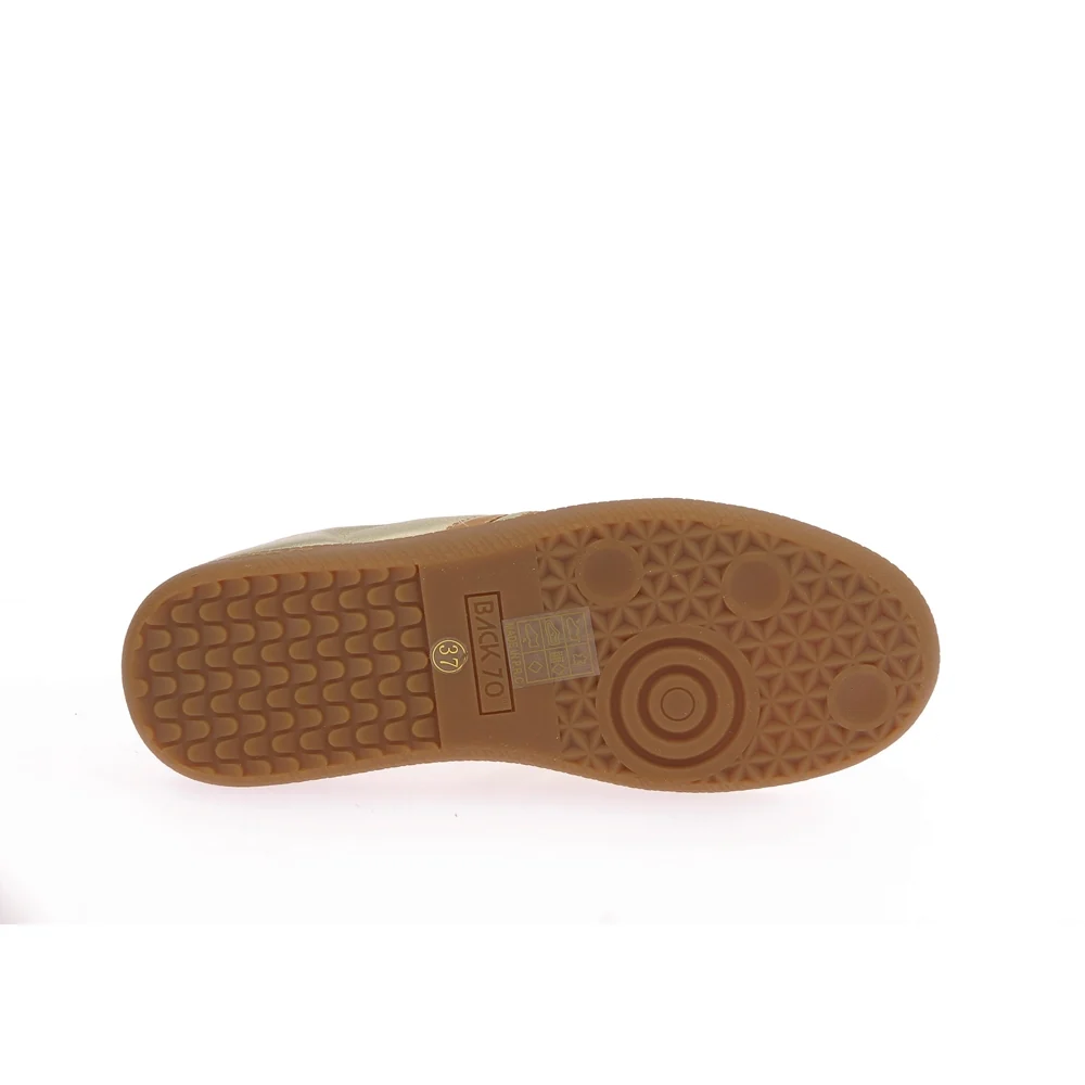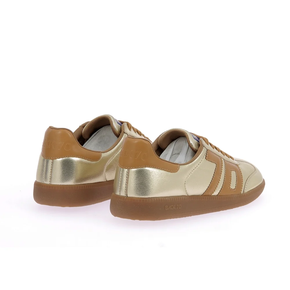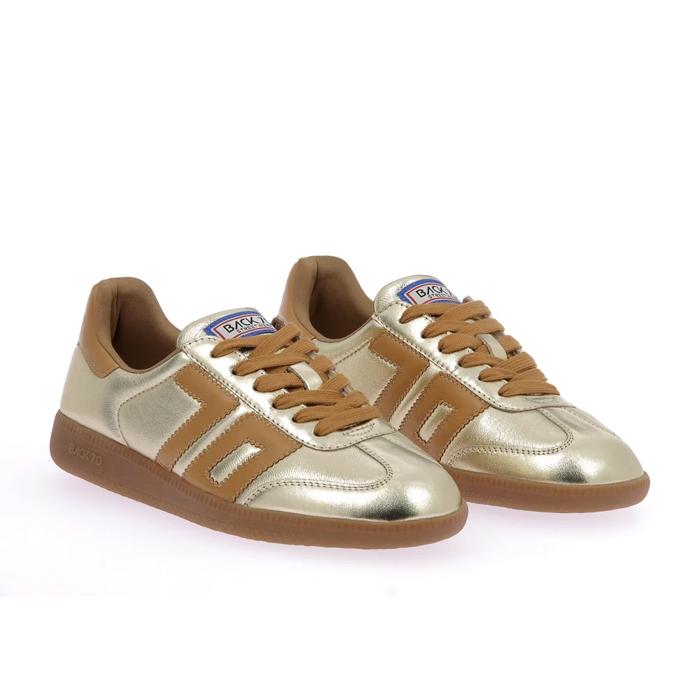 Tige : Cuir metallic Semelle extérieure : Caoutchouc naturel Semelle intérieure : Cuir amovible Doublure : Jersey de coton Couleur : Gold-cuoio Conseil chaussant : Prenez votre taille Particularité : Eco-responsable Ref interne : P09 Marque : Back 70 Référence : 108005-nm4
