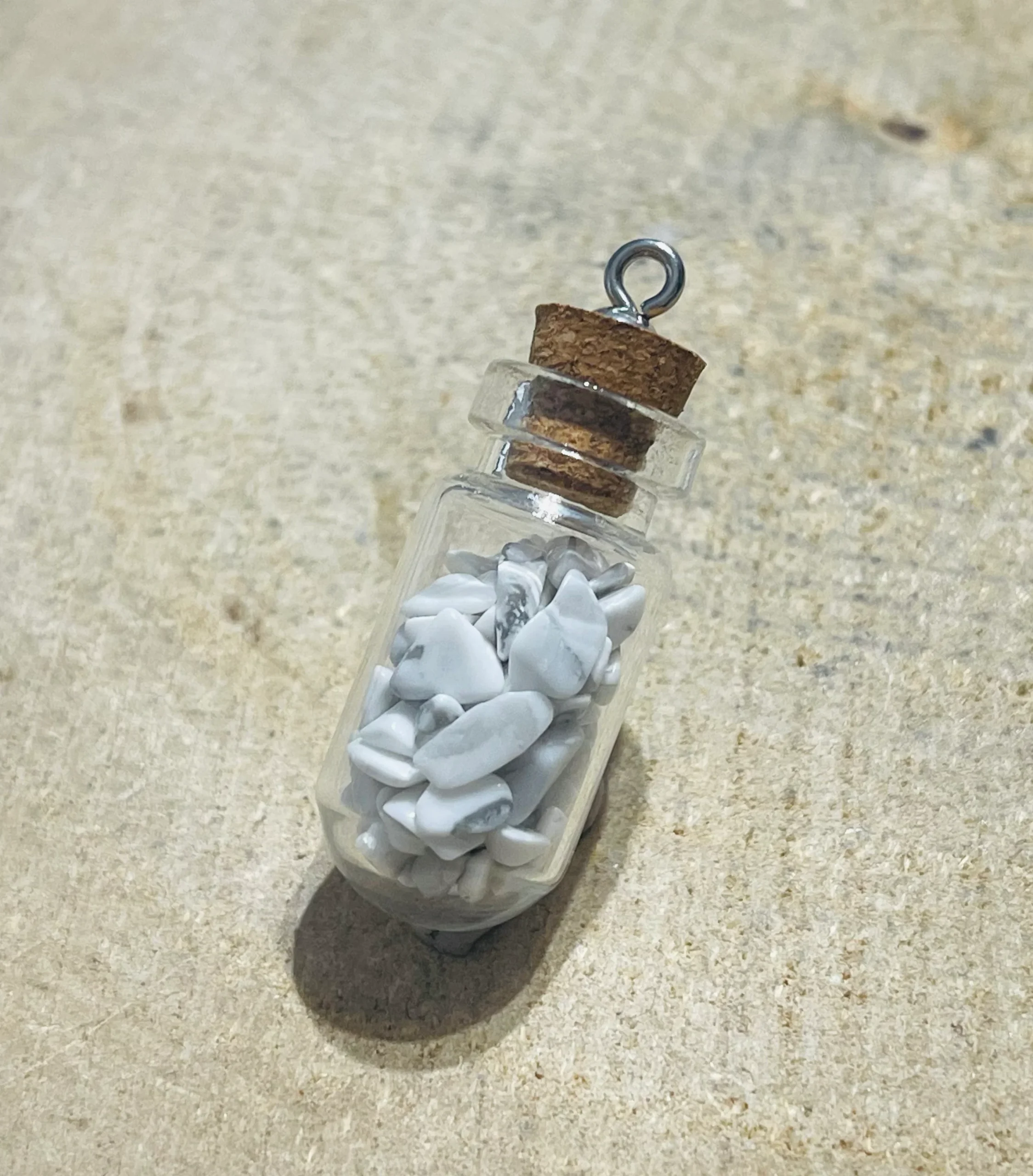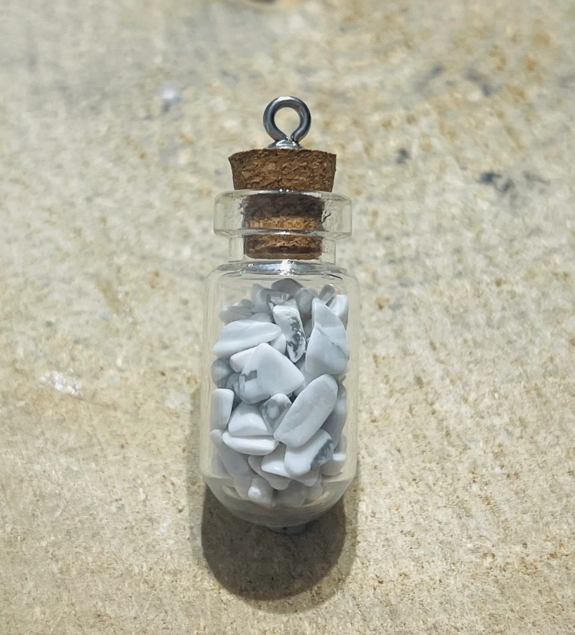 Fiole remplie de pépites en pierre naturelle Howlite