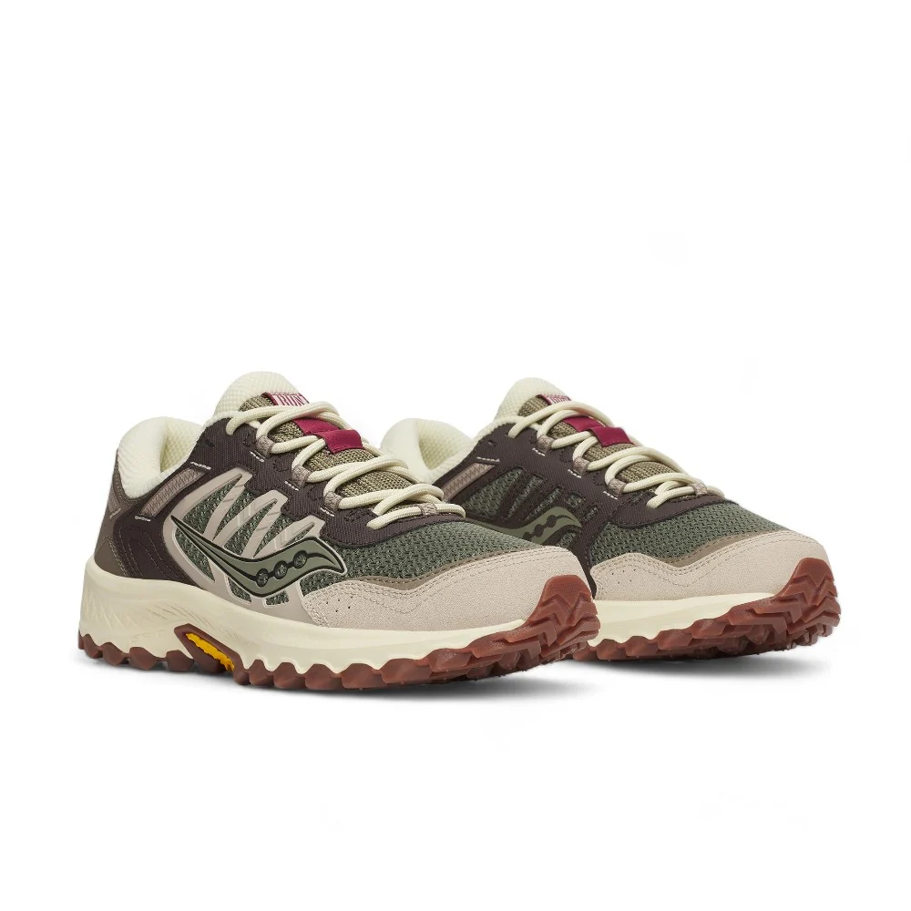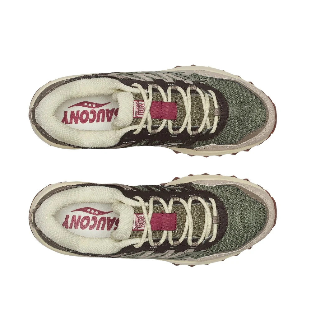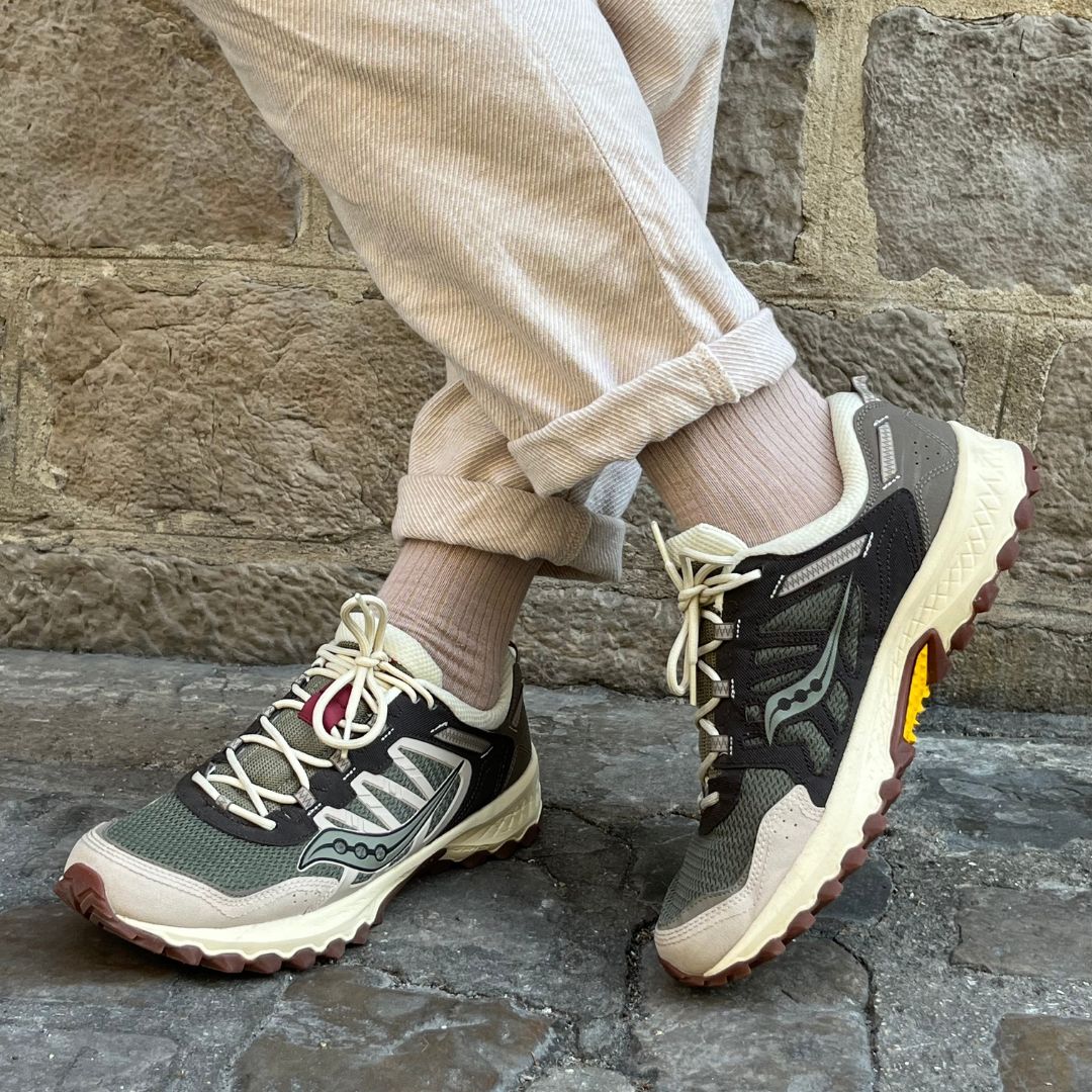 Tige : Cuir et nylon mesh Semelle extérieure : Gomme ultralight trail Semelle intérieure : Coton amovible Doublure : Jersey de coton Couleur : Olive-brown-6 Conseil chaussant : Prenez votre taille Particularité : Saisonnier Ref interne : K14 Marque : Saucony Référence : S70814m