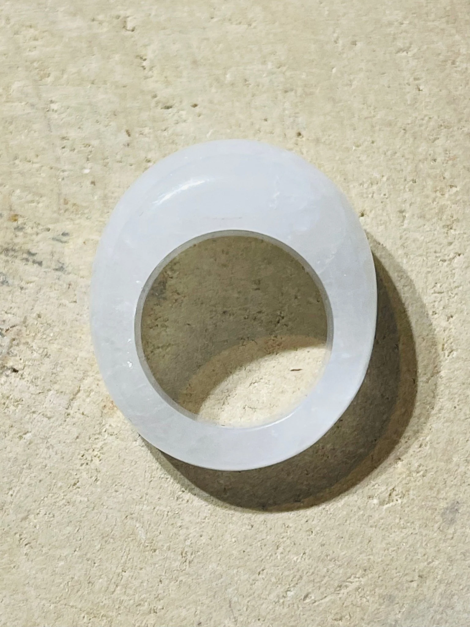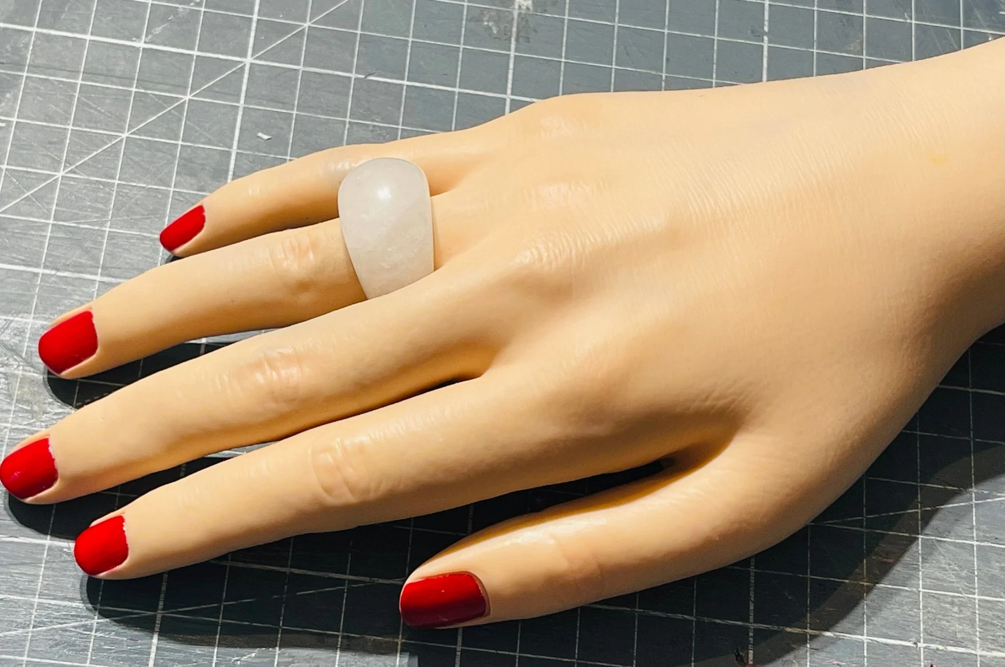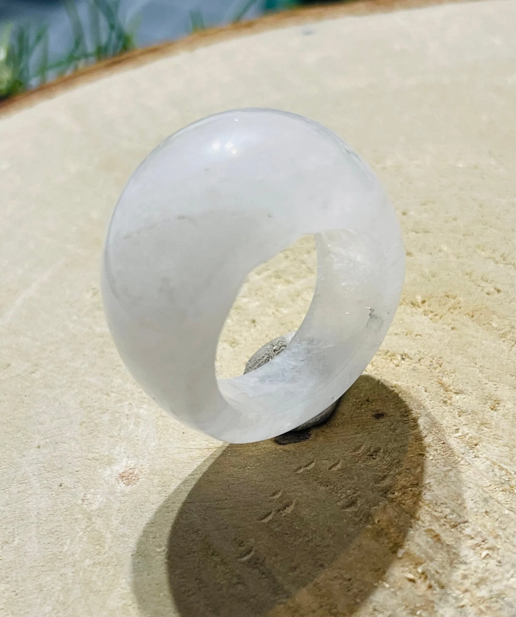 Il s’agit d’une bague entièrement faite à partir d’un bloc de cristal de roche.