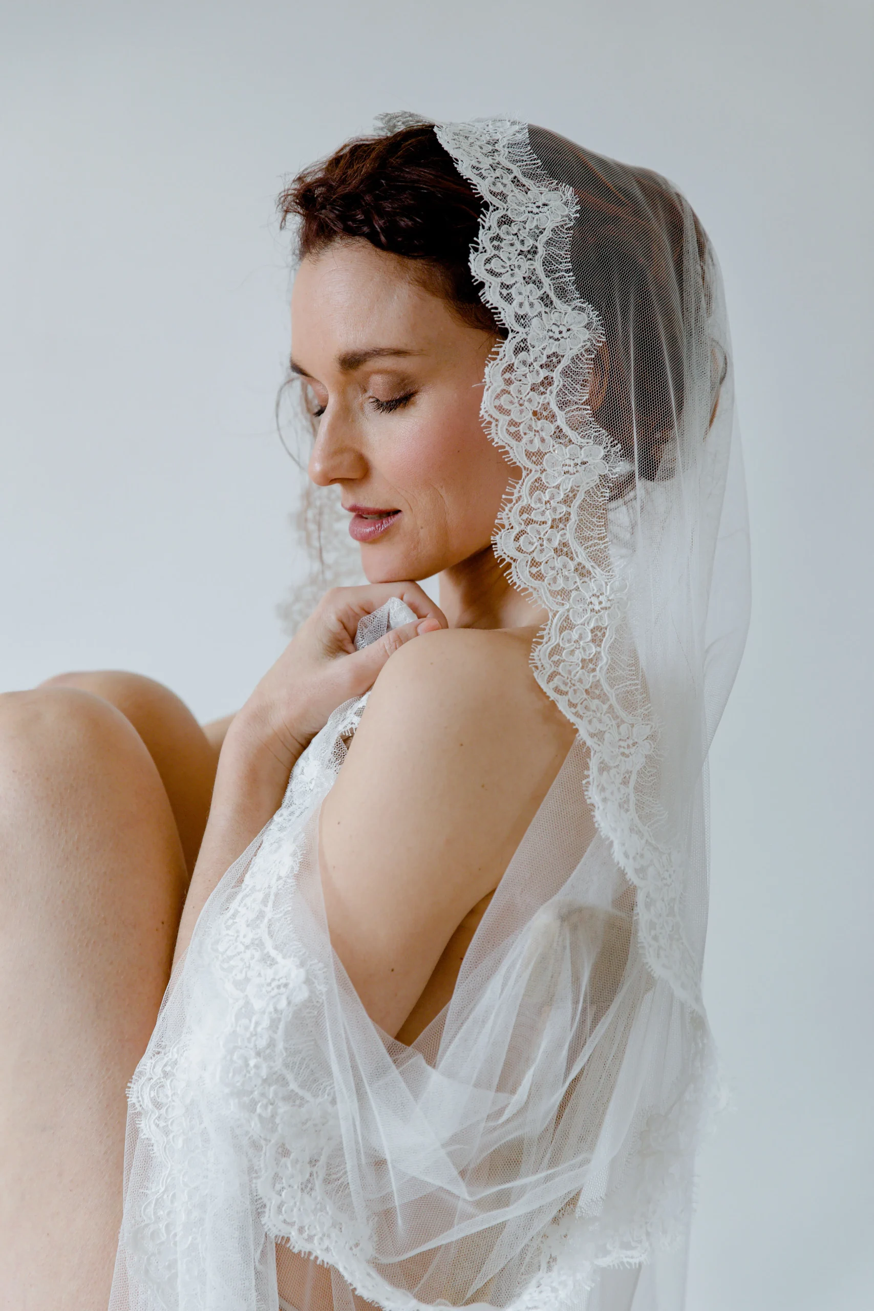 « Ibéris » voile mariée en tulle bordé de dentelle de calais BIO