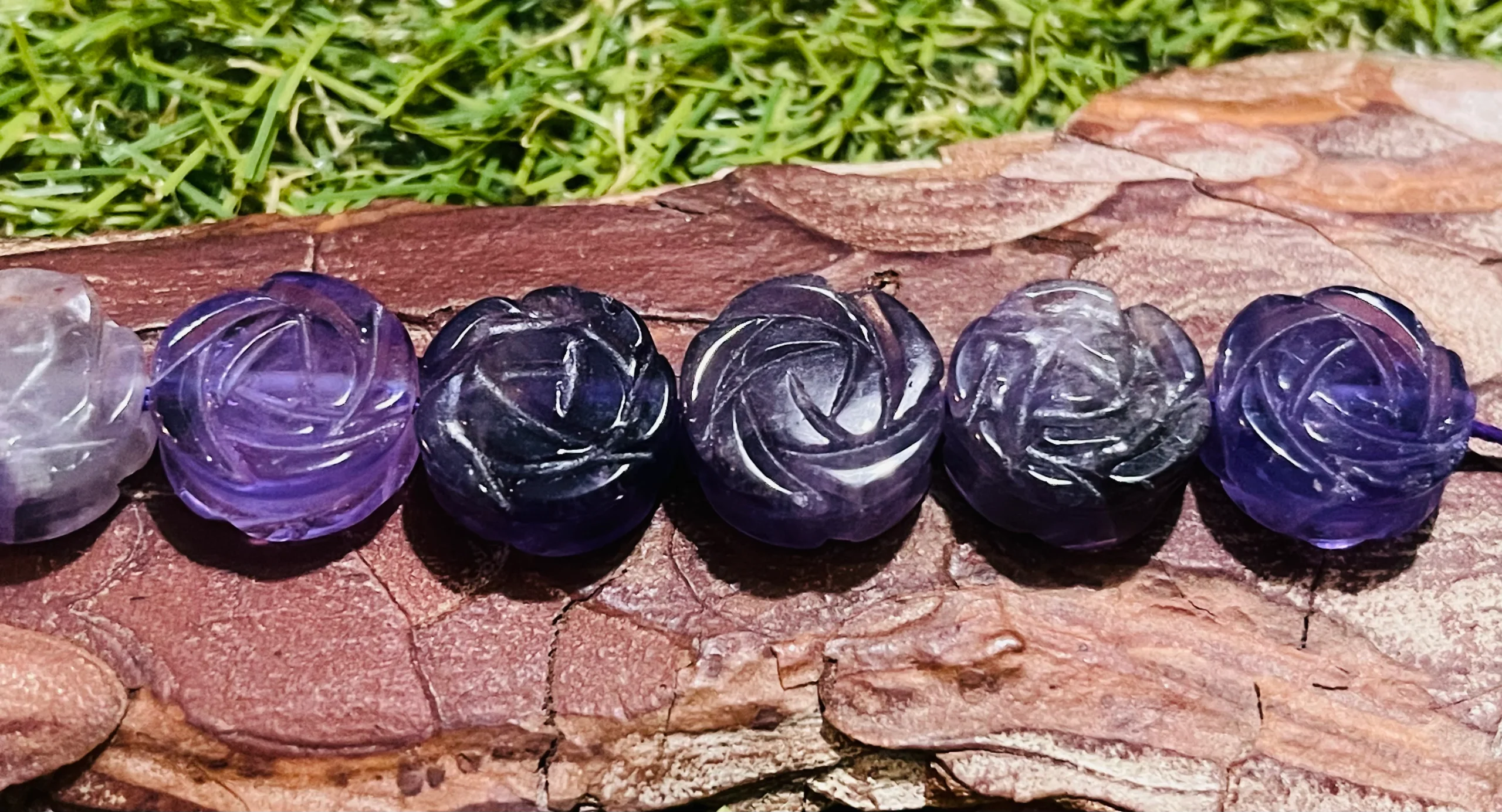 Il s’agit de perles naturelles véritables en Améthyste en forme de fleur.