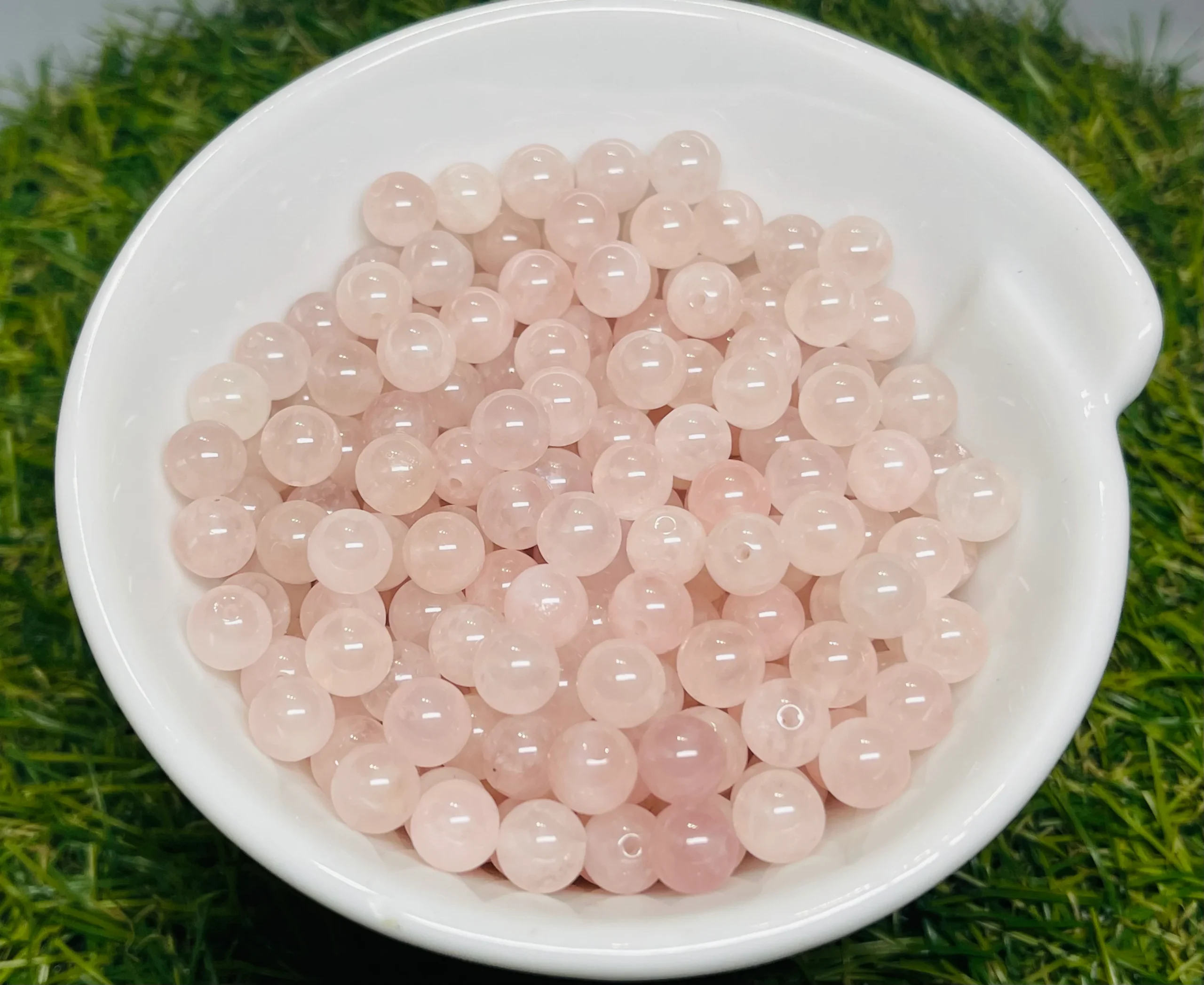 Il s’agit de perles en pierre naturelle véritable en Quartz rose de Madagascar.