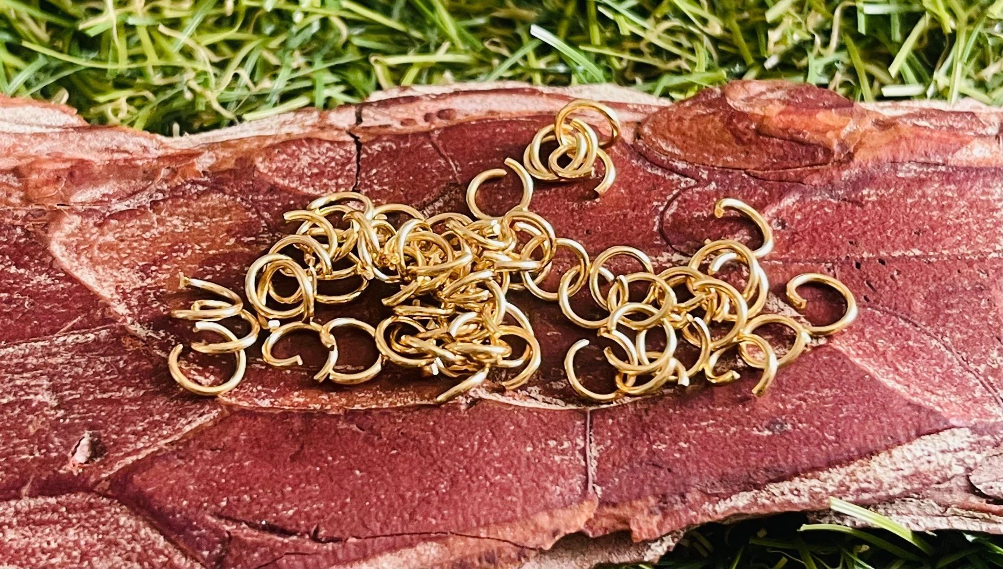 ANNEAUX DE JONCTION. Lot de 25 anneaux.Anneaux pour accrocher les breloques.En acier inoxydable doré.Dimension : 8 mm.