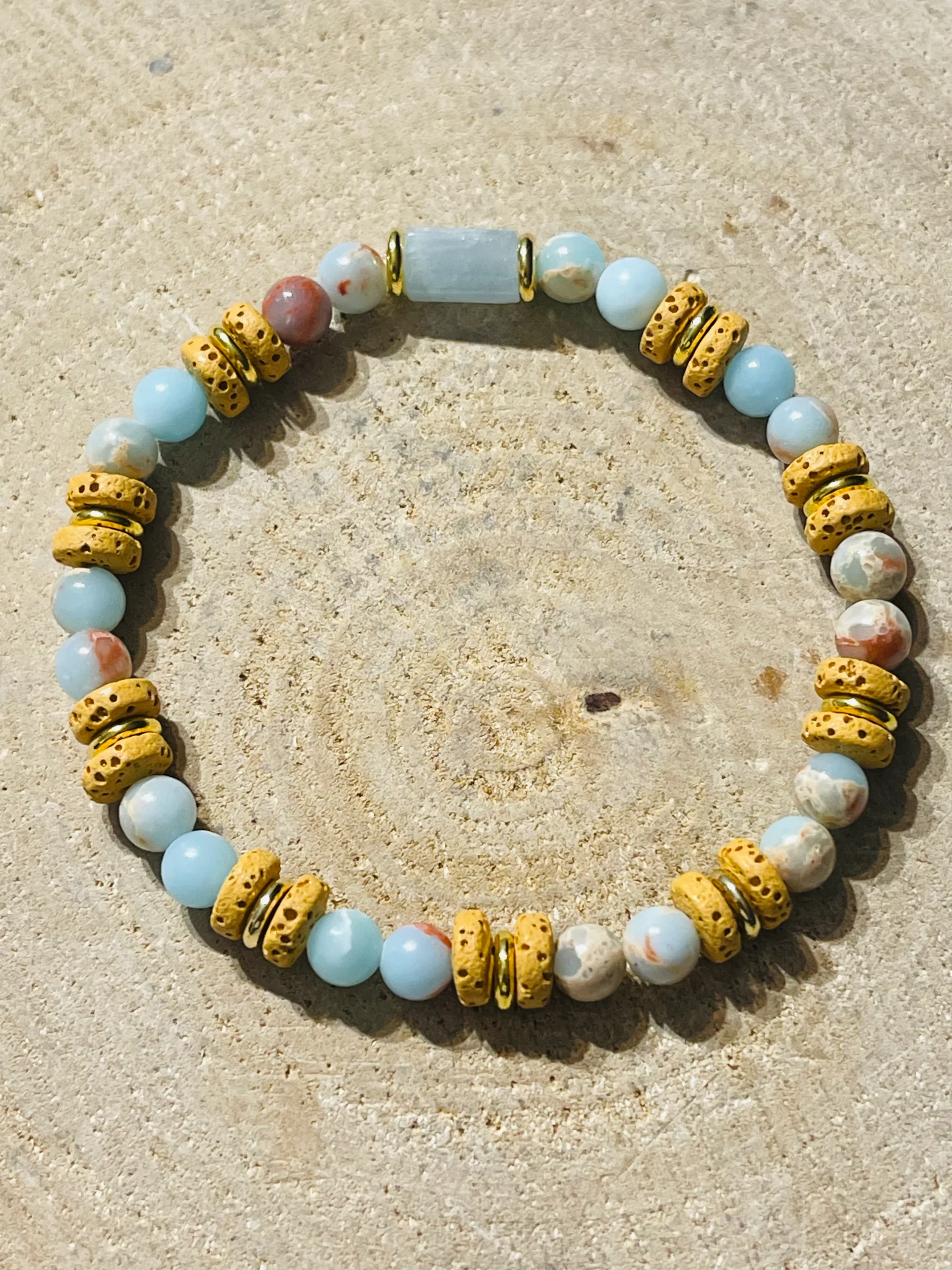 Bracelets de perles en pierre naturelle en Aigue-marine et Pierre de lave.
