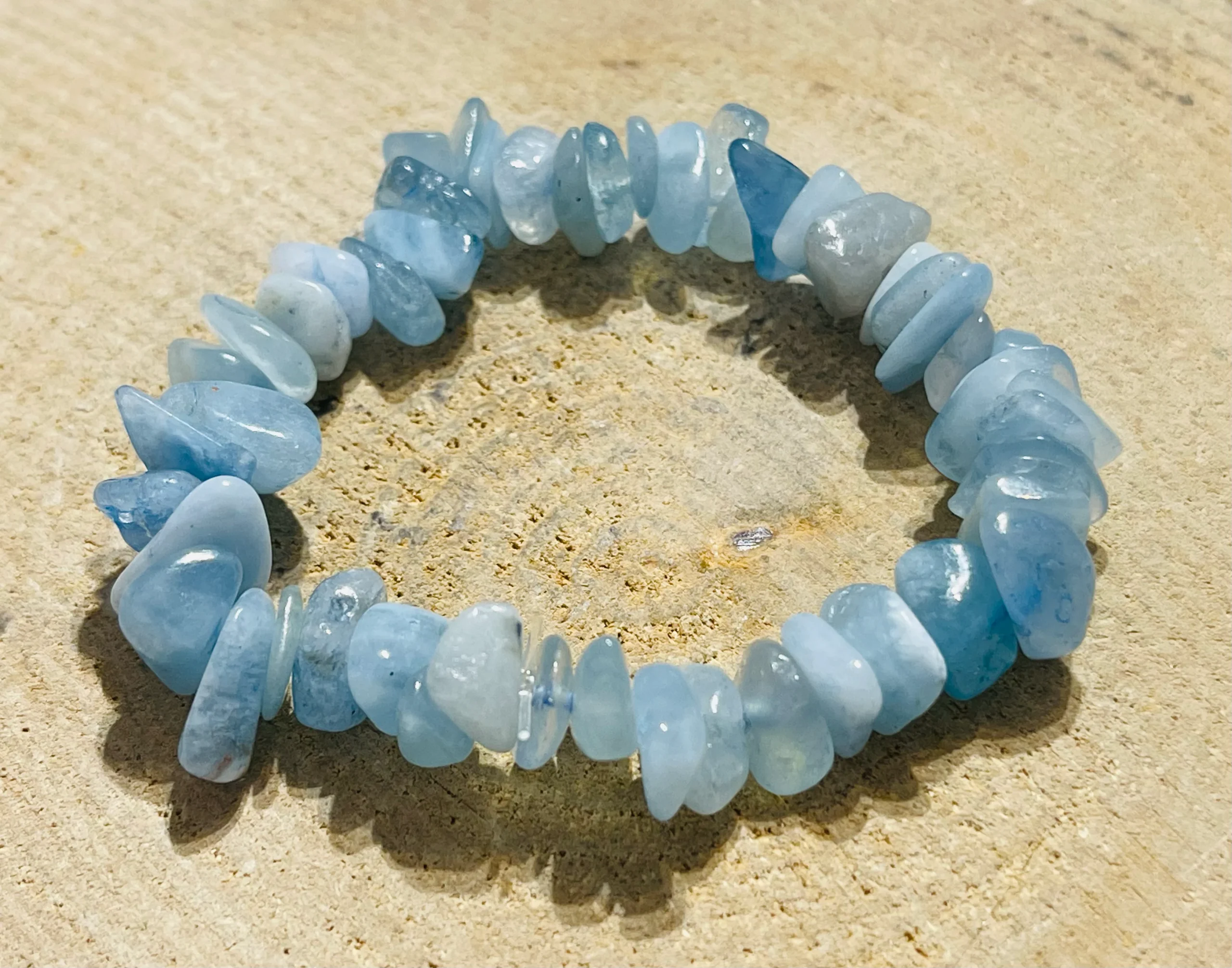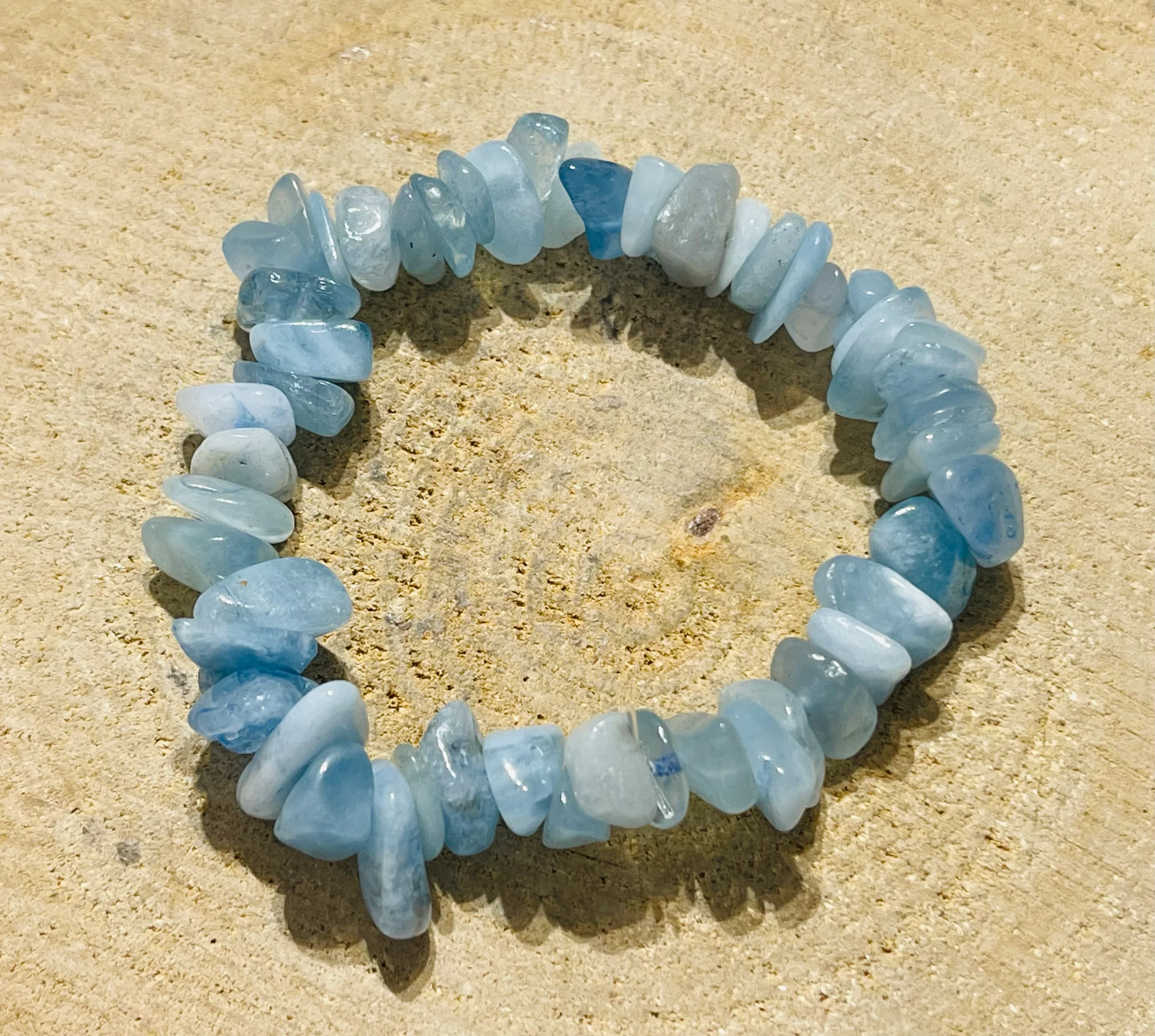 Bracelets en perles naturelles en Aigue marine. Il s’agit d’un lot de 5 bracelets en perles naturelles en Aigue marine en forme de pépites. Fil élastique.Longueur du bracelet : 16 cm. Soit 11,57 euros le bracelet.