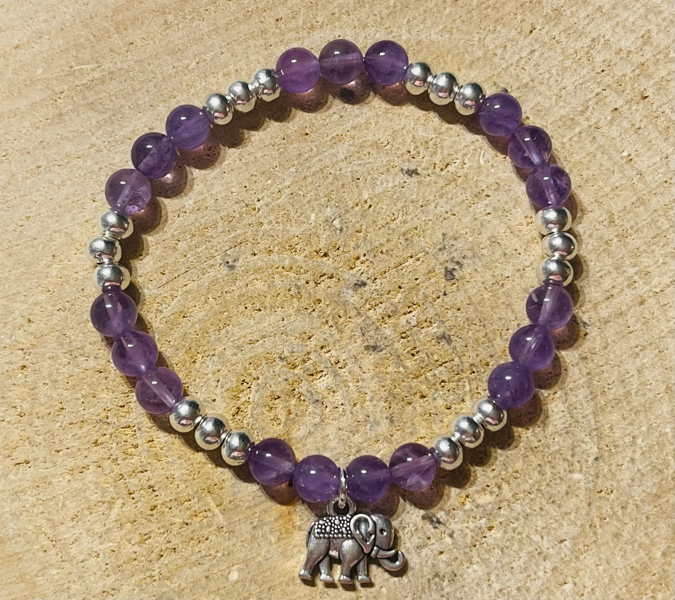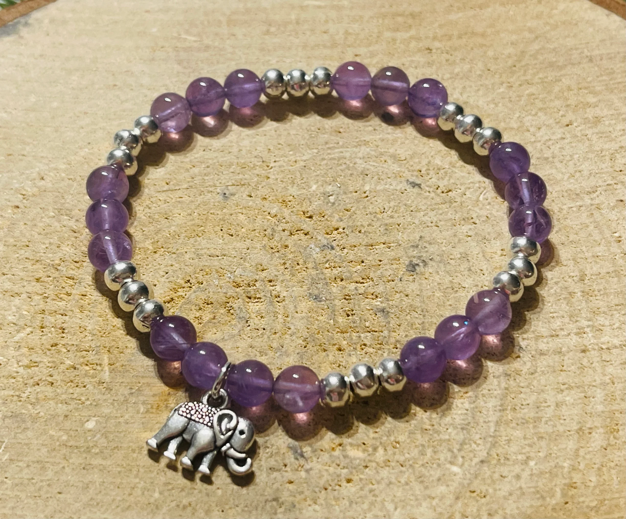 Bracelets en perles naturelles en Améthyste et ganesh.