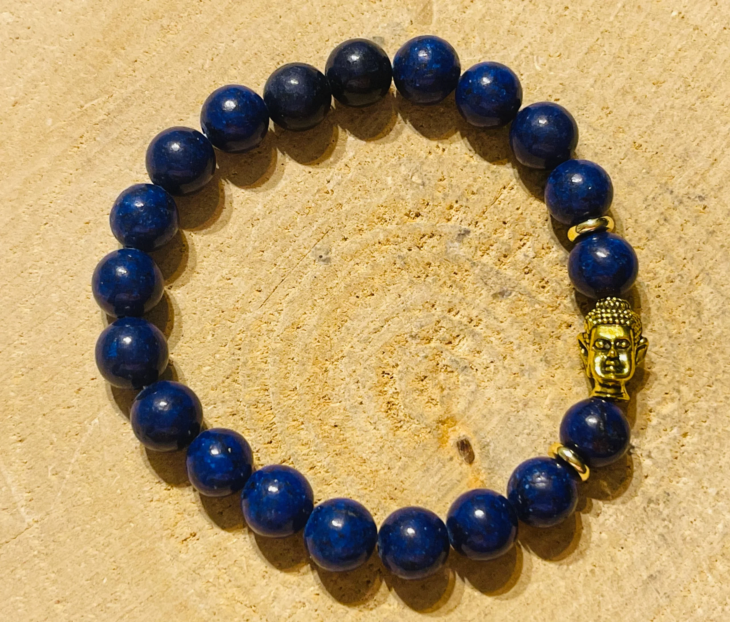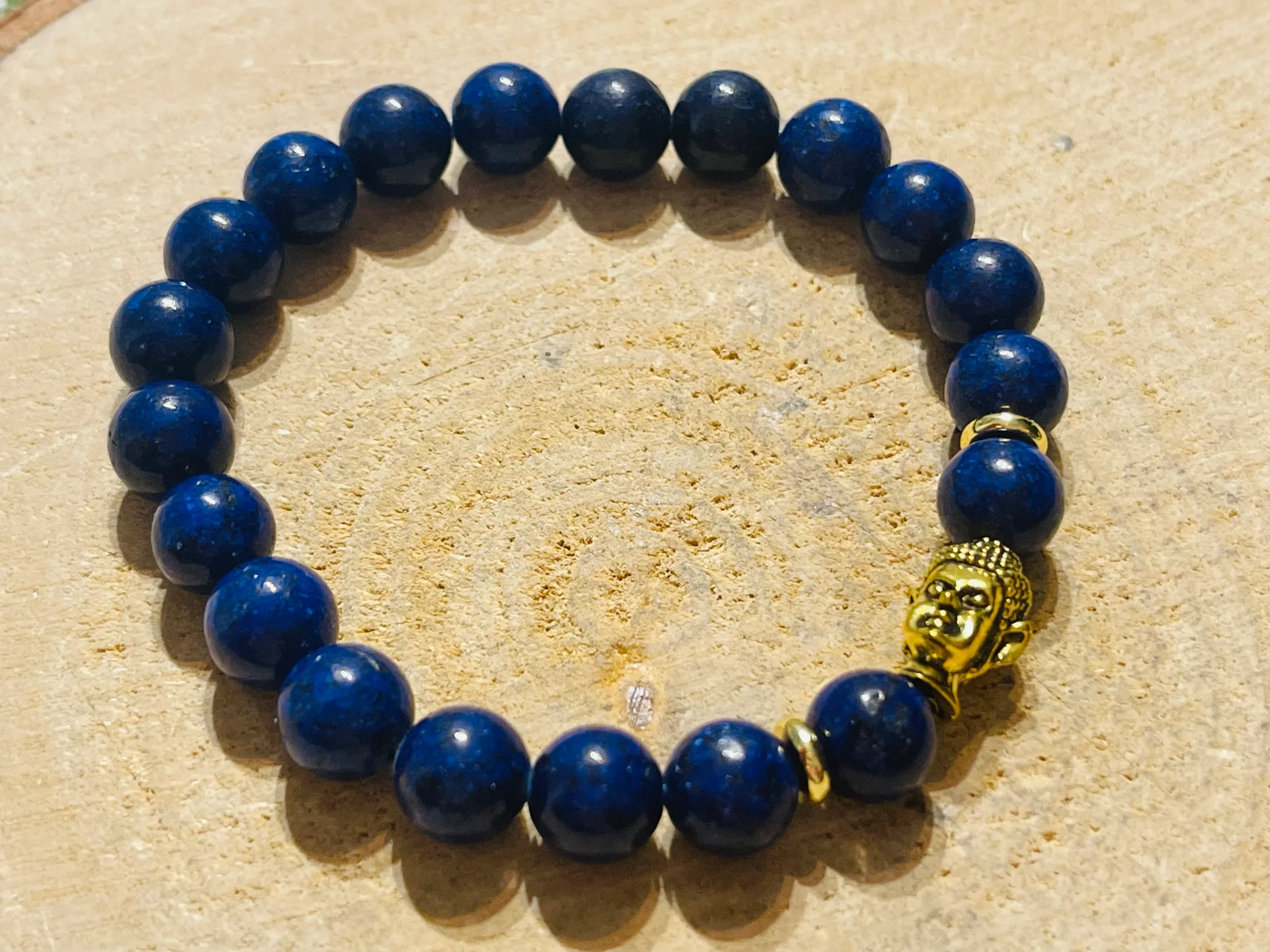 Bracelets en perles naturelles en Lapis lazuli et bouddha.