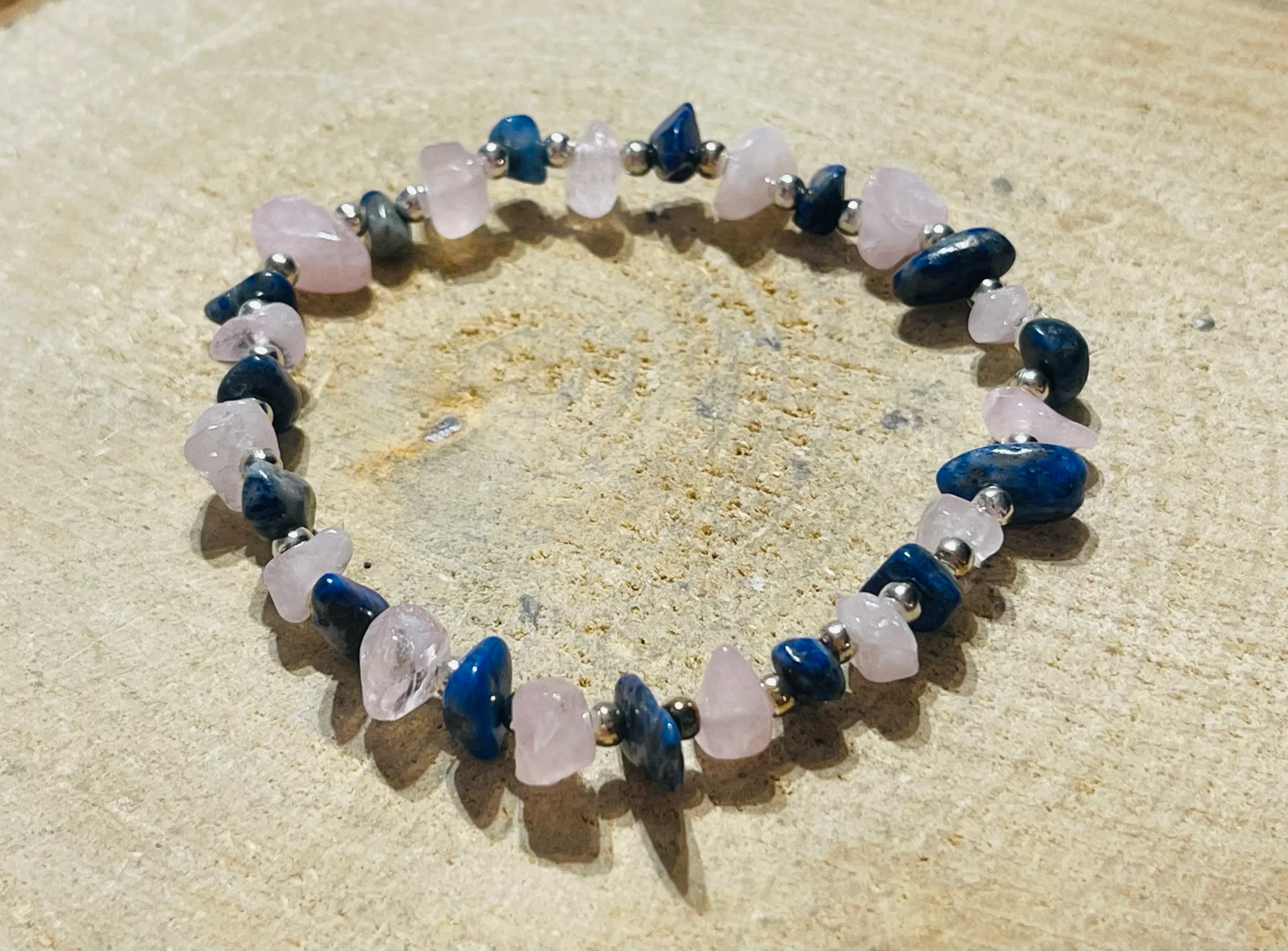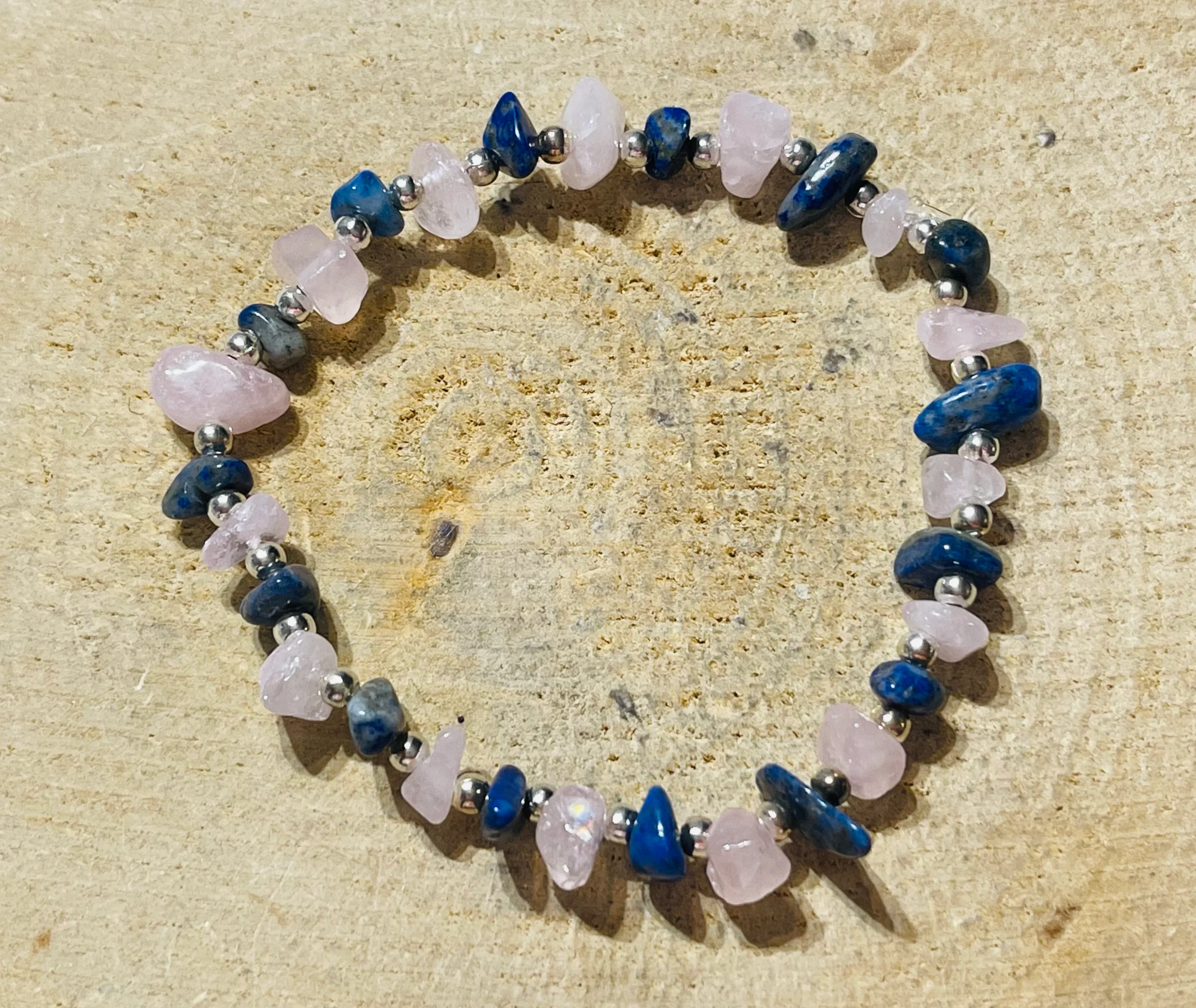 Bracelets en perles naturelles en Lapis lazuli et Quartz rose.