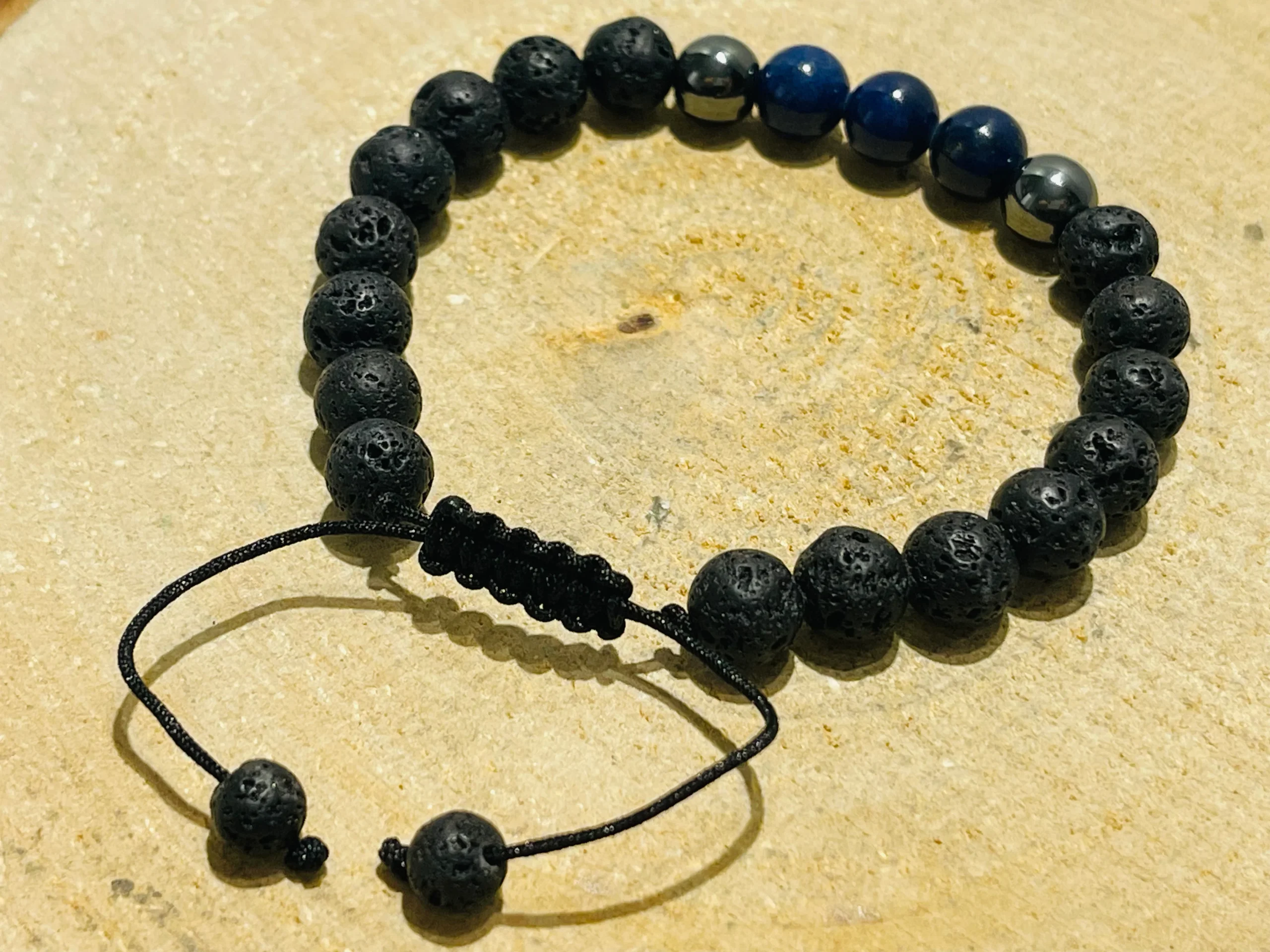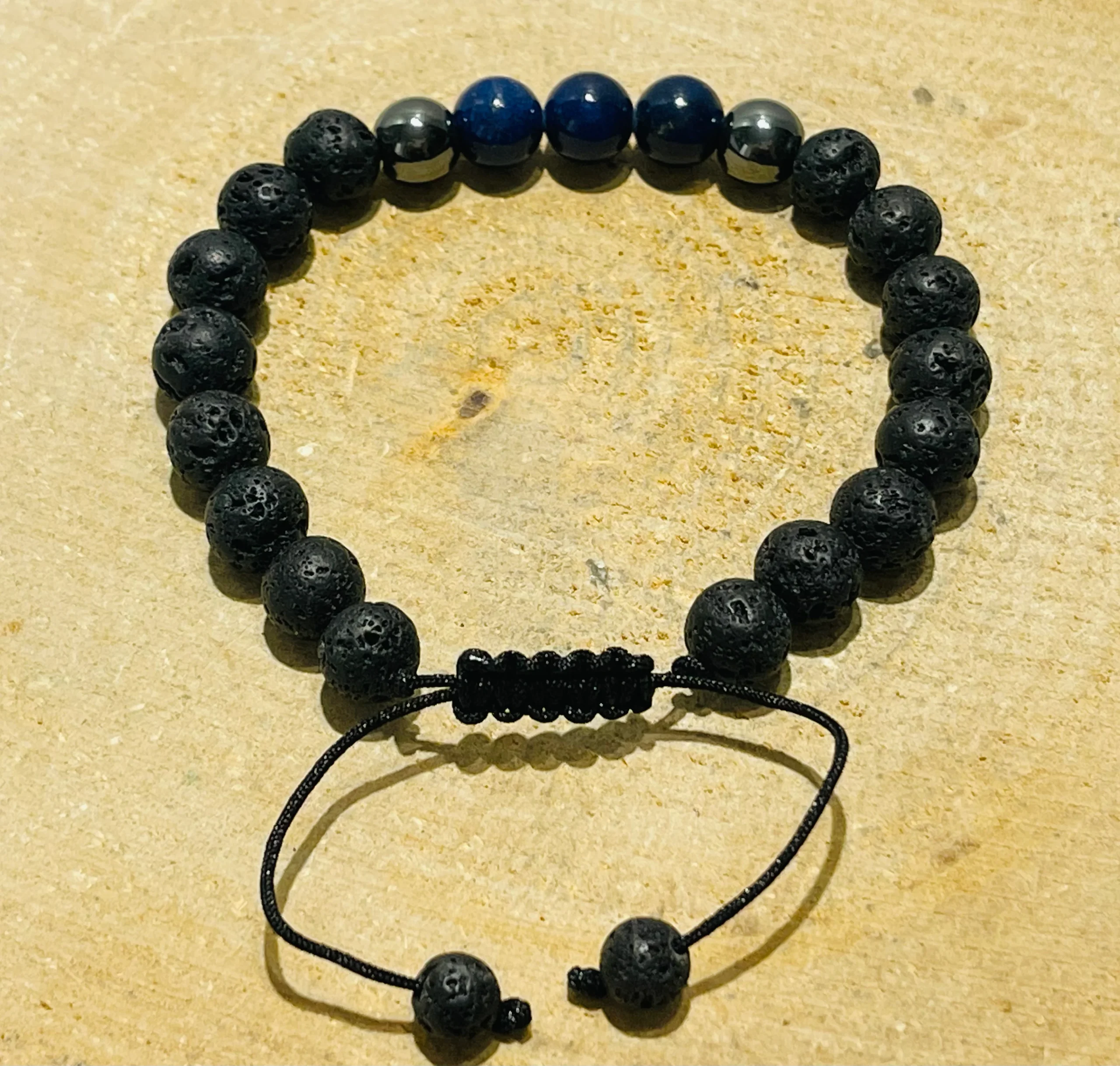 Il s’agit d’un lot de 5 bracelets de perles en pierre naturelle en Pierre de lave, Hématite et Lapis lazuli 8 mm.