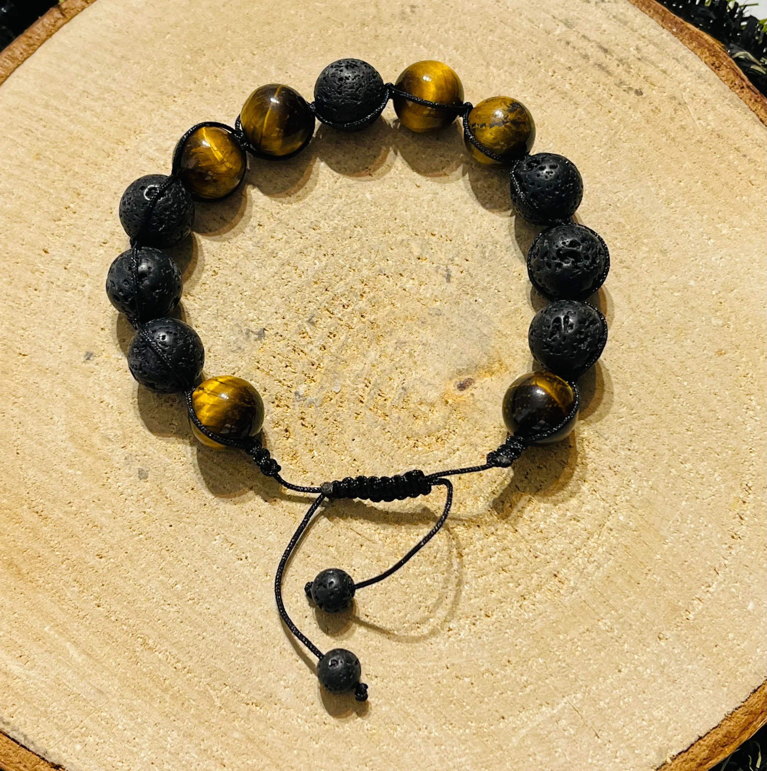 Il s’agit d’un lot de 5 bracelets en perles naturelles en Oeil de tigre et Pierre de lave 12 mm.