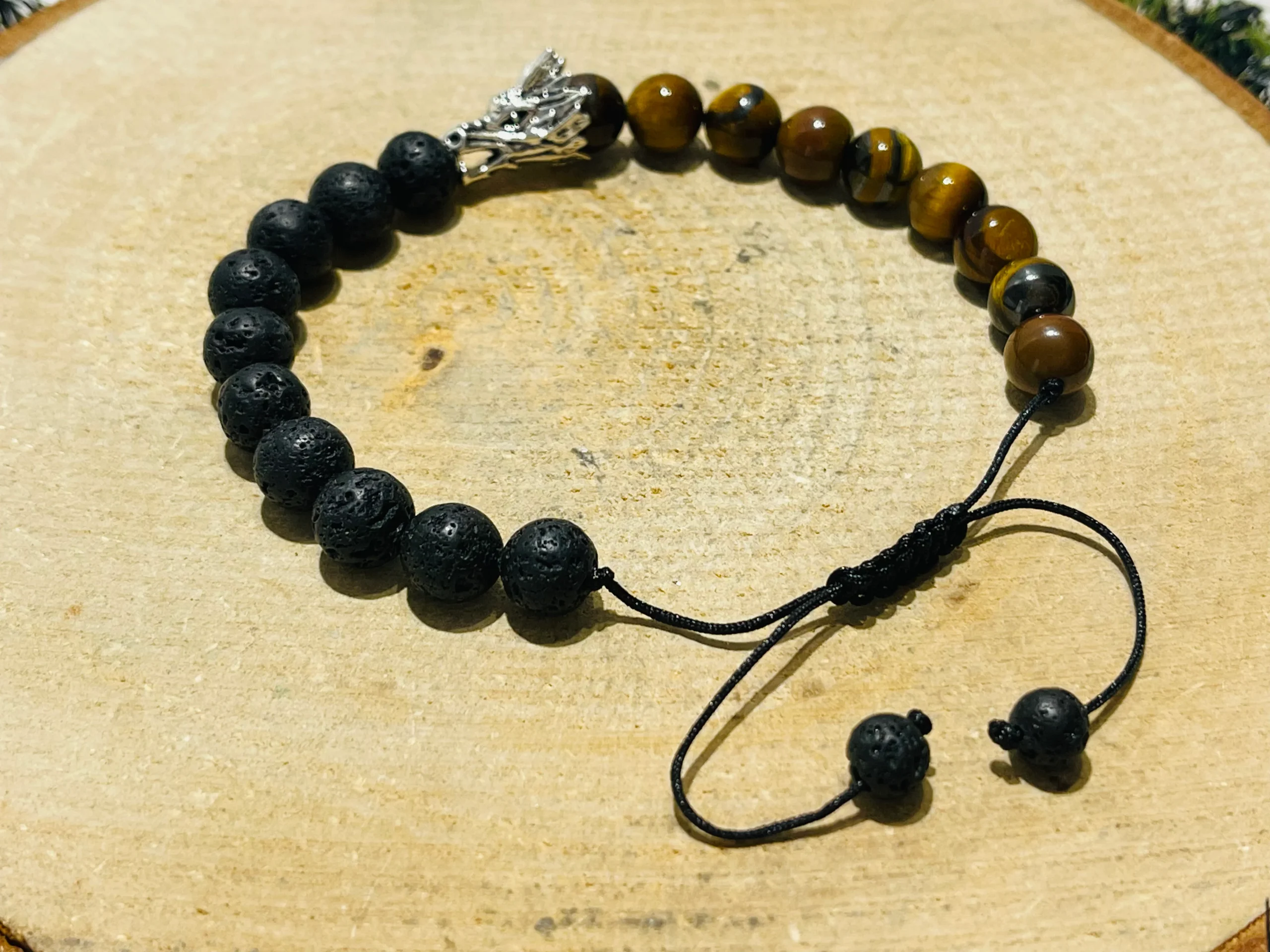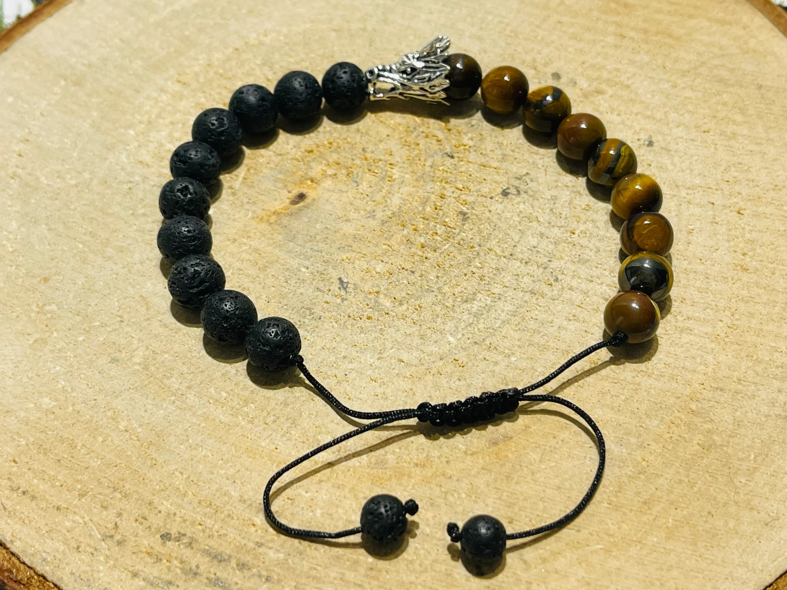 Lot de 5 Bracelets réglables en perles naturelles en Oeil de tigre, pierre de lave et dragon (26)