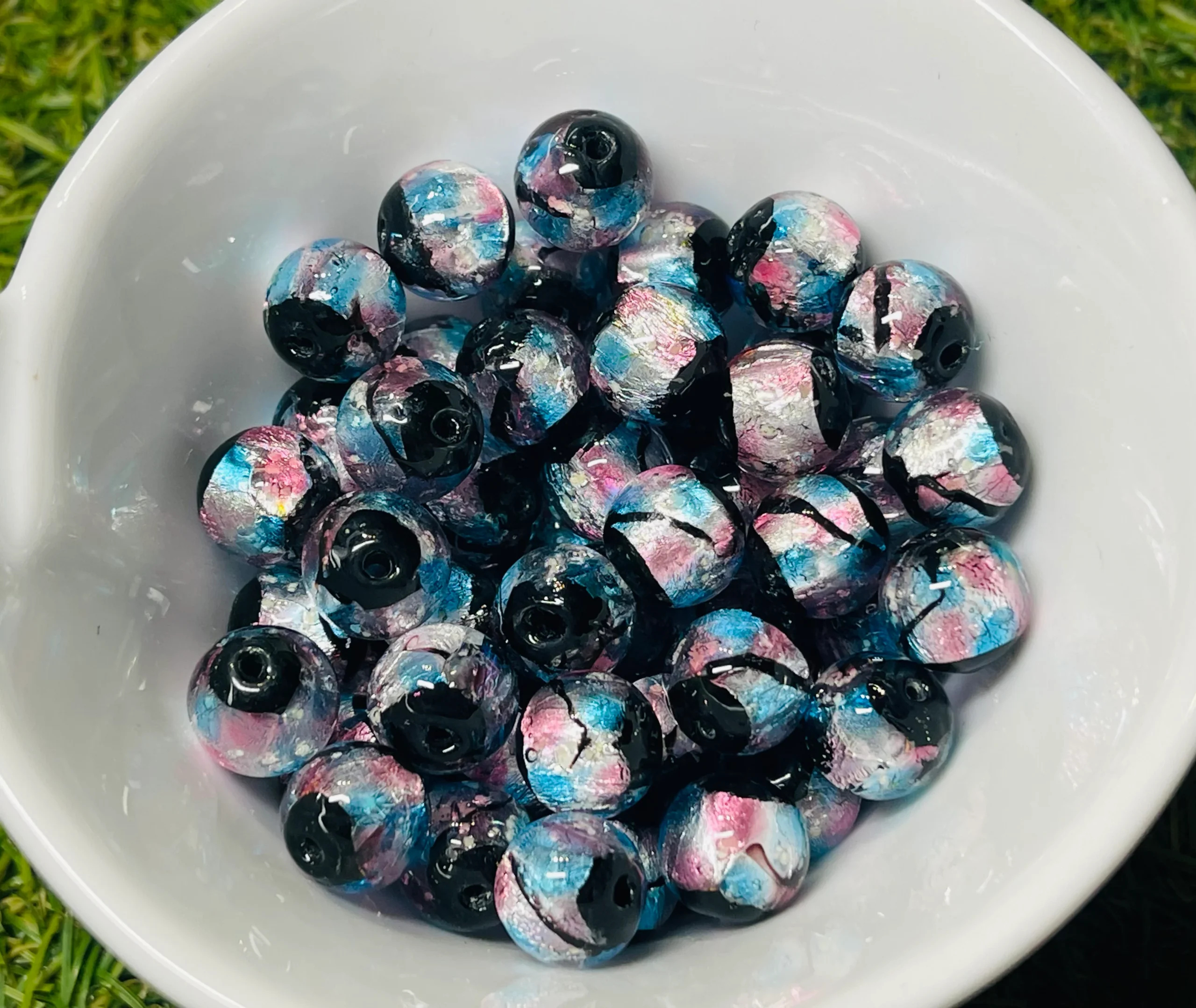 Lot de Perles Lumineuses en verre bleu ciel et rose en 10 mm pour bracelet