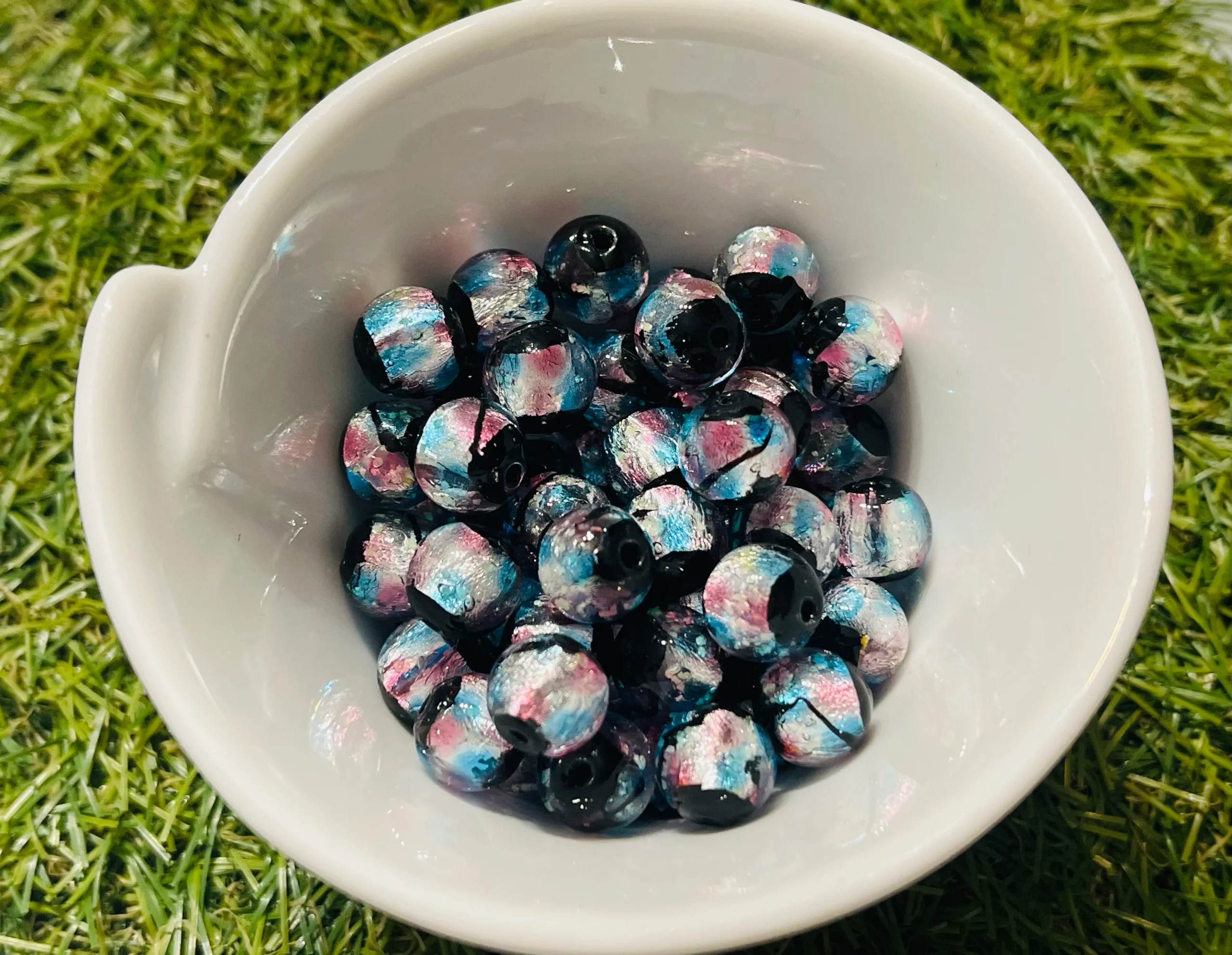 Il s’agit de rares perles Lumineuses artisanales de couleur bleu ciel et rose pour bracelet.