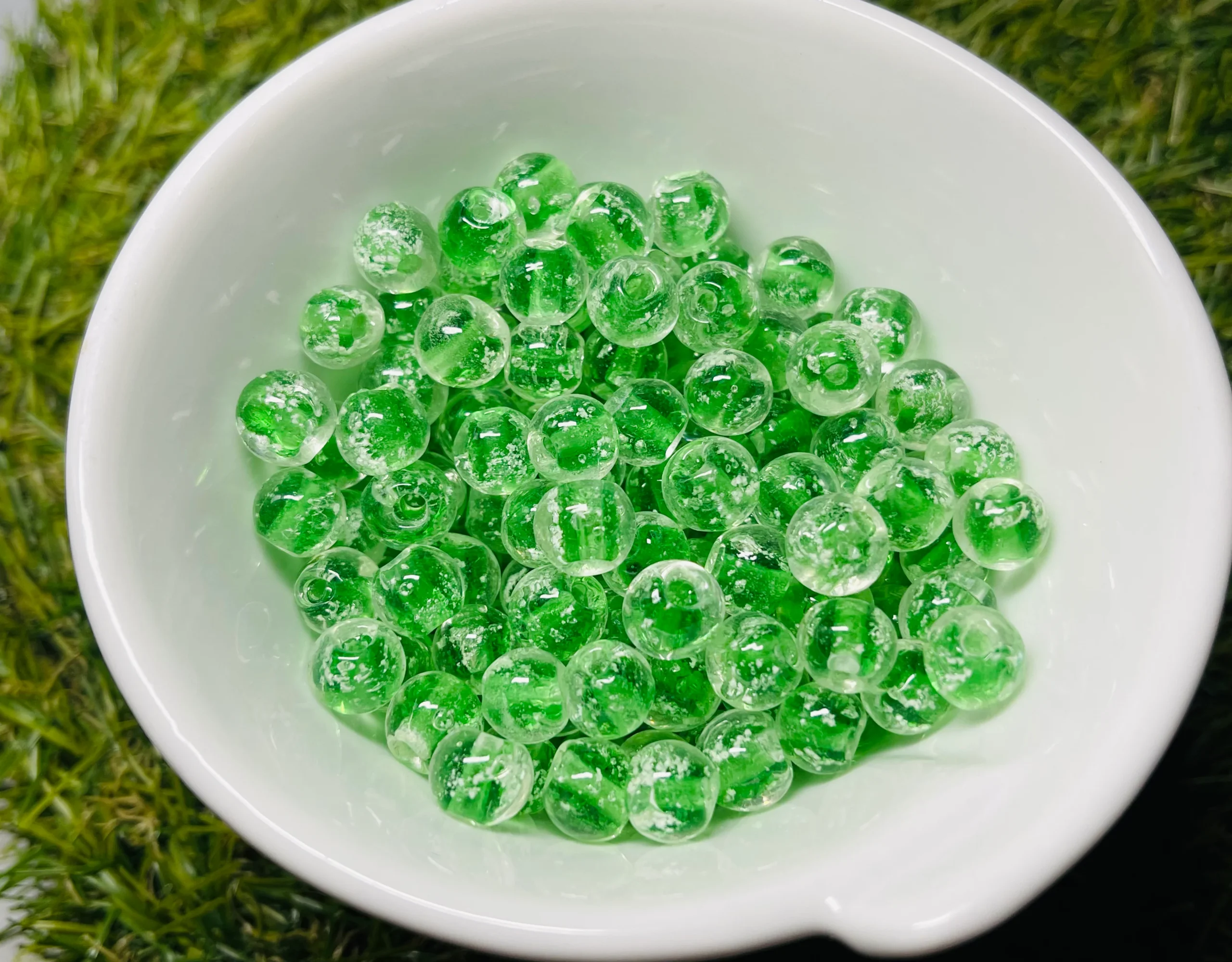 Il s’agit de perles Lumineuses artisanales de couleur vert pour bracelet.