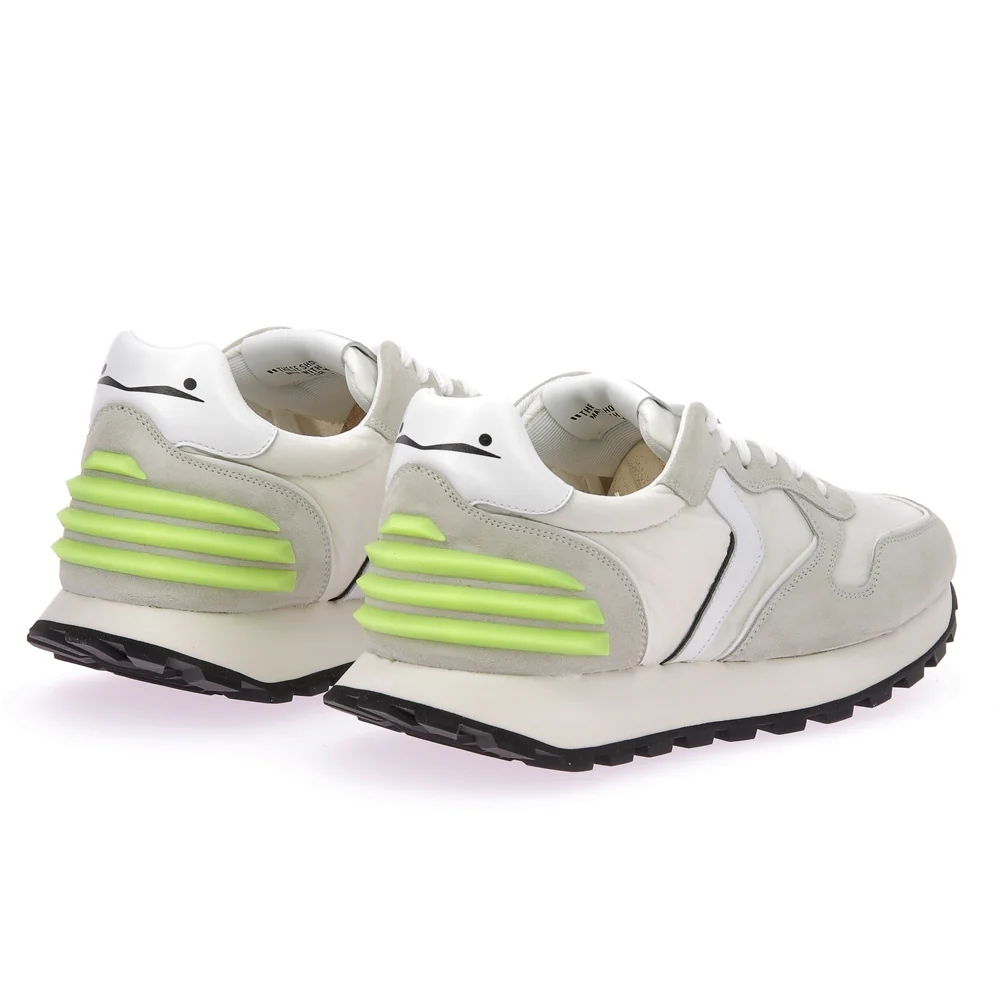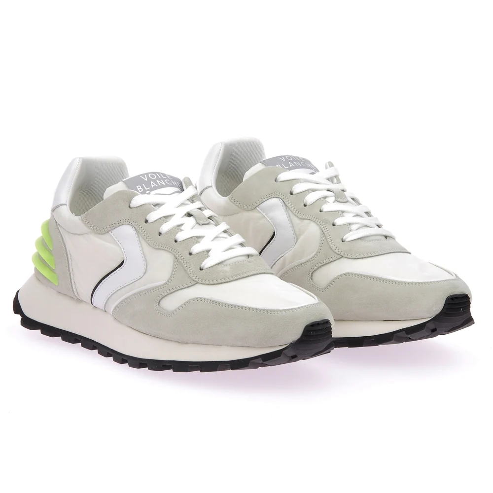 Tige : Suede et nylon Semelle extérieure : Running en gomme Semelle intérieure : Cuir Doublure : Cuir Couleur : Ice-white-fluo Conseil chaussant : Prenez votre taille Particularité : Artisanale Pays de Fabrication : Italie Ref interne : M04 Marque : Voile blanche Référence : 1b30