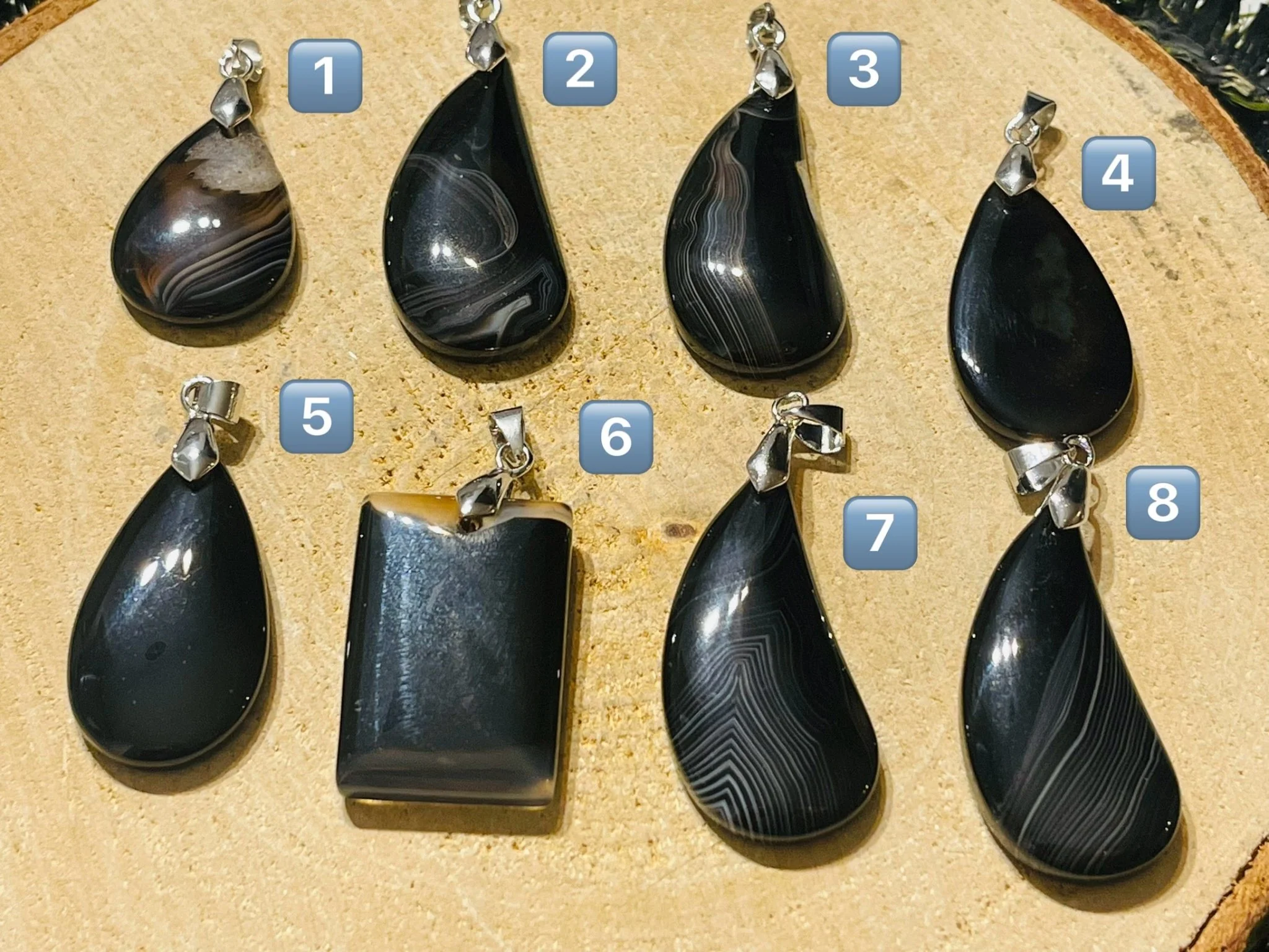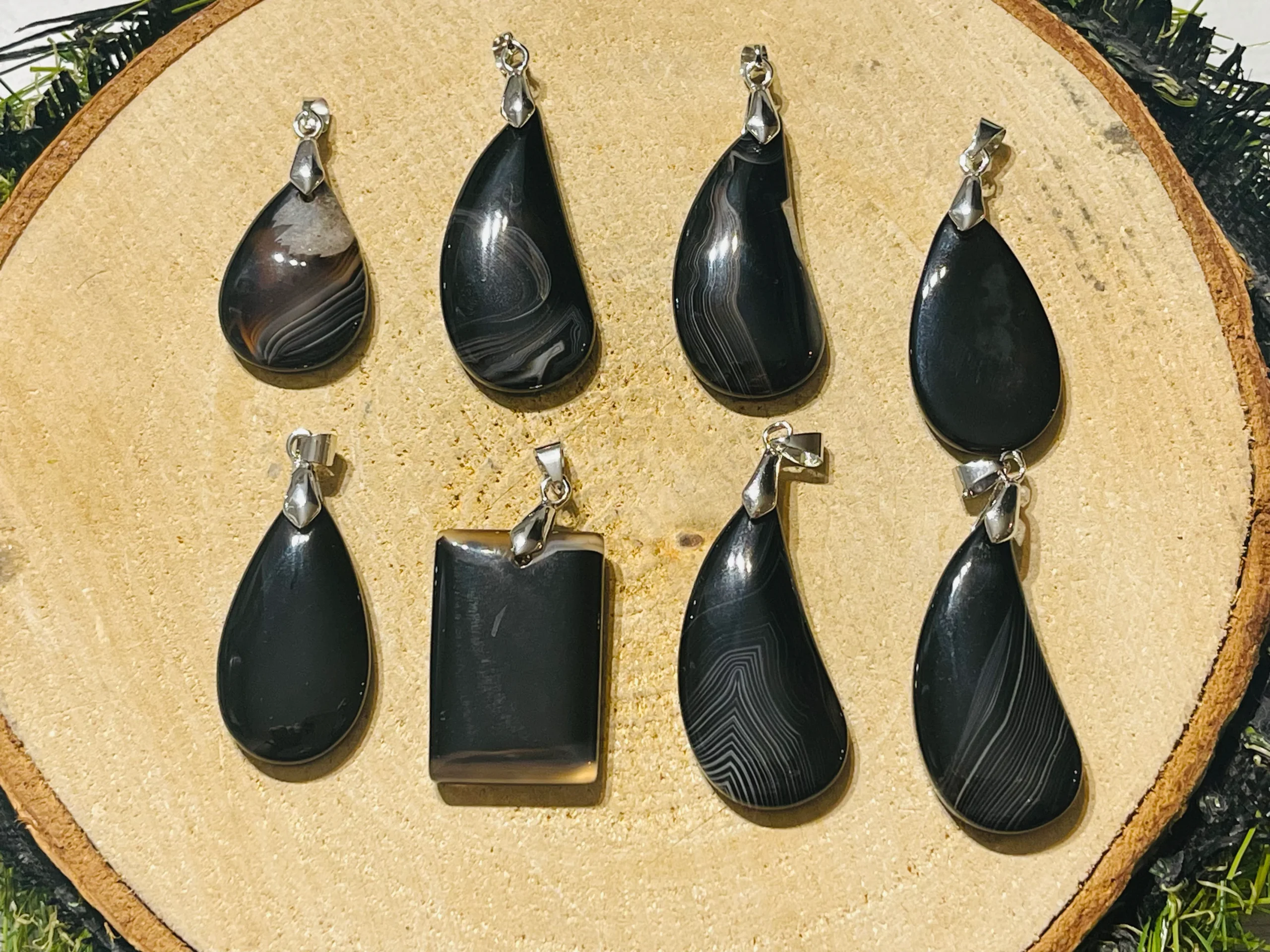 Pendentif en Agate à bandes au choix. Laiton argenté.Dimensions : 30-42 x 20 mm.