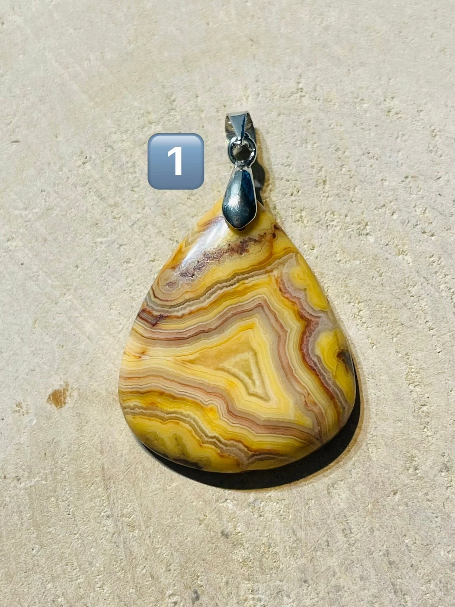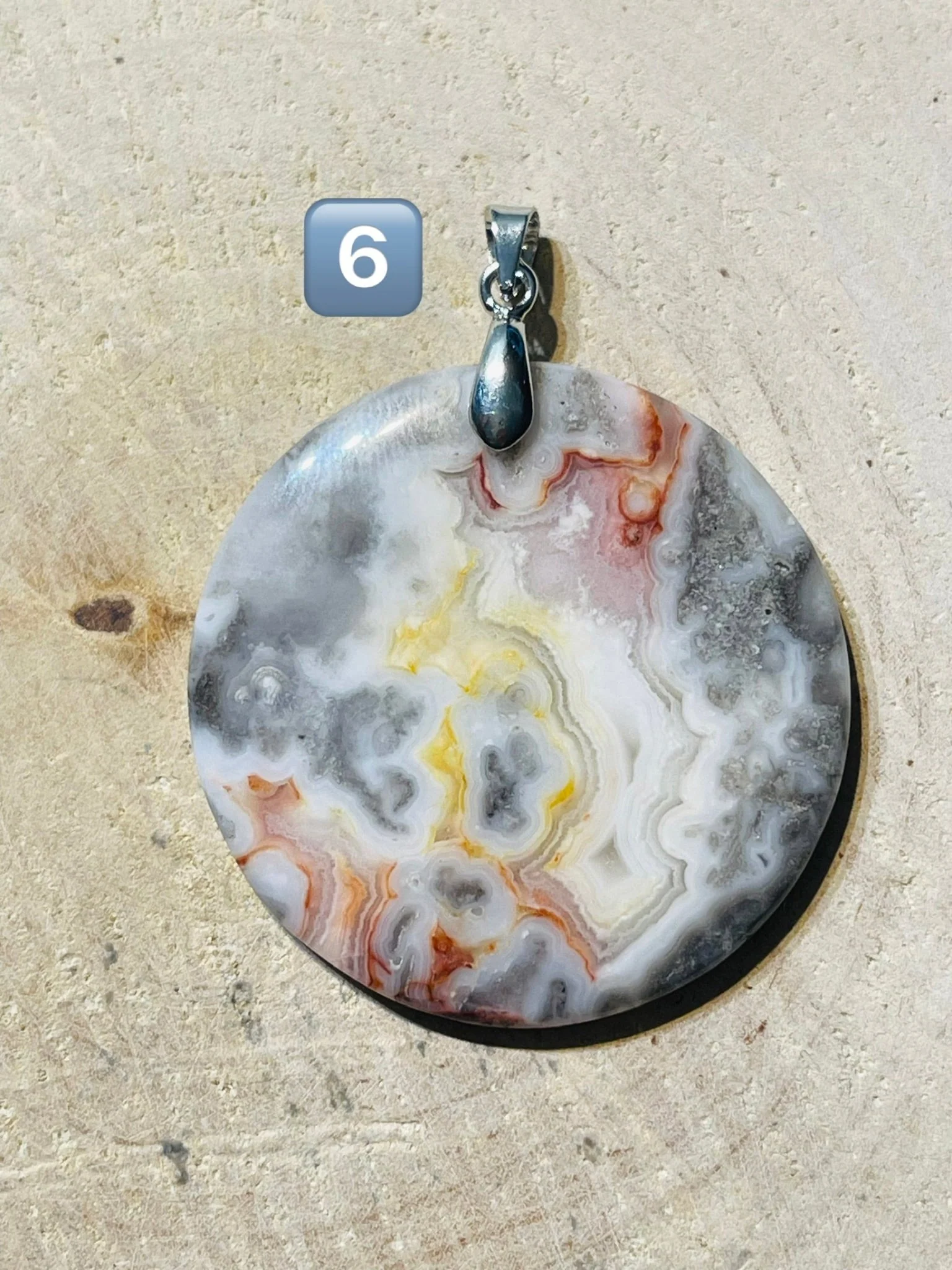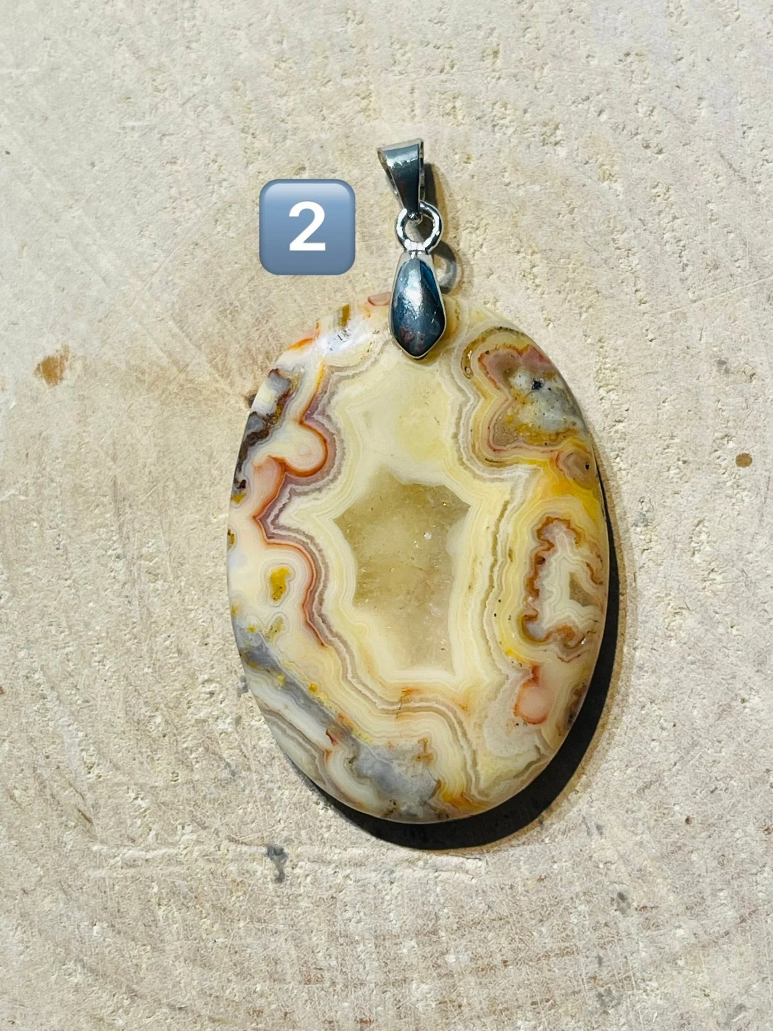 PENDENTIF EN AGATE CRAZY LACE. Bélière en laiton argenté. Dimensions : 31-45 x 20-38 mm. Origine : Mexique 🇲🇽 Vertus : Elle favorise l’agilité mentale, la vivacité et la variété, et encourage la souplesse dans la pensée et l’action.
