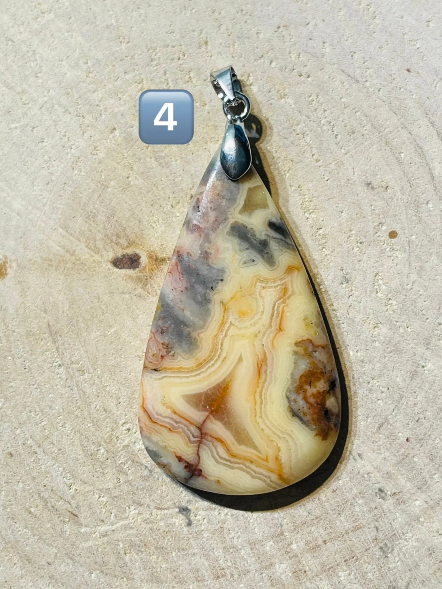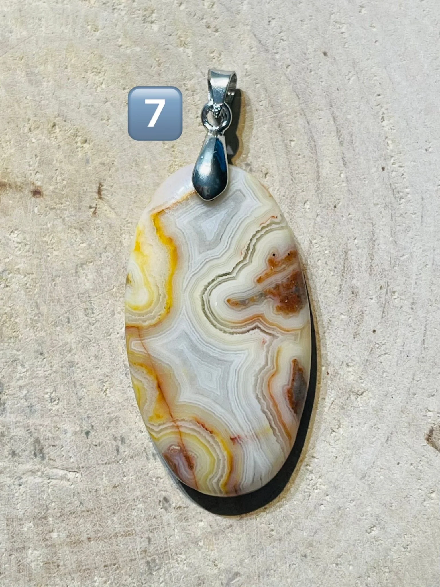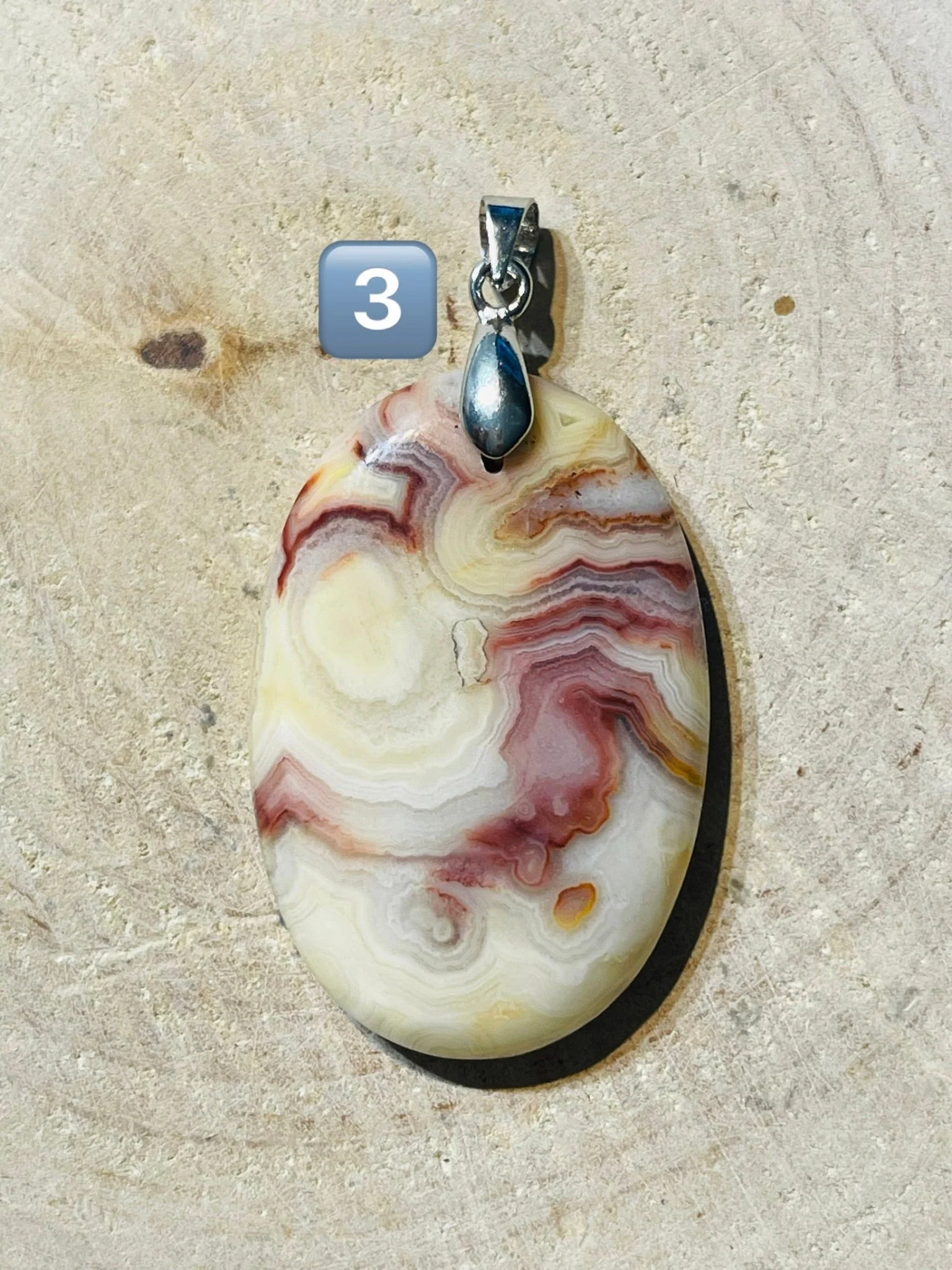 PENDENTIF EN AGATE CRAZY LACE. Bélière en laiton argenté. Dimensions : 31-45 x 20-38 mm. Origine : Mexique 🇲🇽 Vertus : Elle favorise l’agilité mentale, la vivacité et la variété, et encourage la souplesse dans la pensée et l’action.