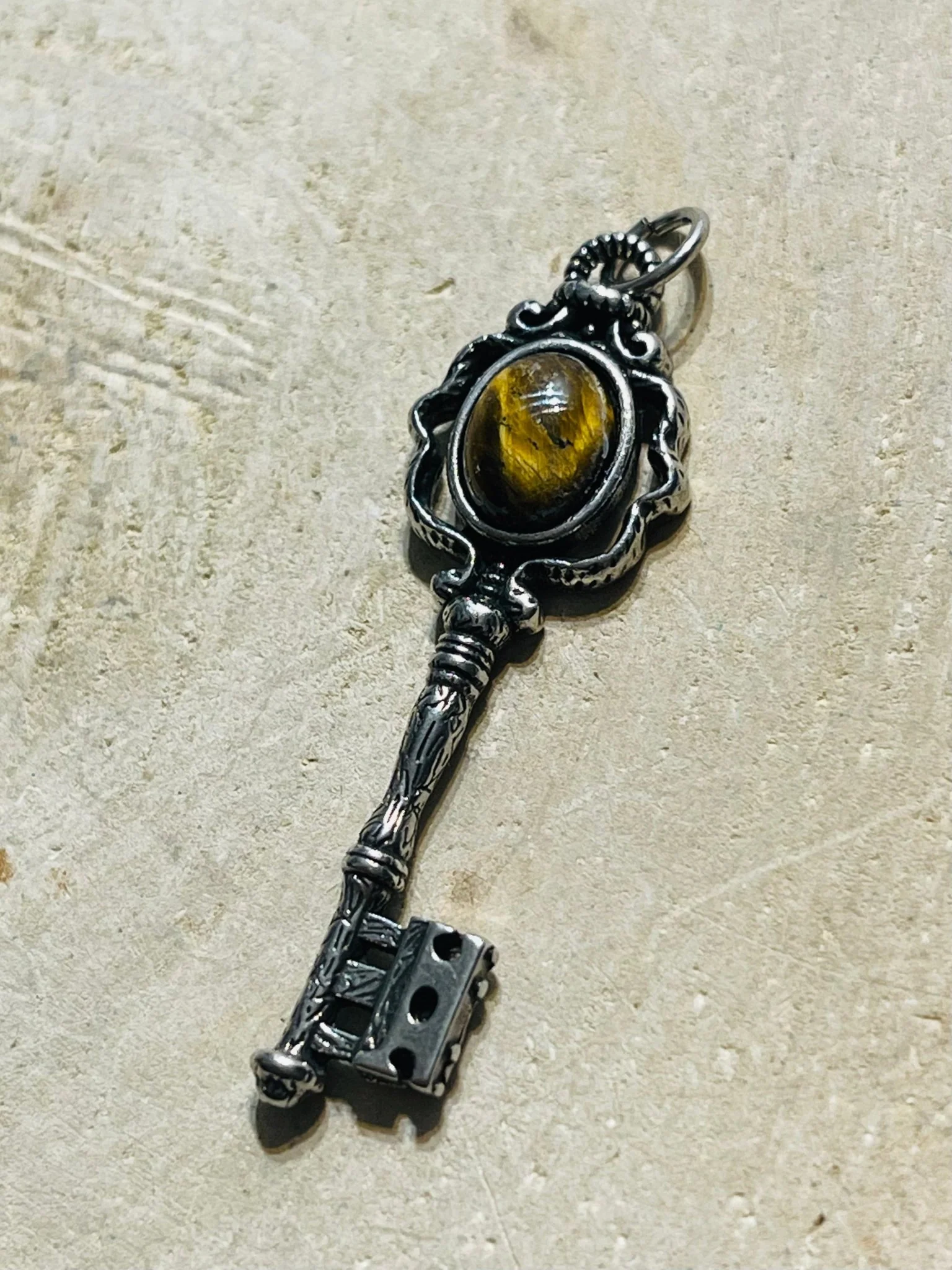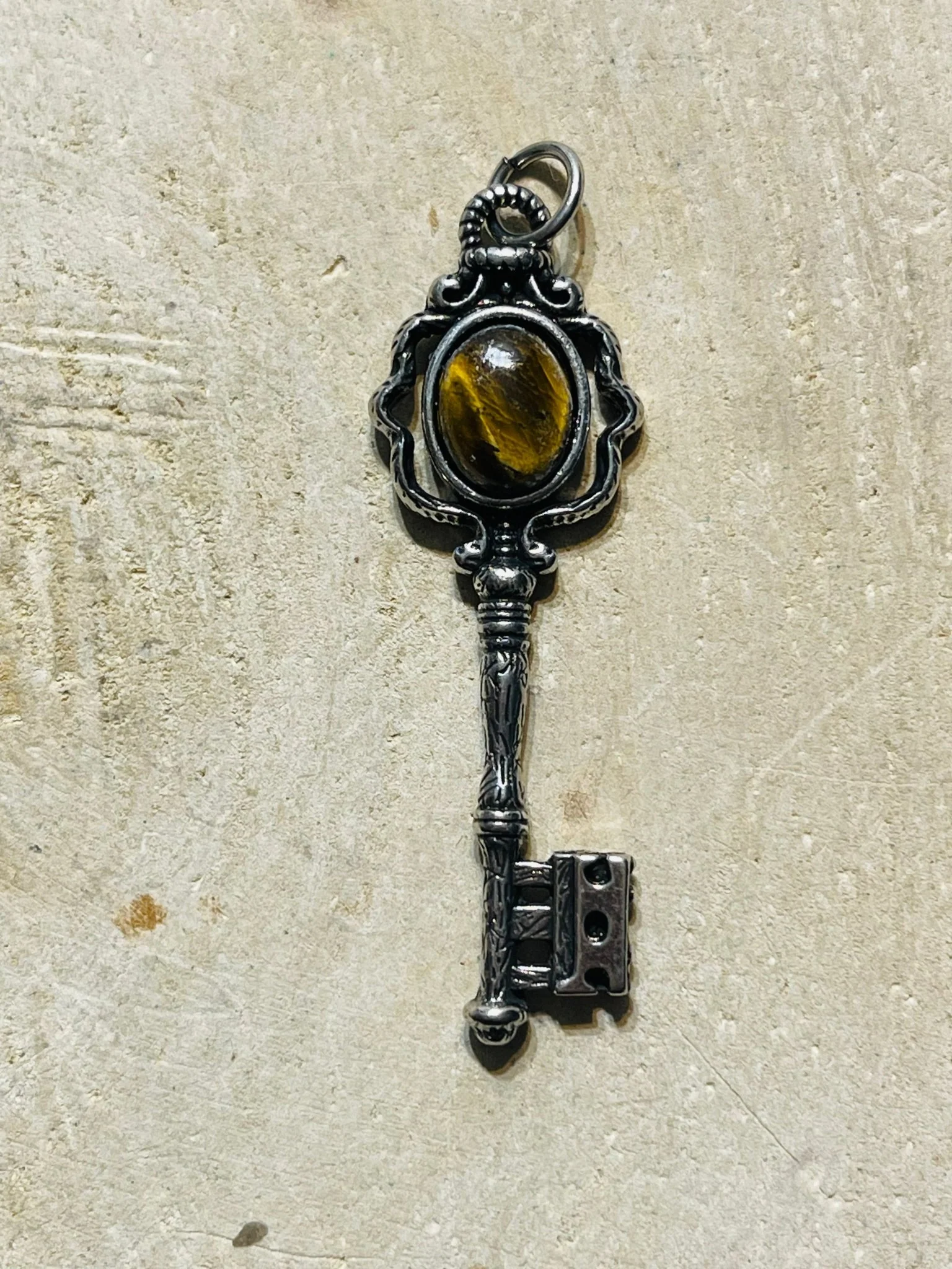 Pendentif en forme de clé et en Œil de tigre