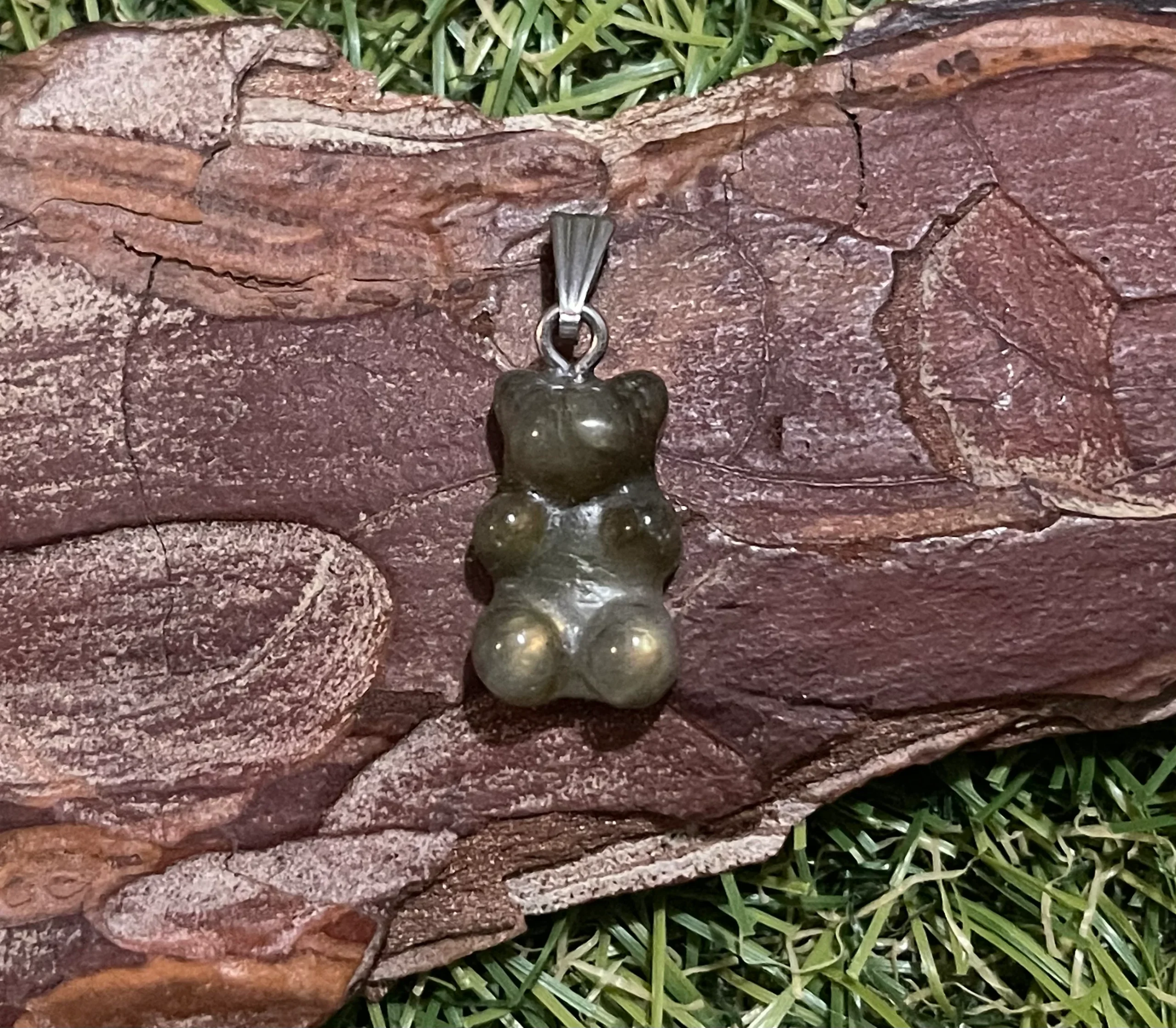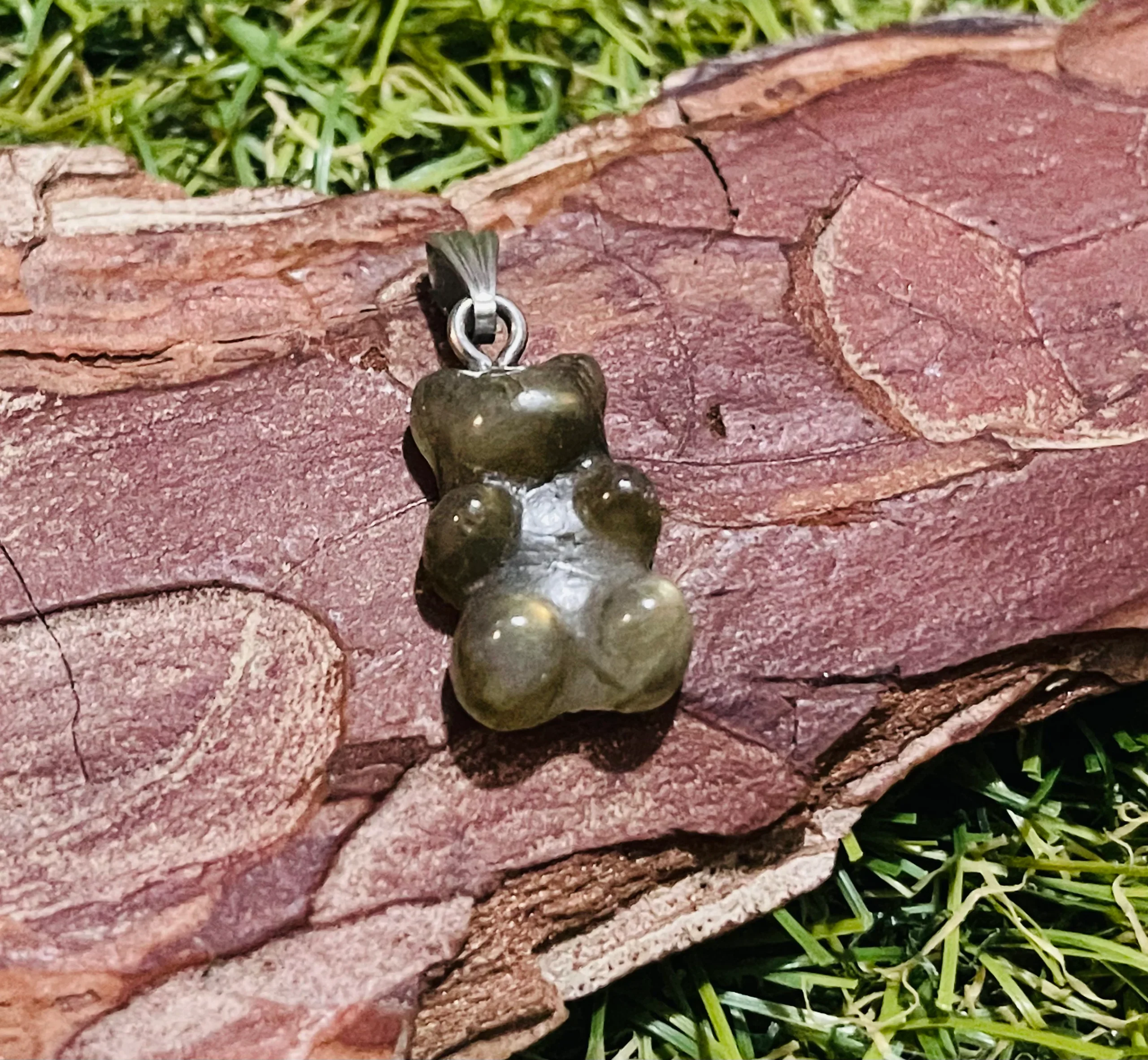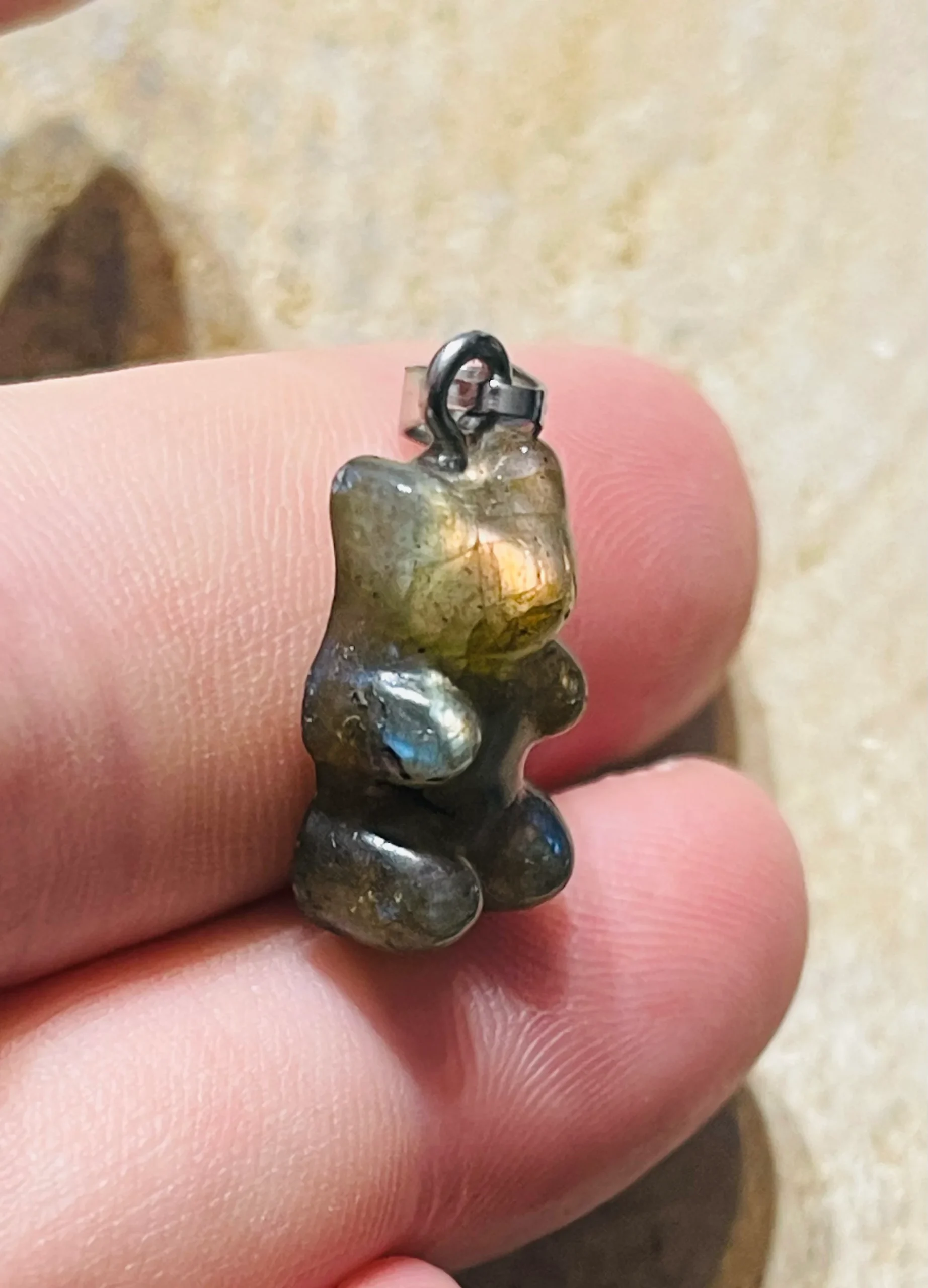 Il s’agit d’un Pendentif en Labradorite en forme de bonbons nounours / ours.