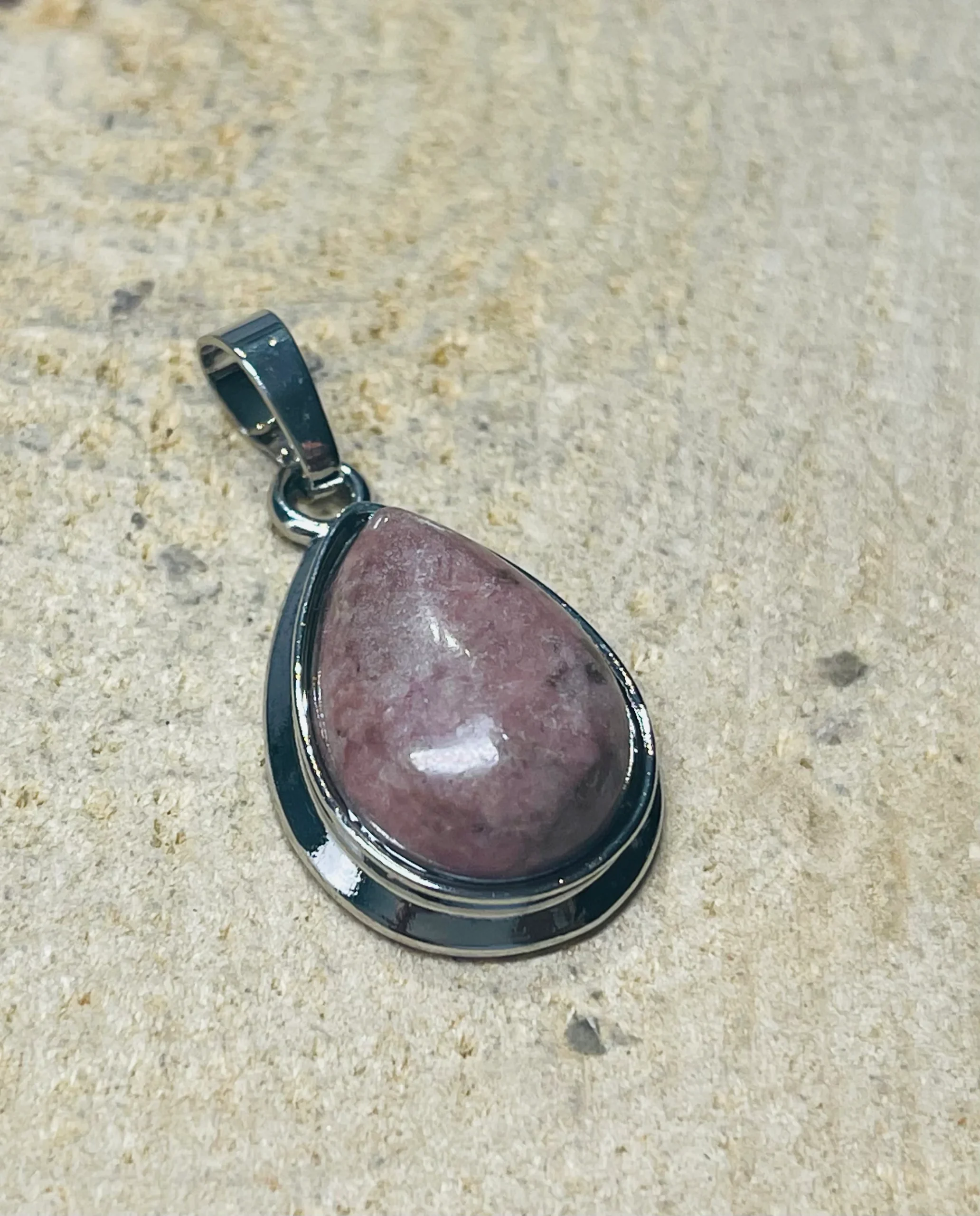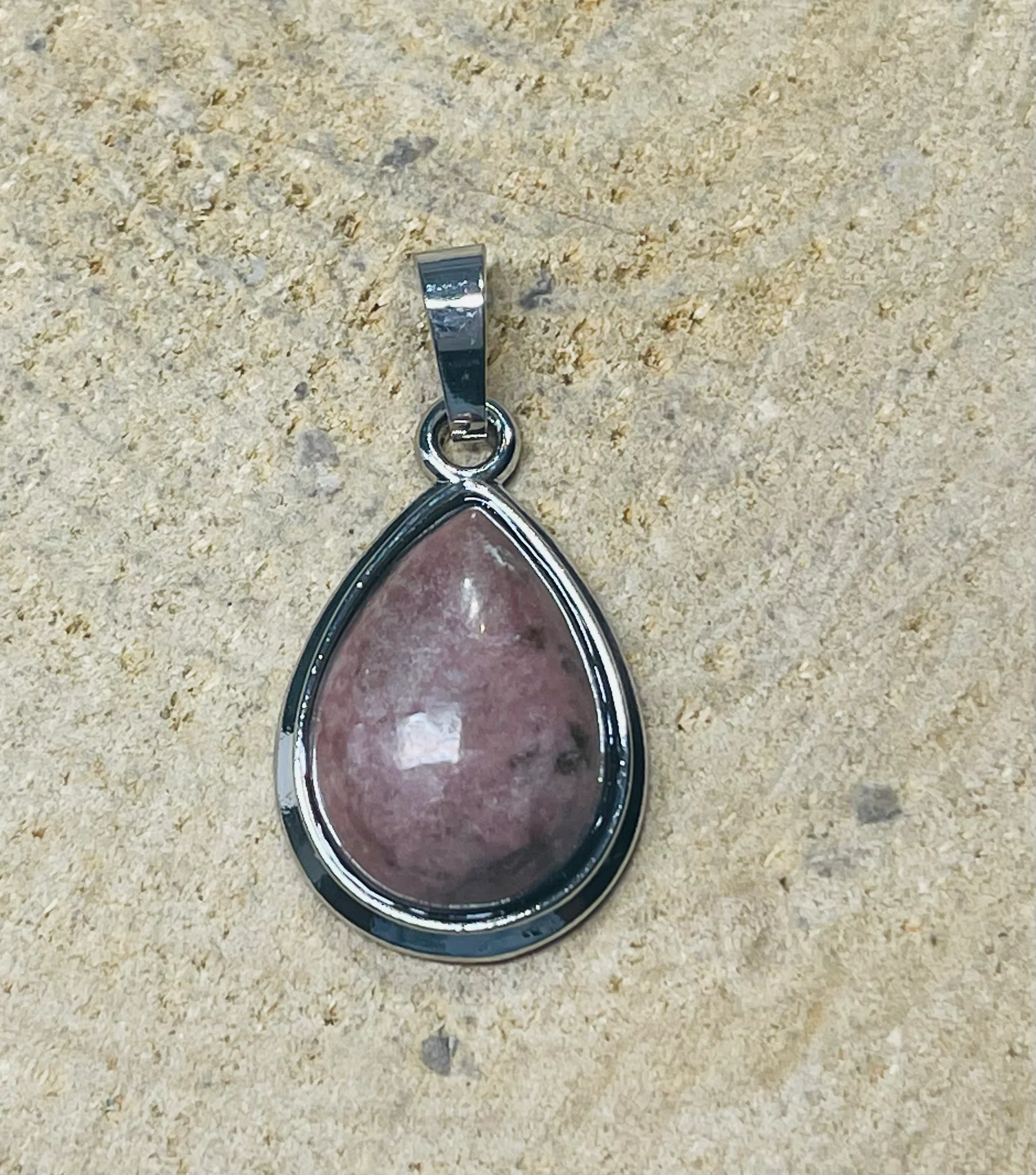 Pendentif en Rhrodonite en goutte d’eau