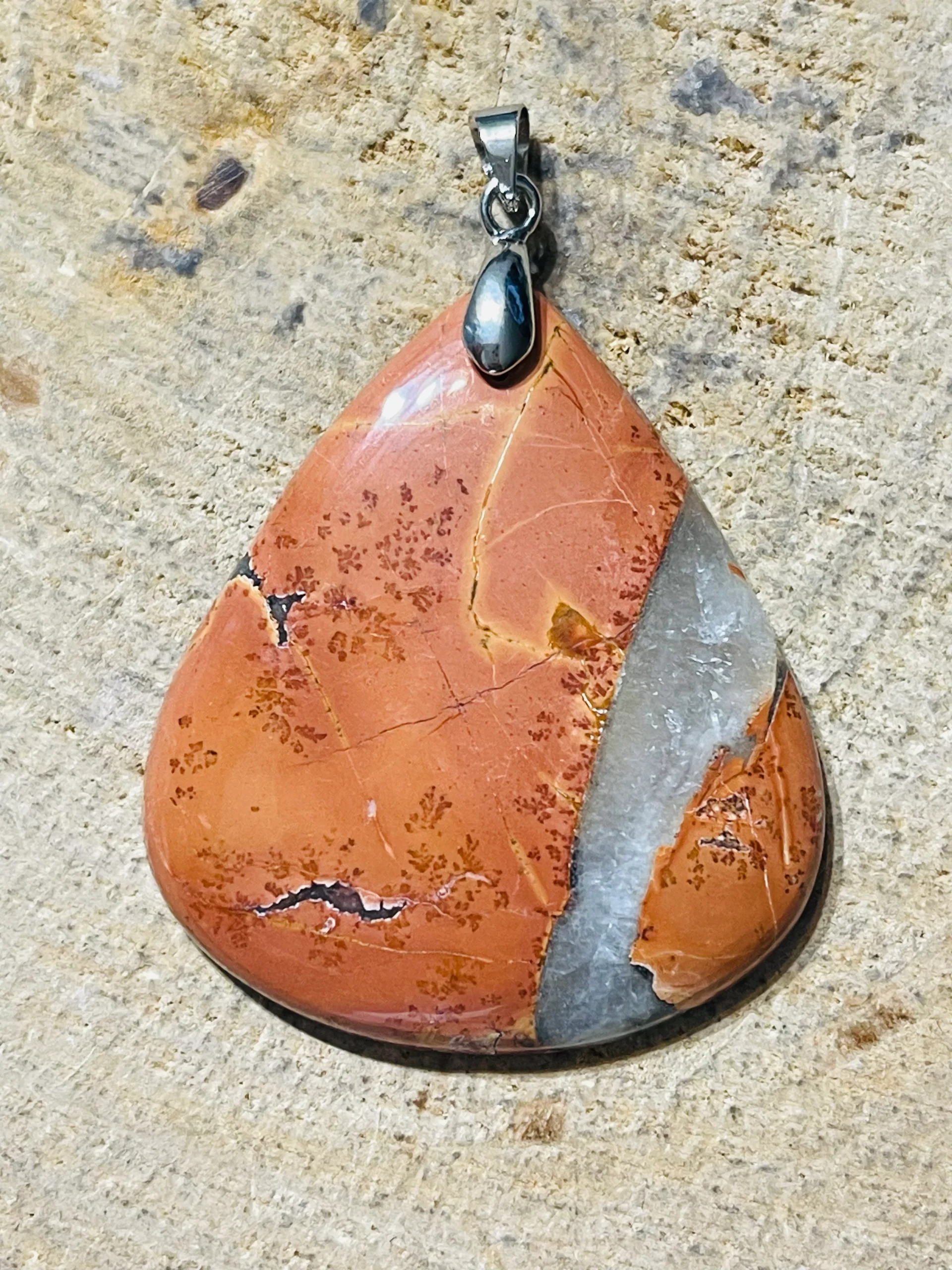 Il s’agit de 9 pendentifs en Jaspe maligano cabochon.