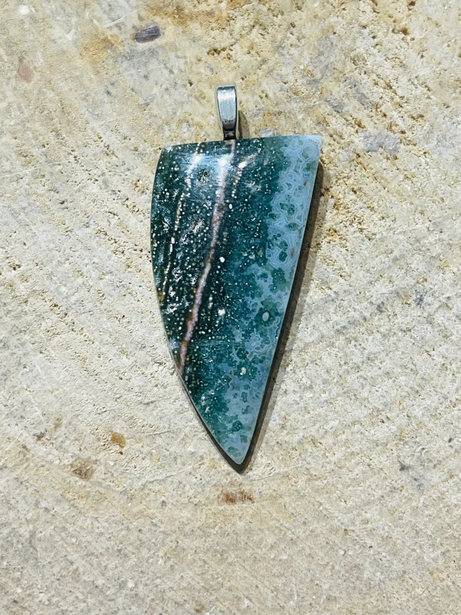 Il s’agit de Pendentifs en Jaspe Océan cabochon.