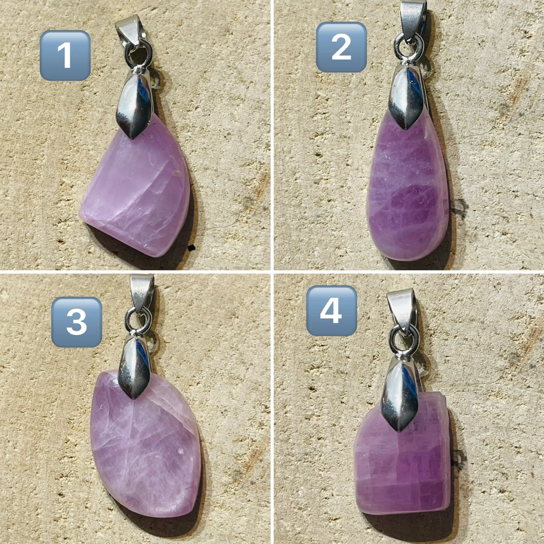 Il s’agit de 4 pendentifs en Kunzite.