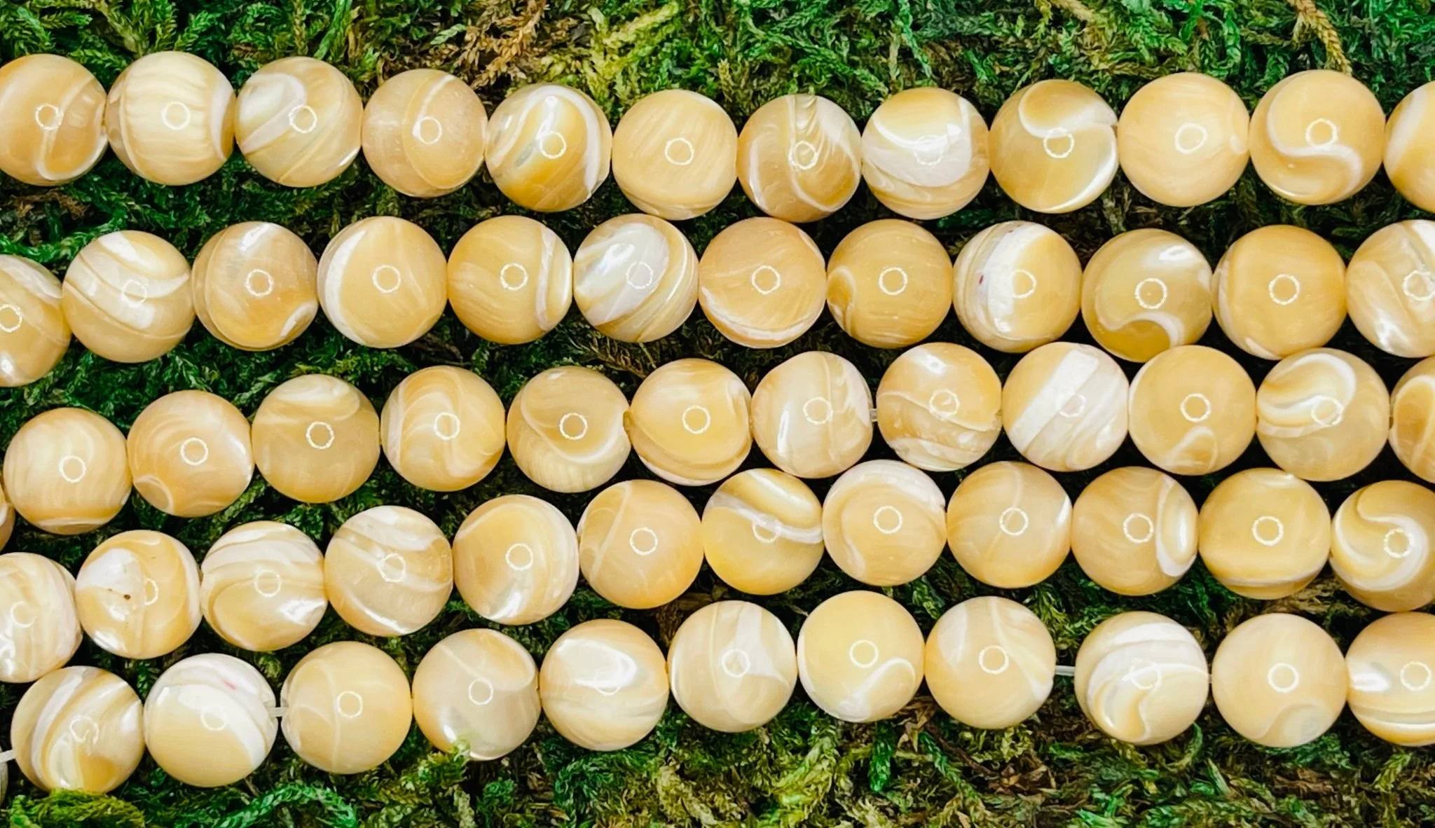 Il s’agit de perles véritables en Nacre beige.Disponible en 8 mm.Vendues par fil de 40 cm. Origine : Japon Vertus : apaise les angoisses, les colères, les tensions, les sautes d’humeur et tous les états émotionnels excessifs.