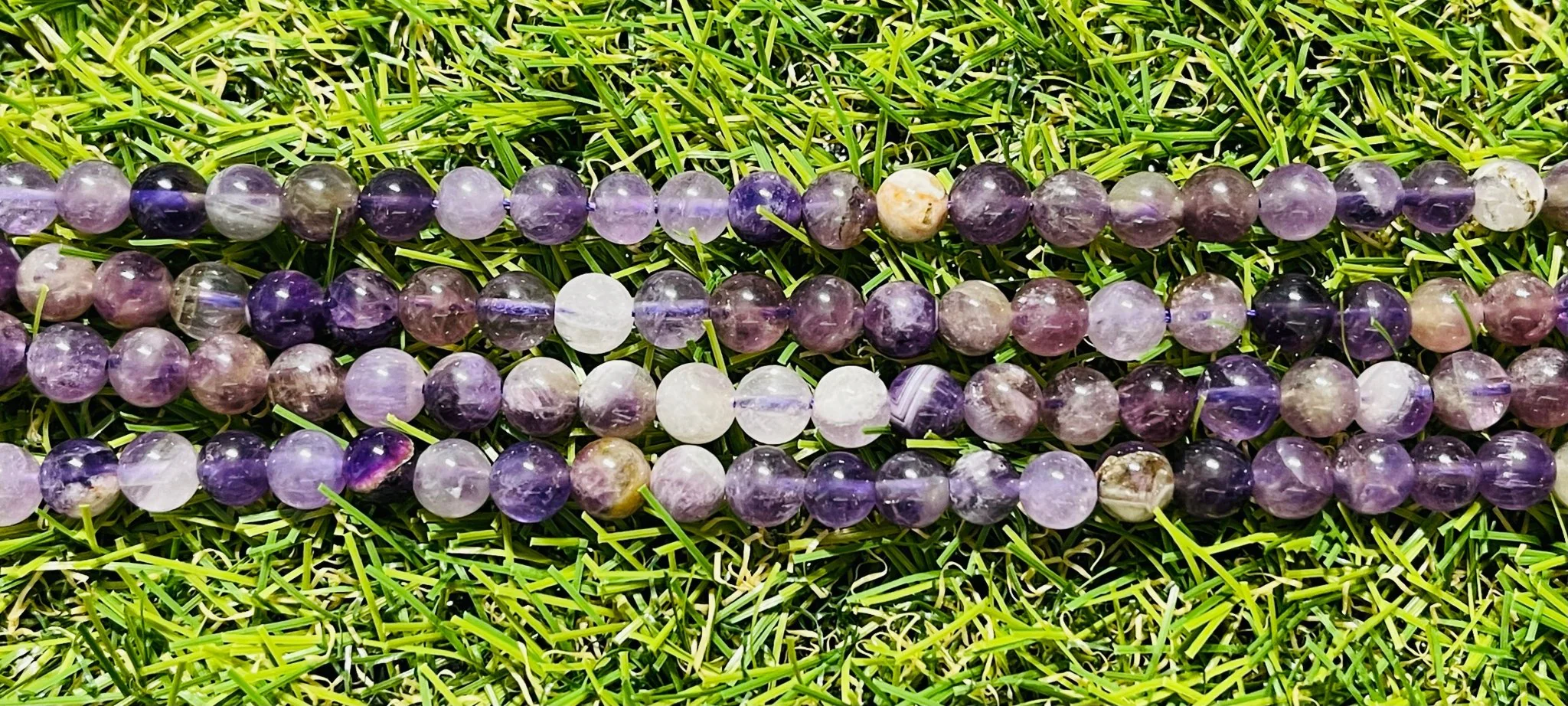 Perles en pierre naturelle en Améthyste violette / blanche en 6 mm