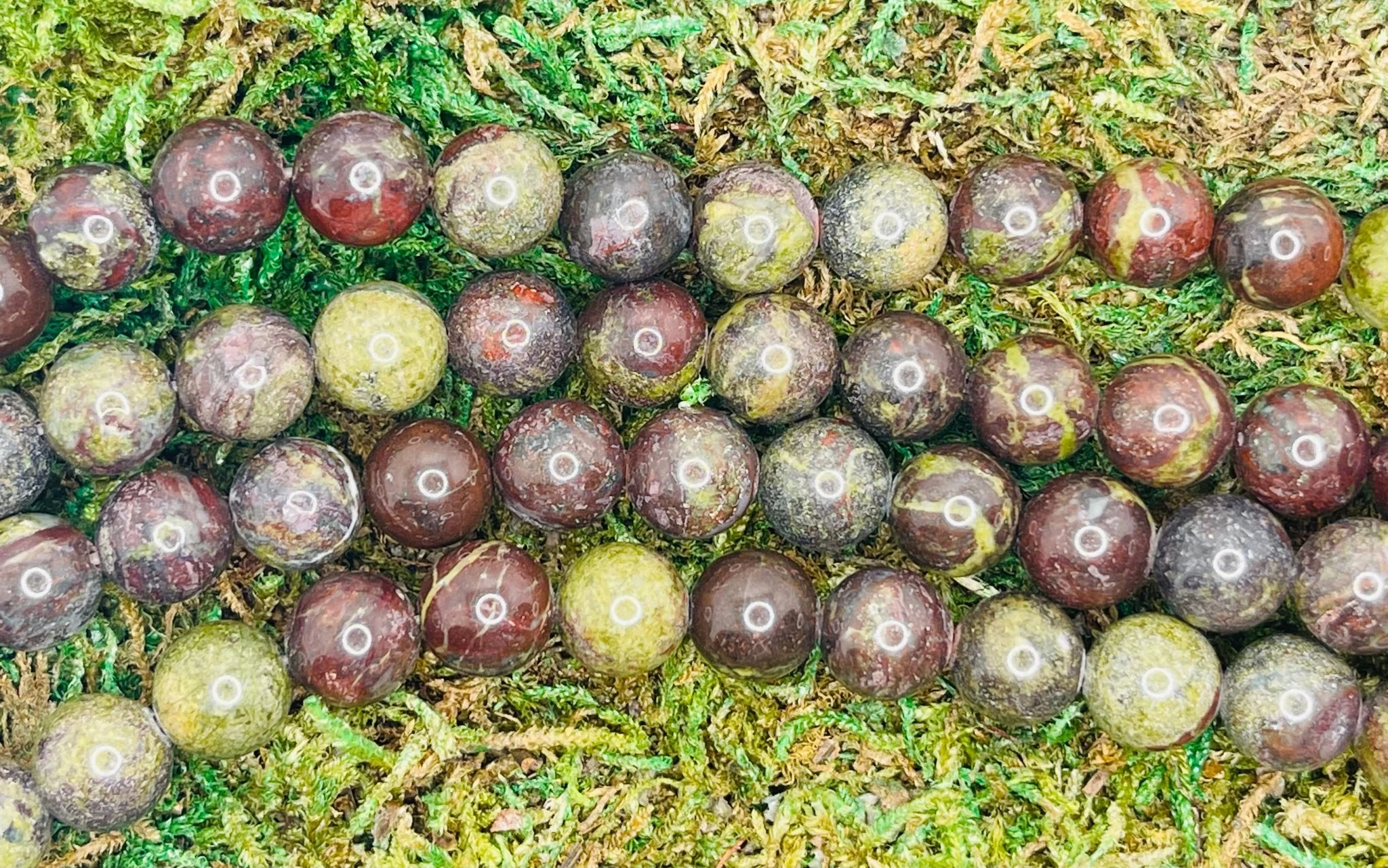 PERLES EN PIERRE NATURELLE EN JASPE SANG DE DRAGON. Il s’agit de perles en pierre naturelle véritable en Jaspe Sang de Dragon. Disponible en 8 mm.Vendues par fil de 40 cm environ. Origine : Brésil 🇧🇷 Vertus : Améliore la force vitale, le courage, la force et la volonté. Il apporte de la joie.