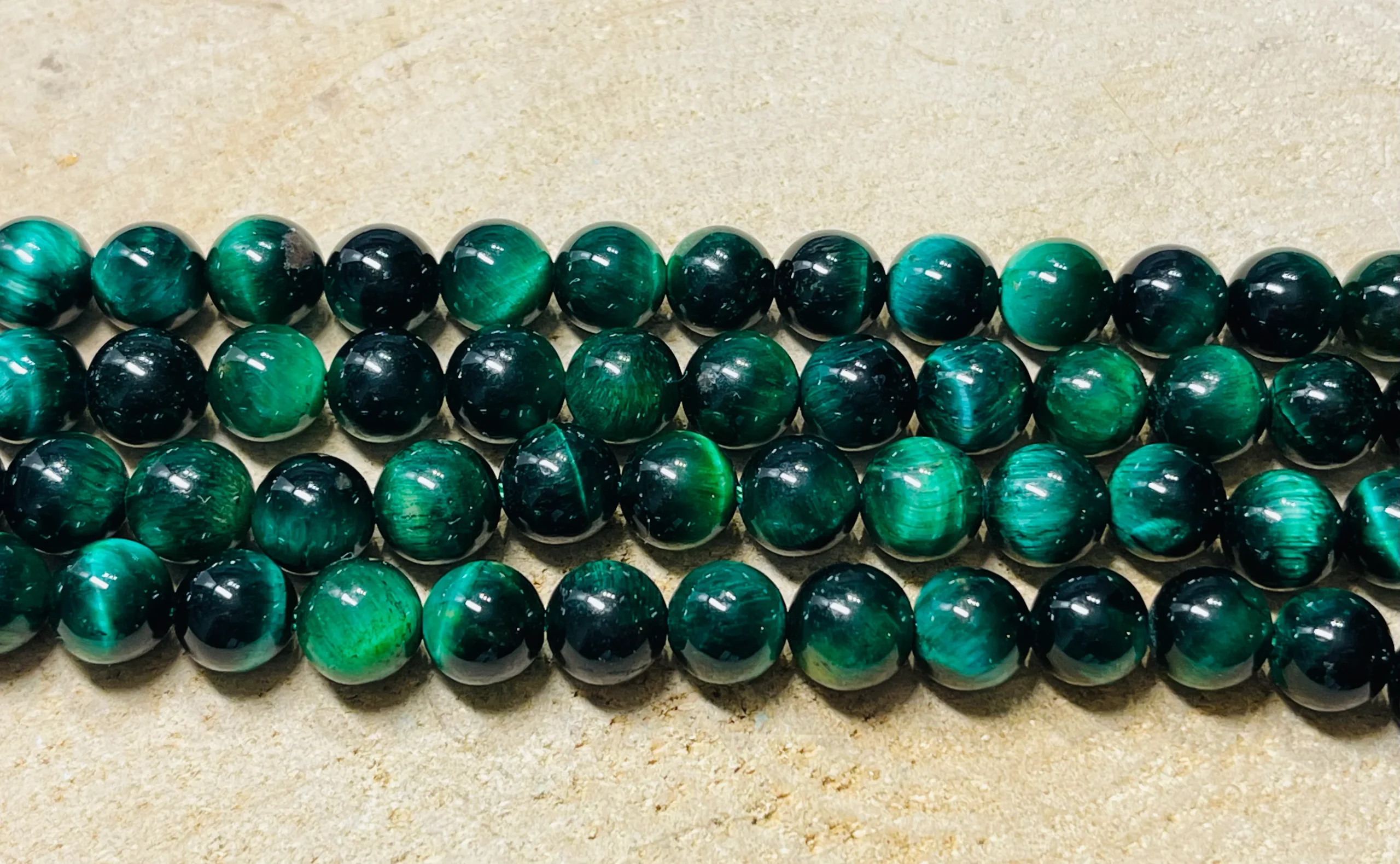 PERLES EN PIERRE NATURELLE EN OEIL DE TIGRE VERT.