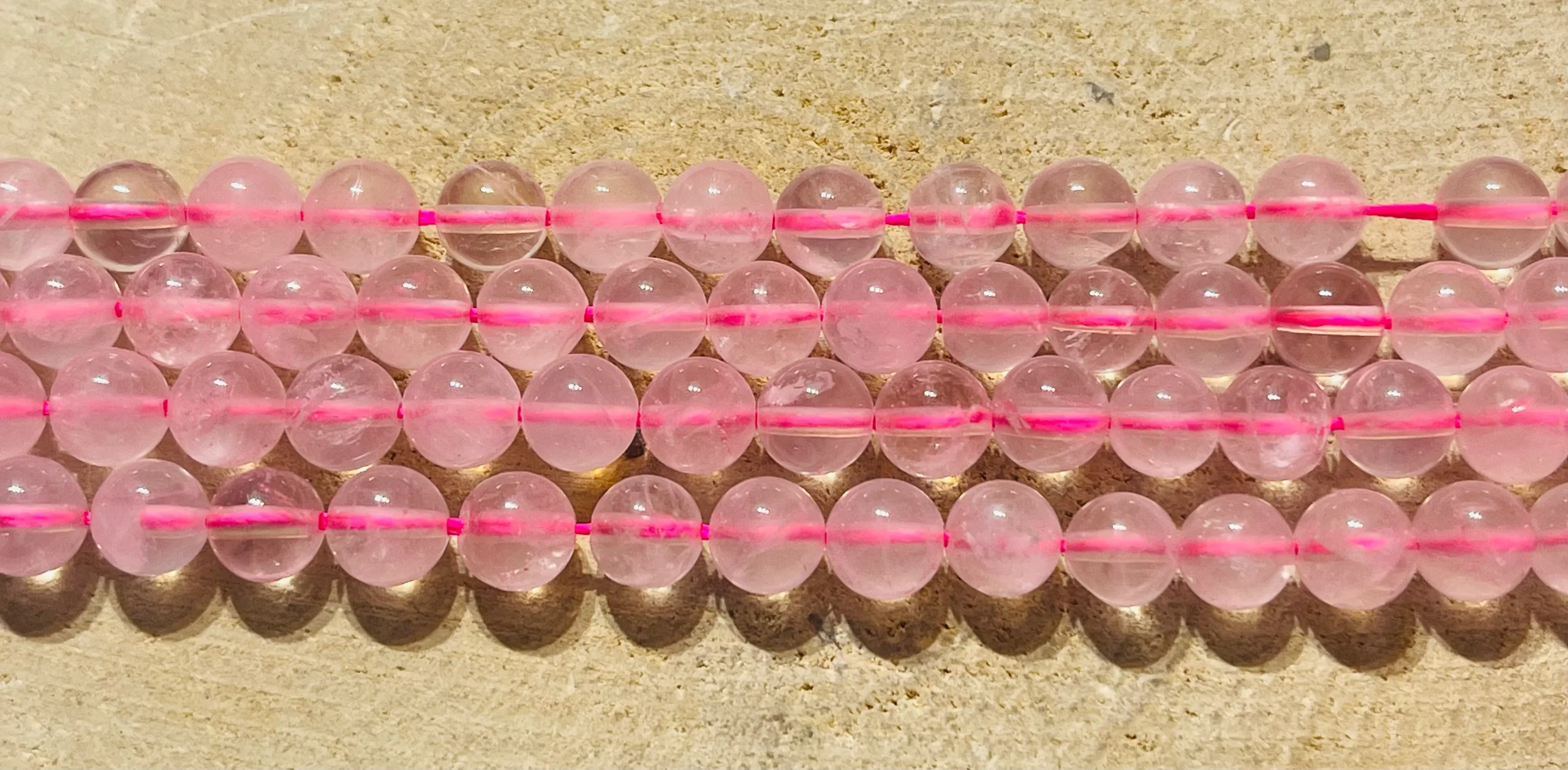 PERLES EN PIERRE NATURELLE EN QUARTZ ROSE.