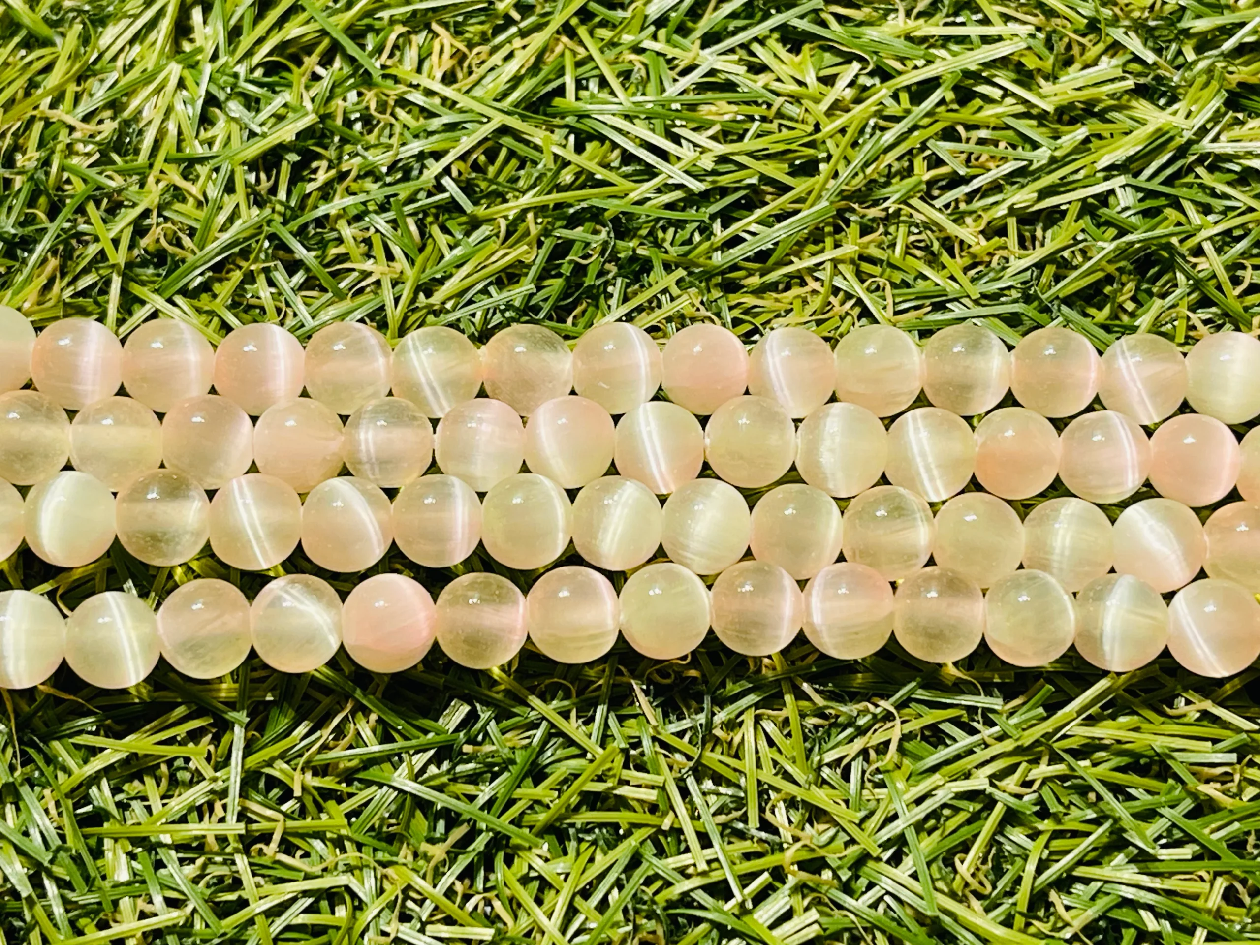 Perles en pierre naturelle en Sélénite rose jaune clair du Canada en 6 mm