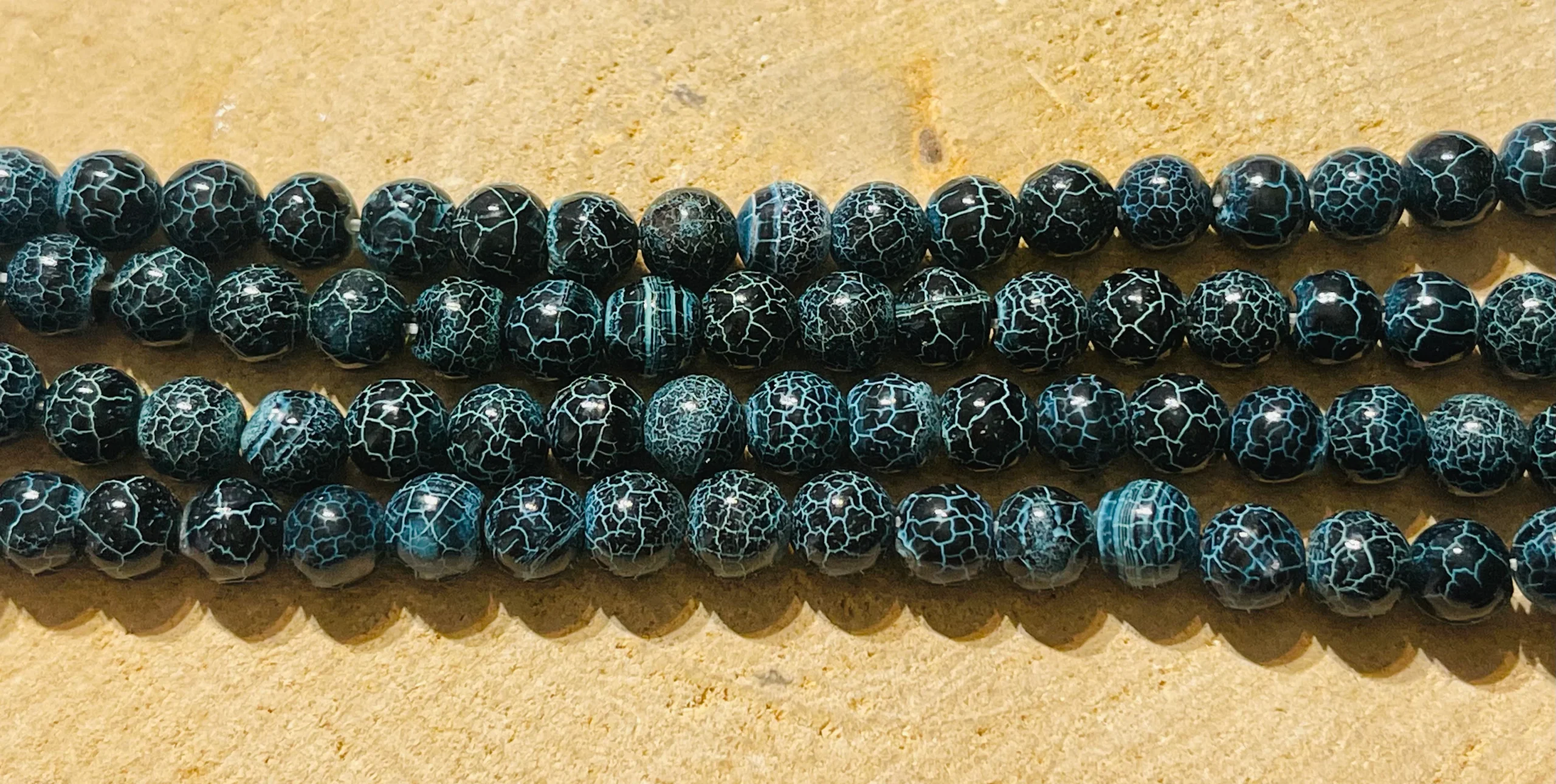 Perles naturelles en Agate bleue foncée craquelée en 8 mm