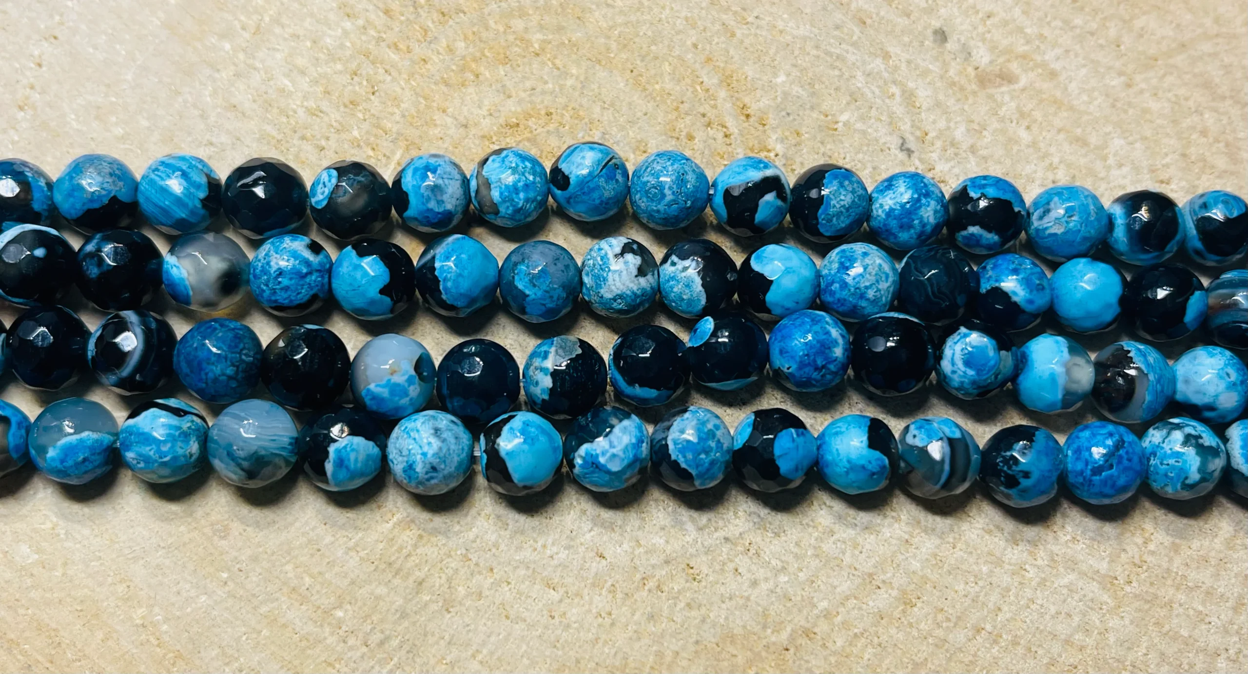 Il s’agit de perles naturelles véritables en Agate de glace facettée (teintée).