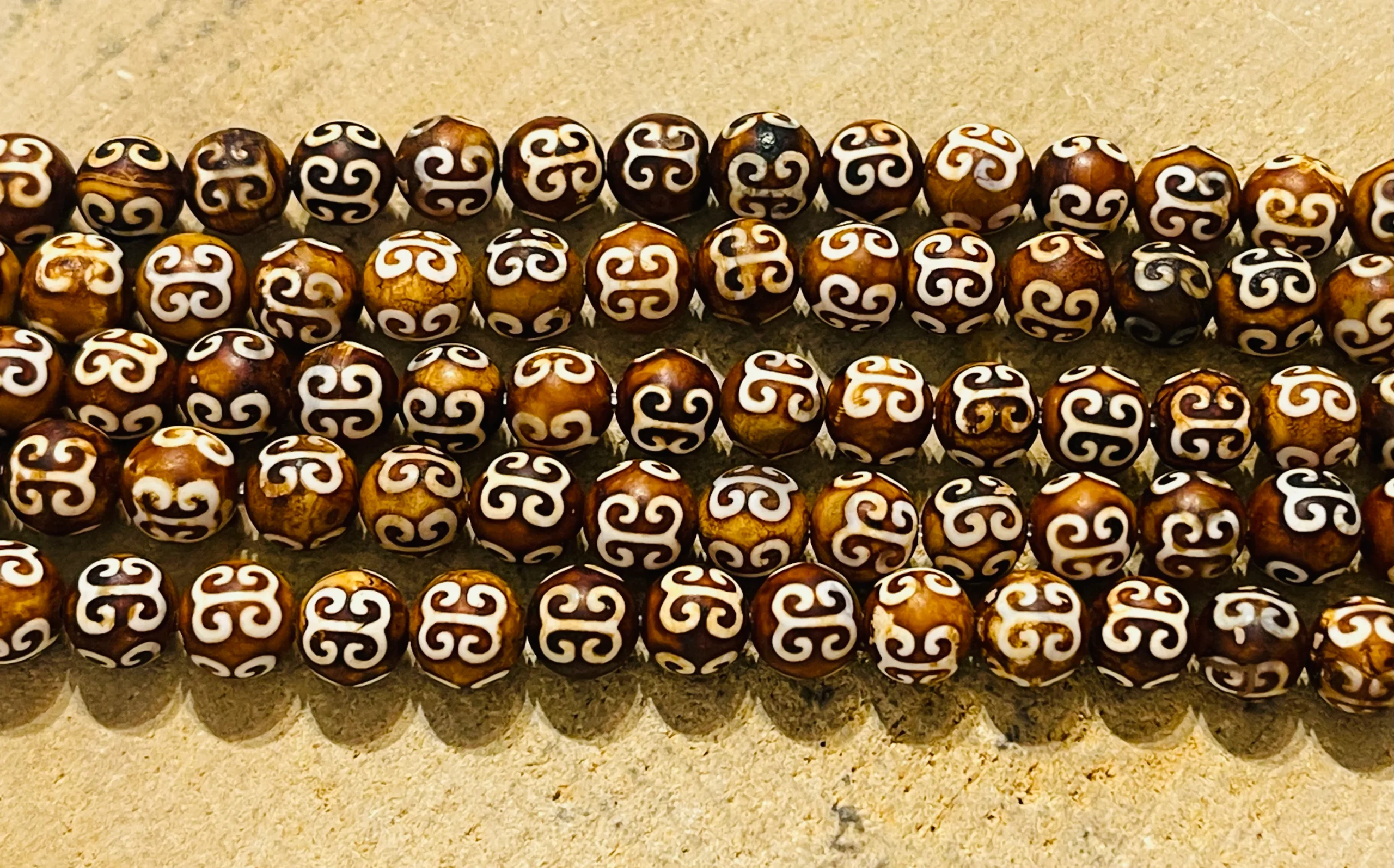 Perles naturelles en Agate dzi tibétaine.